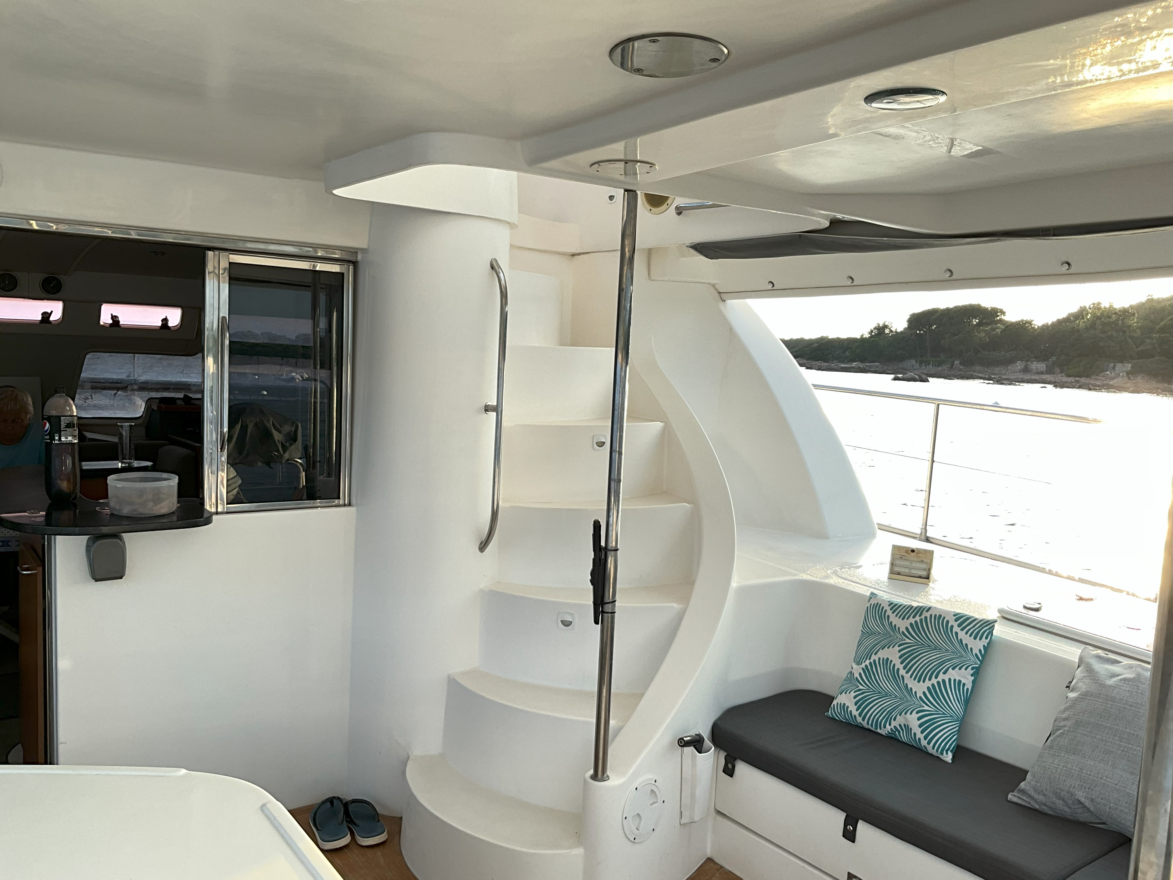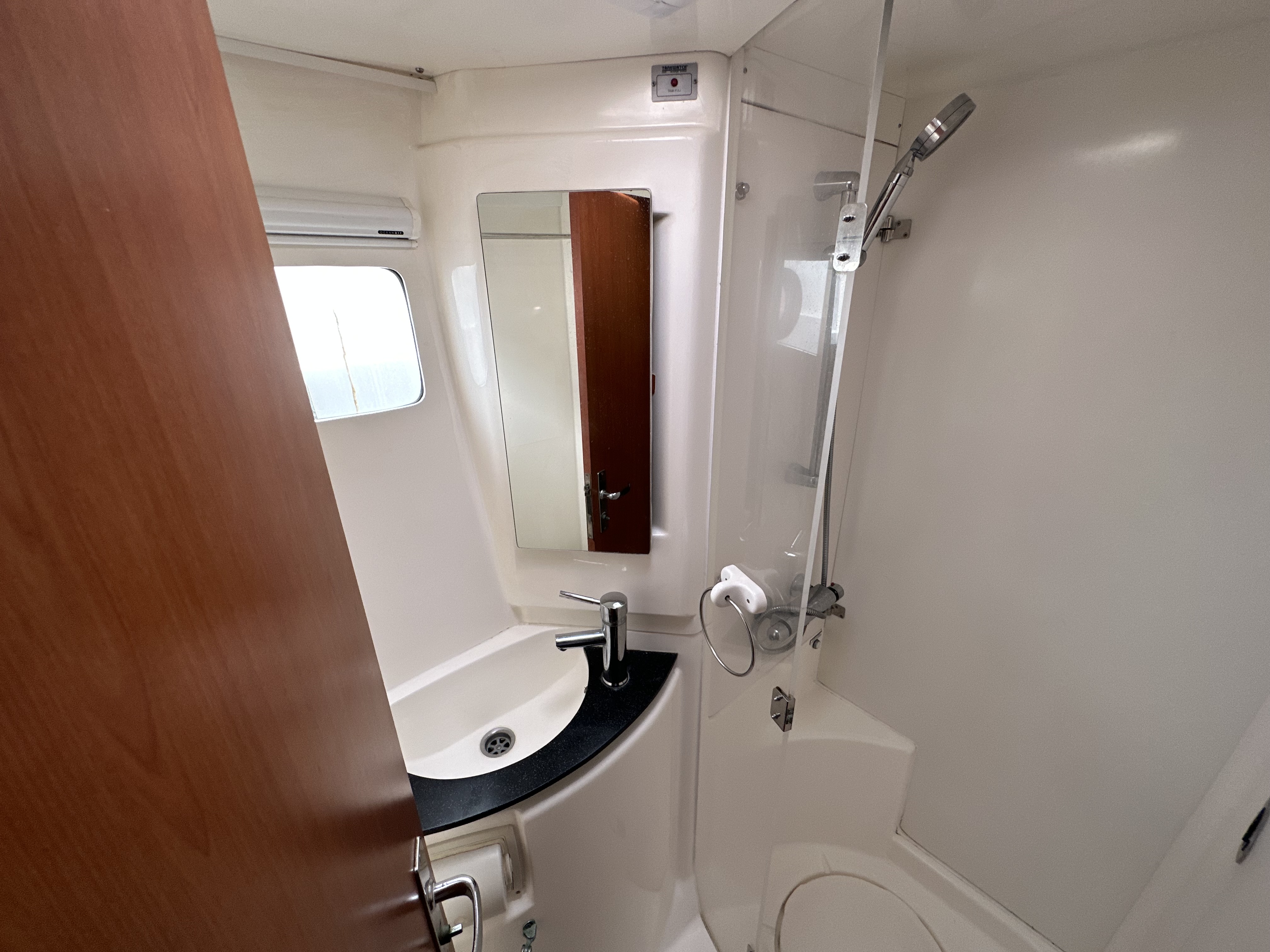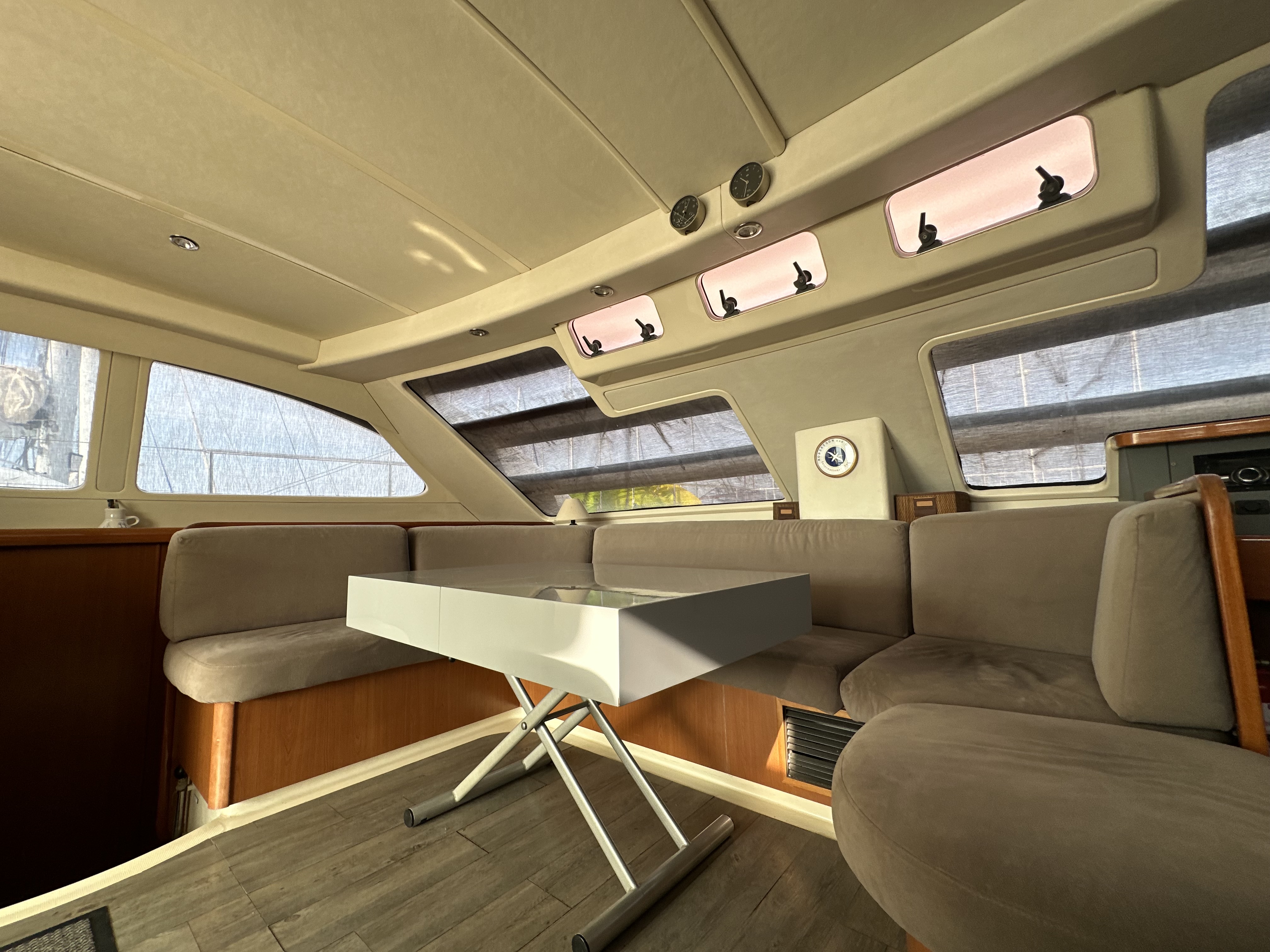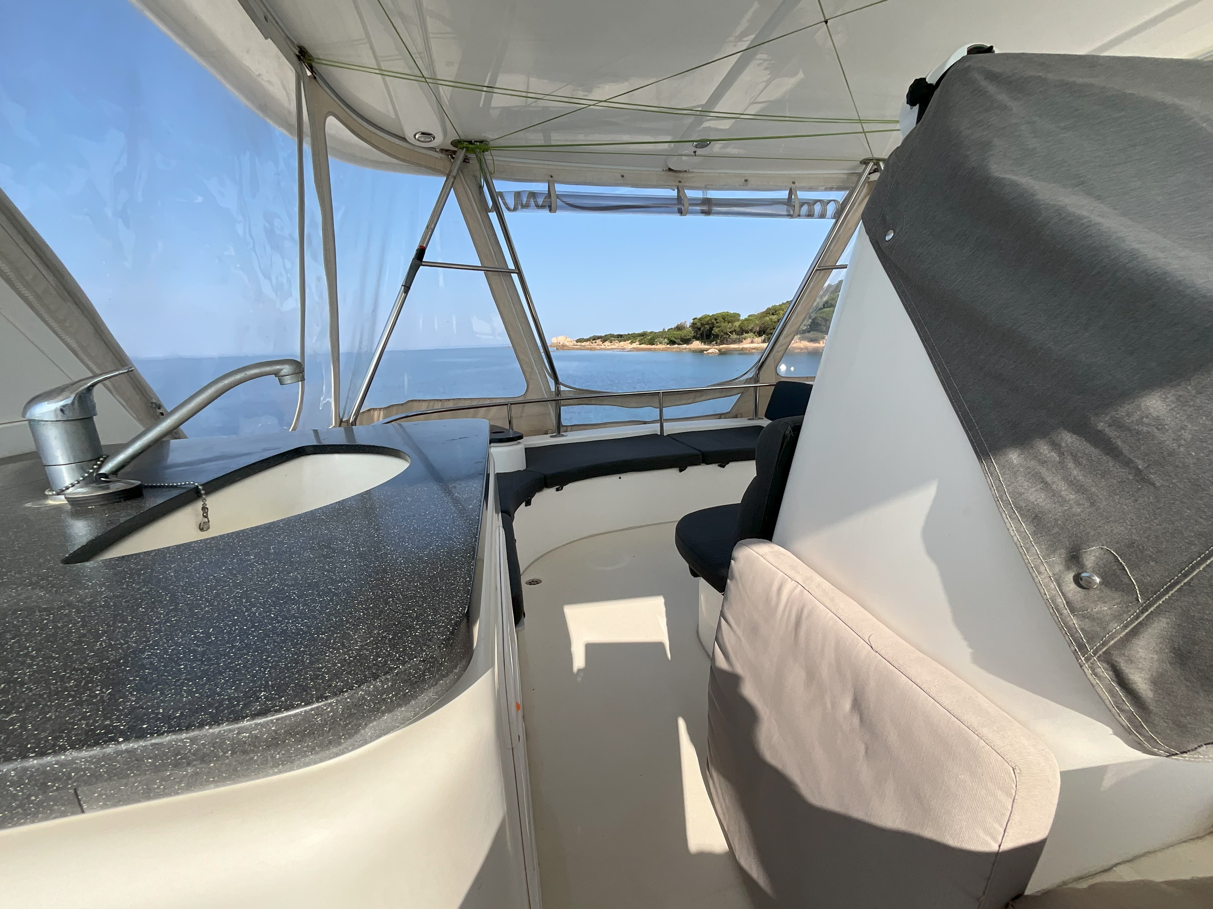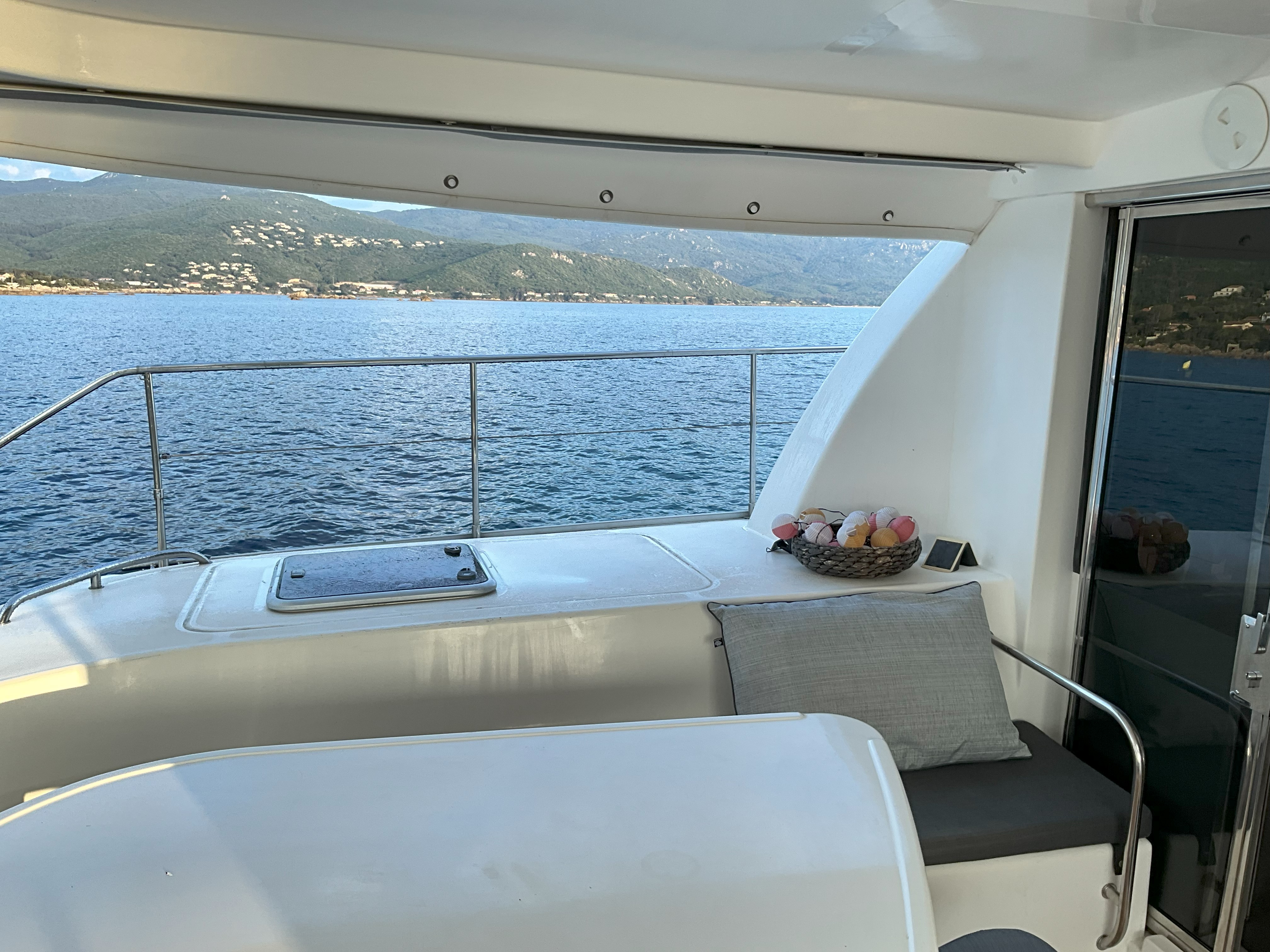 Equipments : reversible air conditioning, watermaker 60L/H, mase genset 9 KW(2018), 4 solar panels (1000W) on top of the flybridge, washer/dryer Brandt 8kg, freezer with 5 drawers, Highfield 3.4m dinghy with hard floor and yamaha 15hp enduro outboard engine.