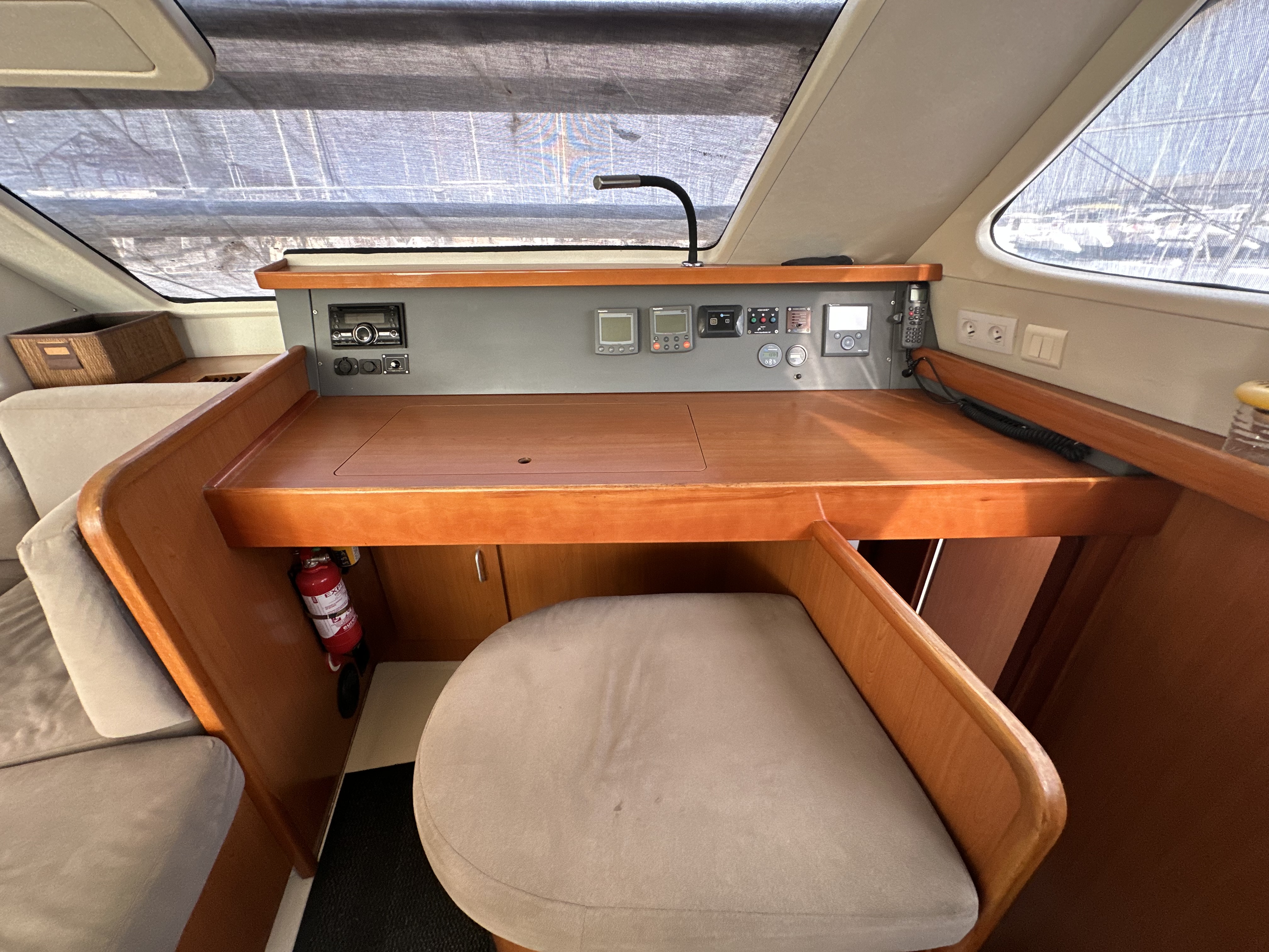 Navigation station to starboard with space for navigation gear and charts, 12v socket