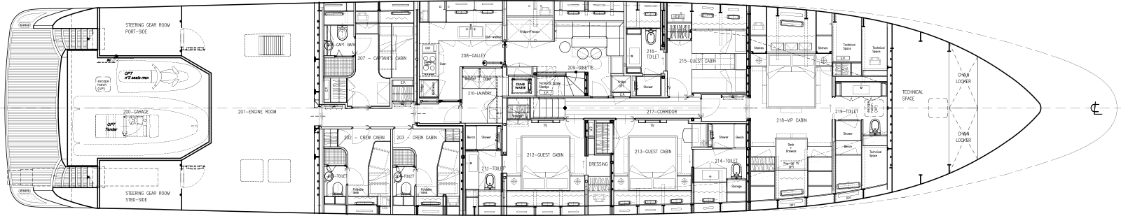 FIVE CABIN LAYOUT WITH THREE CREW CABINS