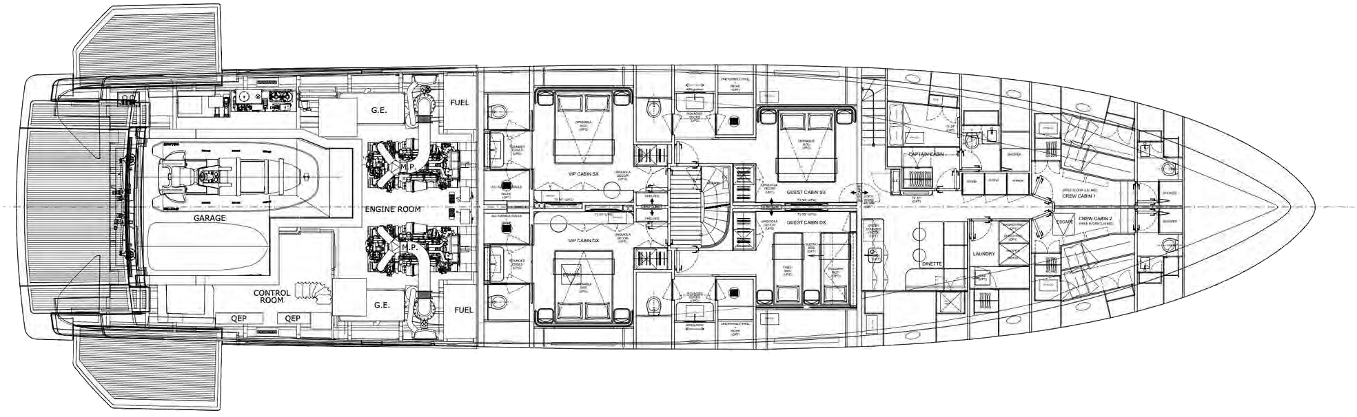 FIVE CABIN LAYOUT WITH THREE CREW CABINS