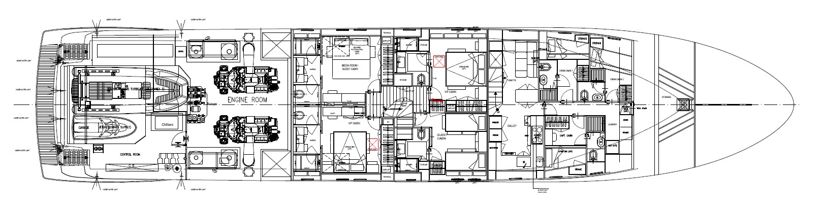 FIVE CABIN LAYOUT WITH THREE CREW CABINS