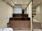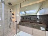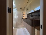 Owner's Cabin Bathroom - is reached forward of the bedroom - two marble washbasins with marble top and drawers, mirrors, WC with hydro brush, towel rail, shower with handset, tempered glass door, flooring in marble