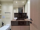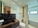 VIP Bathroom - WC with hydro brush, washbasin with marble top, cupboard with mirror, towel rail, shower with handset and rain shower head, tempered glass shower door, air extractor above shower, marble flooring