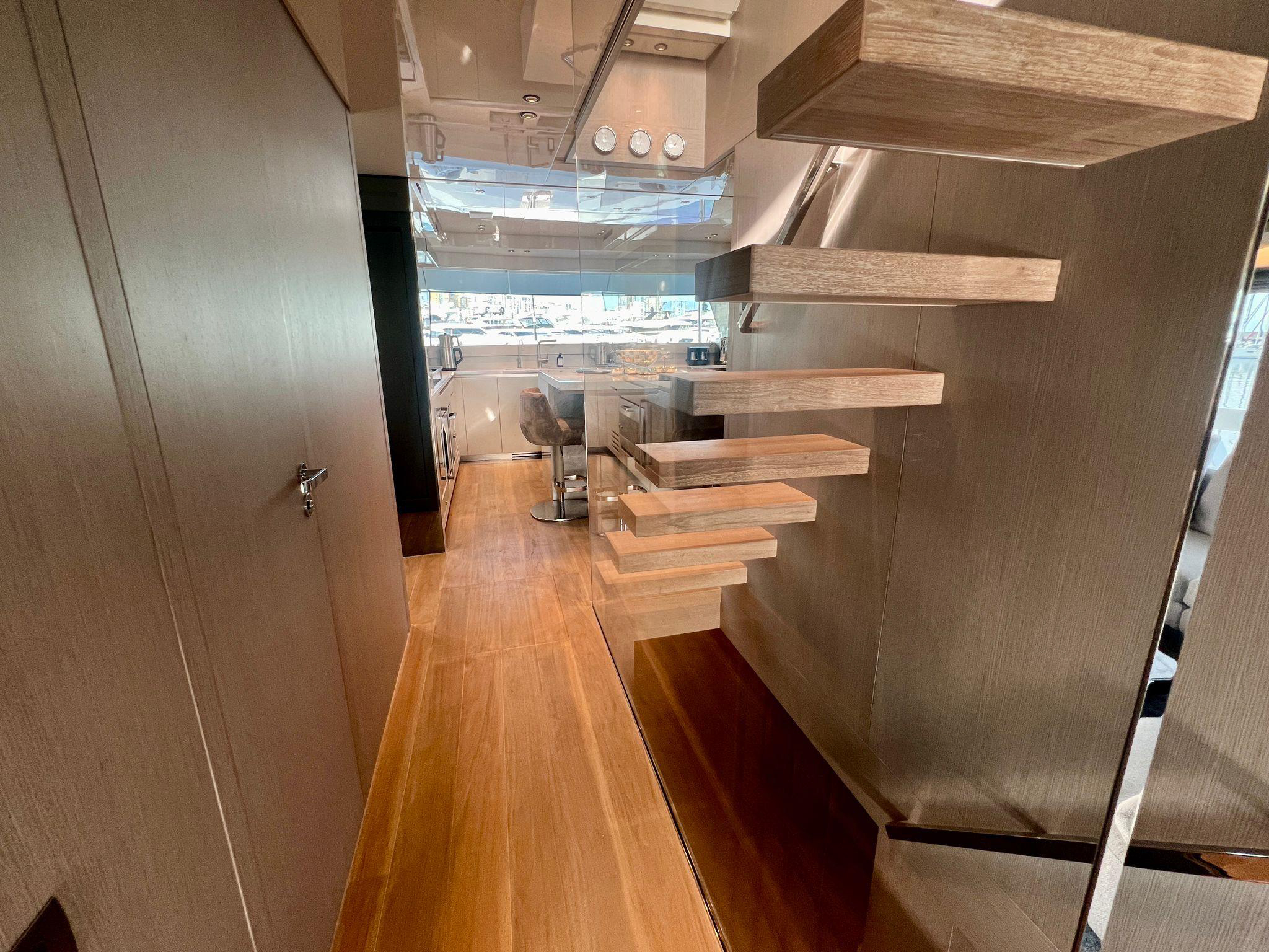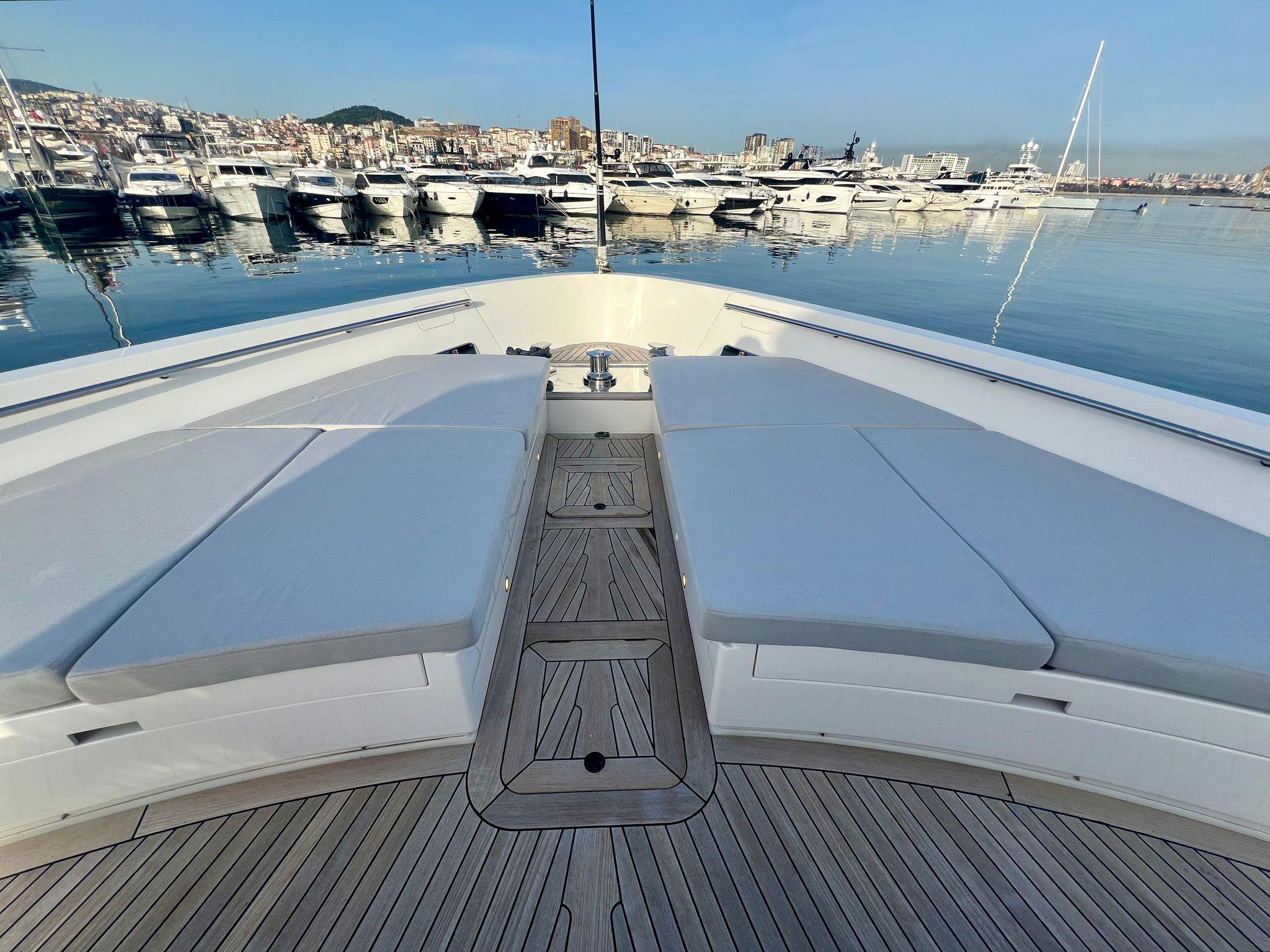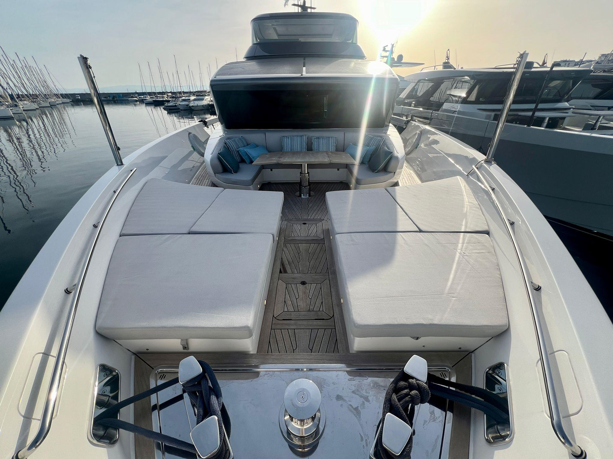 Boasting a 7.2-metre beam, a country kitchen-style galley, and powered by triple Volvo Penta IPS 800 HP engines, she achieves a top speed of 23 knots and offers an approximate range of 510 nautical miles at 17 knots. The yacht is further enhanced by its versatile beach club, elevating the overall experience.