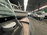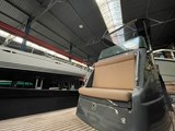 Sports console with acrylic windscreen, stainless steel grab handles for crew member and large front locker