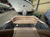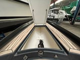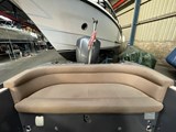 Siège arrière sculpté et rembourré sur toute la largeur du bateau, équipé de vérins à gaz pour accéder à un grand coffre de rangement à l'arrière