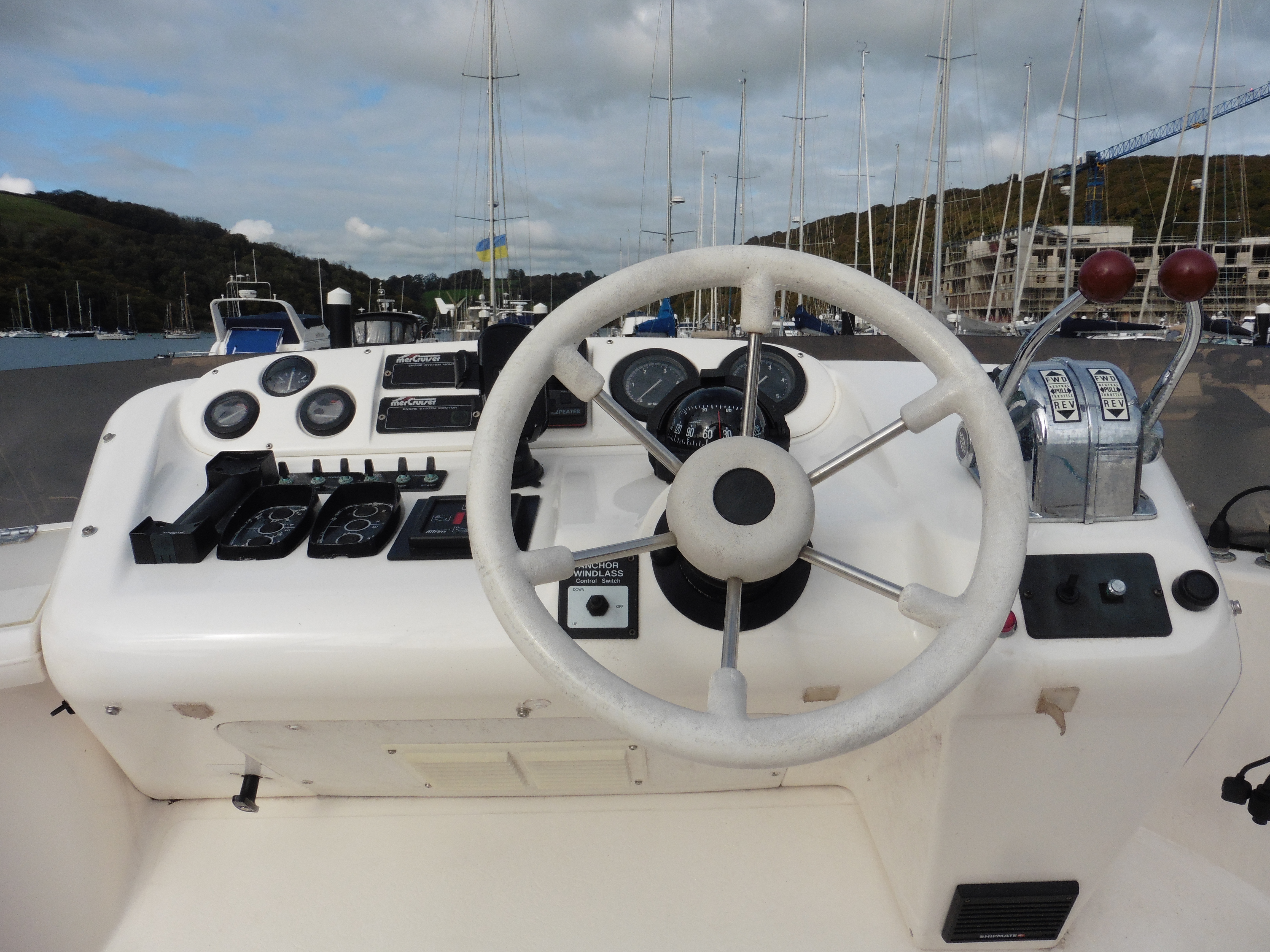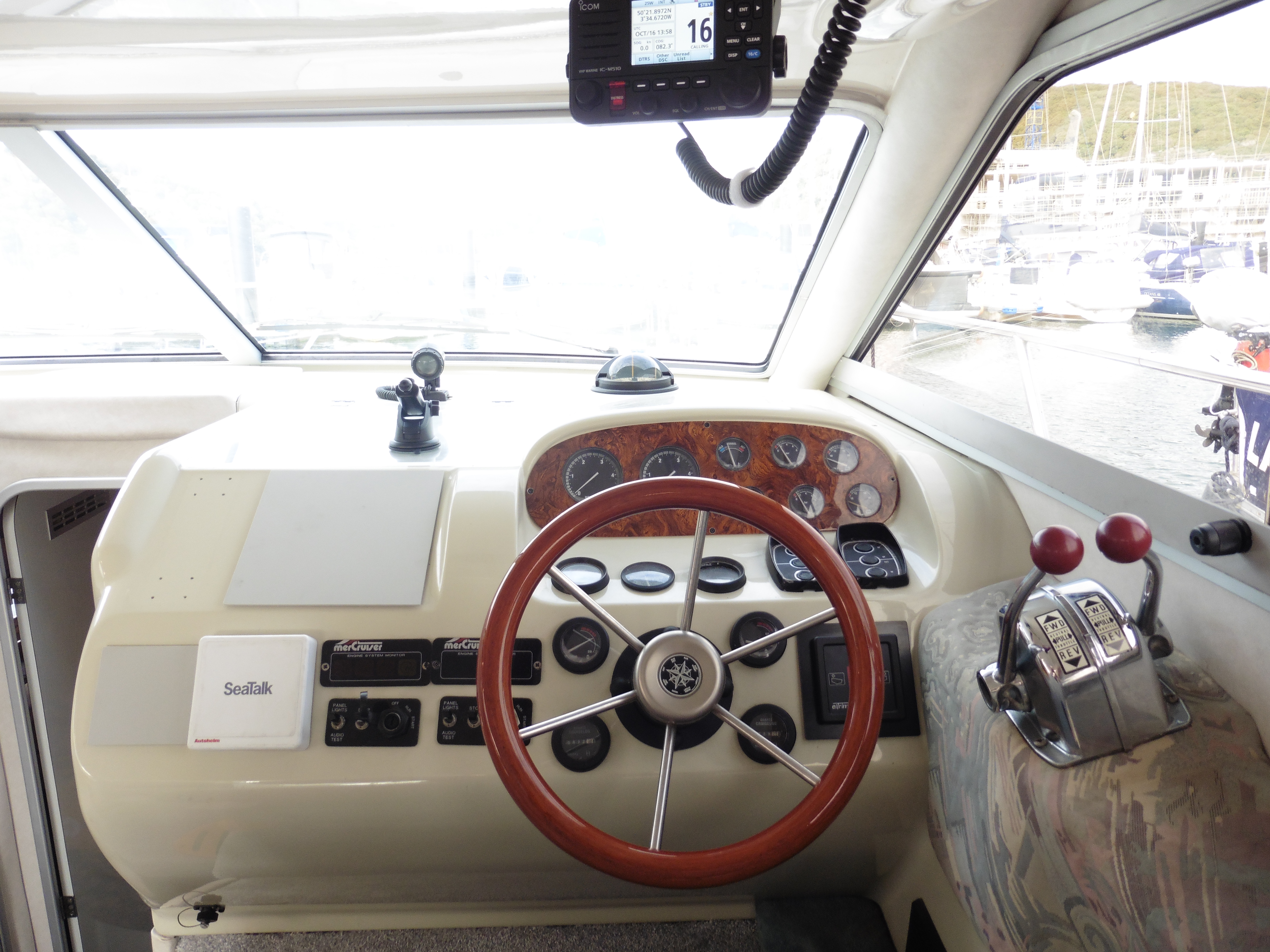 1996 Sealine 330 Statesman - this is a great example of these practical and comfortable motorboats. The current owners have maintained and upgraded sensibly and both Mercruiser engines have benefitted from recent rebuilds. The interior provides two cabins, both with double berths and the saloon has ample seating with conversion to an occasional double when required. The flybridge is well laid out with central helm position and sun pad aft while the aft cockpit has plenty of cover with hard canopy and covers. Ideal for young families or a couple who want to enjoy long weekends coastal cruising or channel hopping.