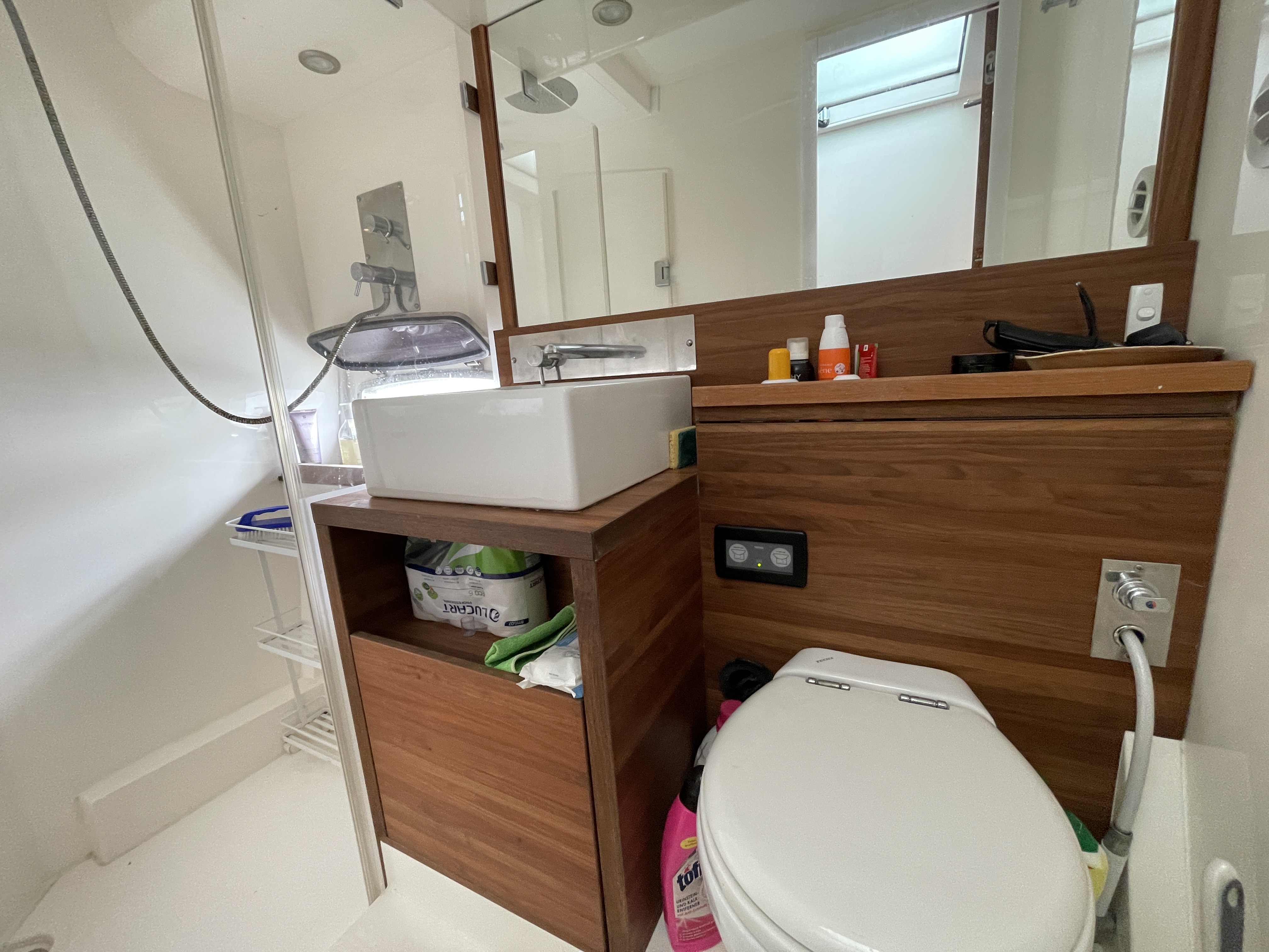 Pavillon français - TVA UE payée, 2e propriétaire, jamais affrété, 2 cabines, 2 salles de bain, électronique RAYMARINE, moteur hors-bord SUZUKI 20 ch, annexe SURMARINE 270 cm, dessalinisateur SIMPLEWATER, passerelle hydraulique, moteurs diesel TWIN ZEUS DRIVE CMD QSB 5.9 480 ch avec 1 500 heures de fonctionnement, générateur KOHLER 13kva