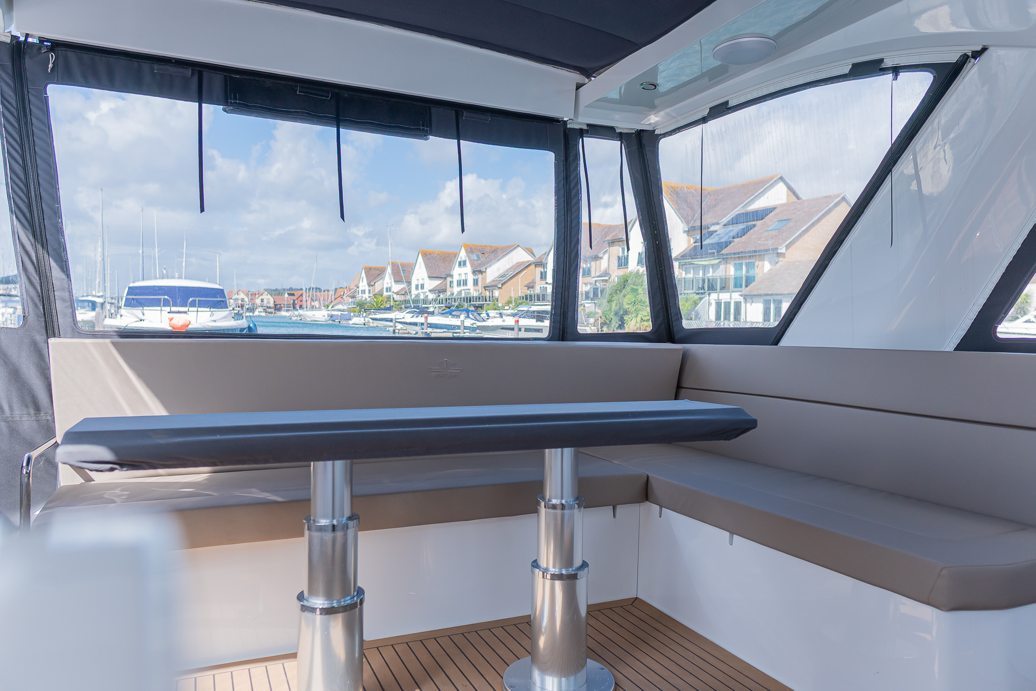 Sealine convertible fabric roof system at bow