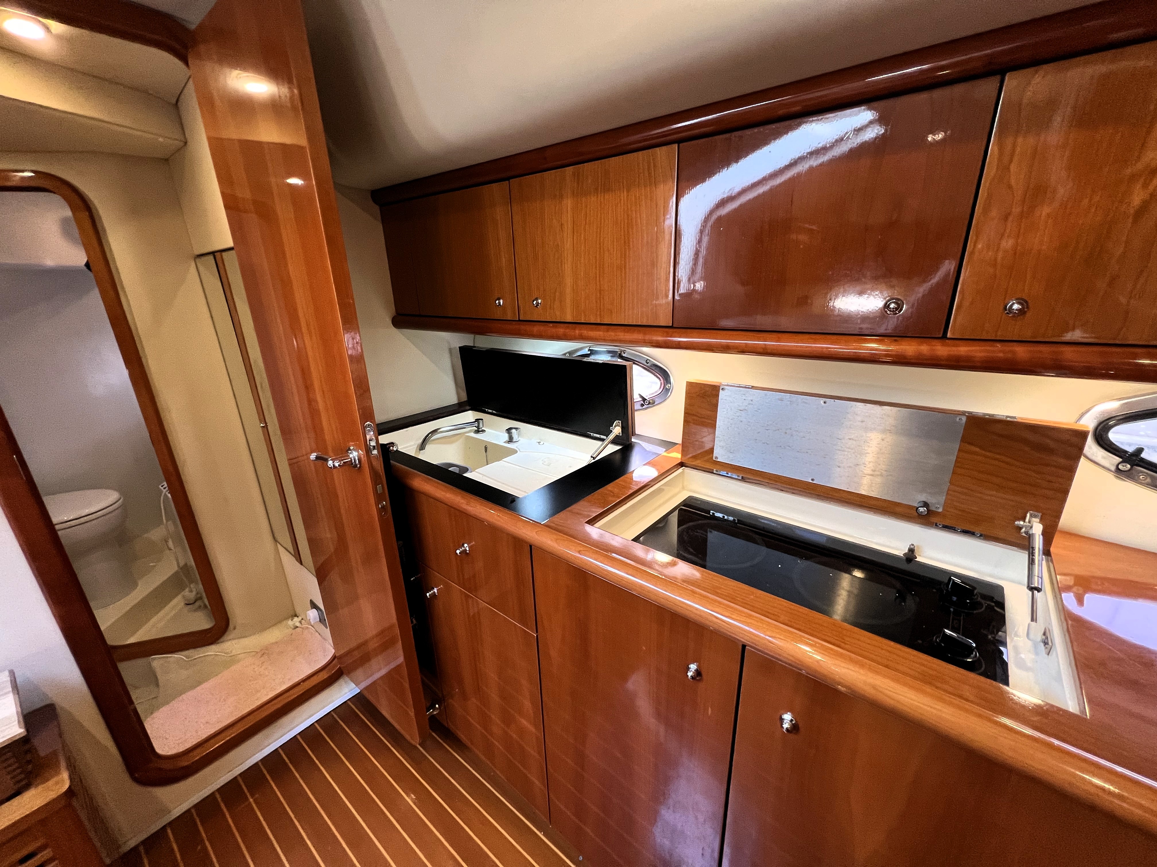 This example benefits from numerous desirable upgrades including bow thruster, new chart plotters, radar, air-conditioning, generator, powered passarelle, teak cockpit and bathing platform, and a beautifully finished high-gloss cherry interior.