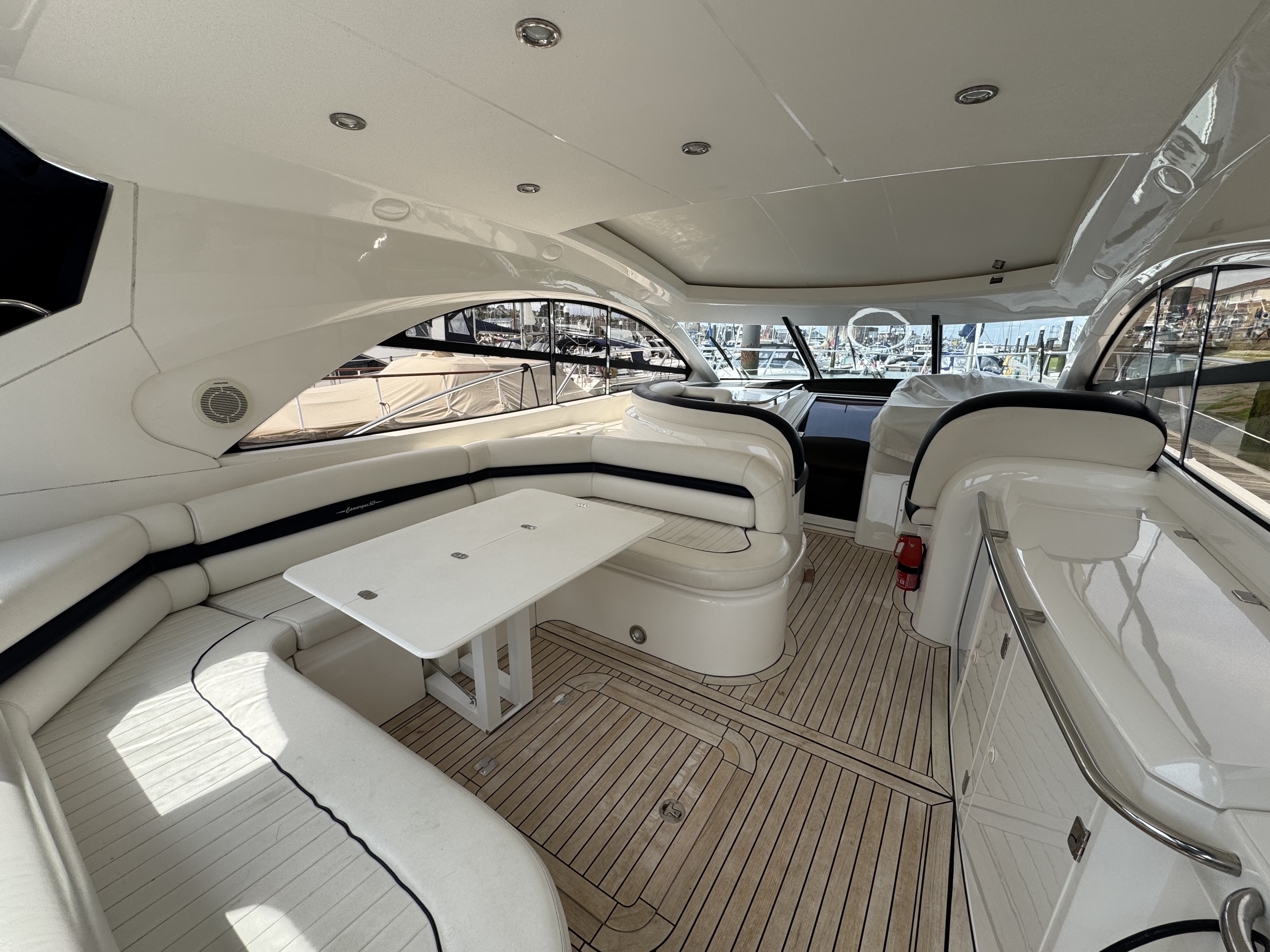 Large ‘U’ shaped seating area aft for 6 / 8 persons with fold-away table
