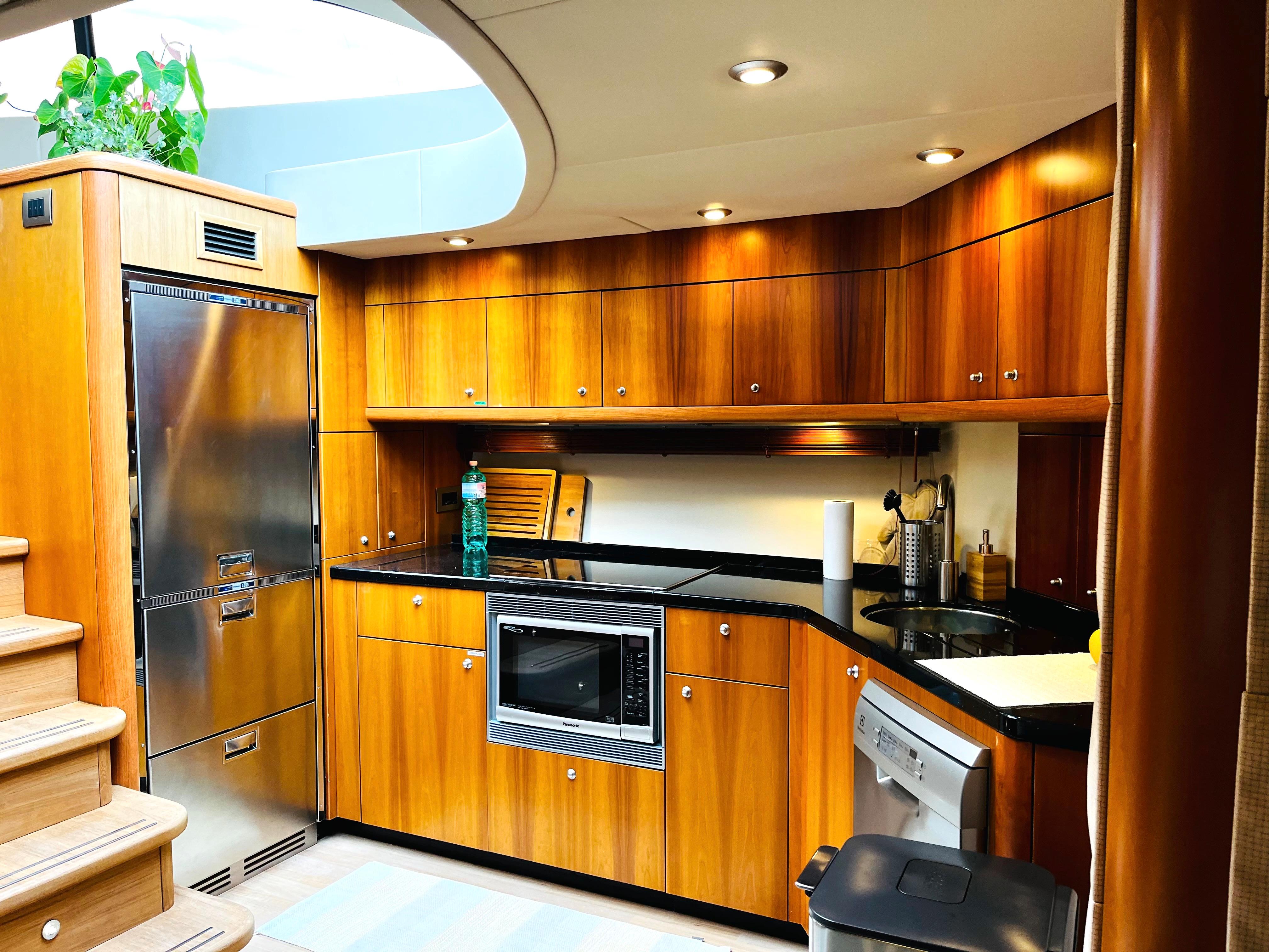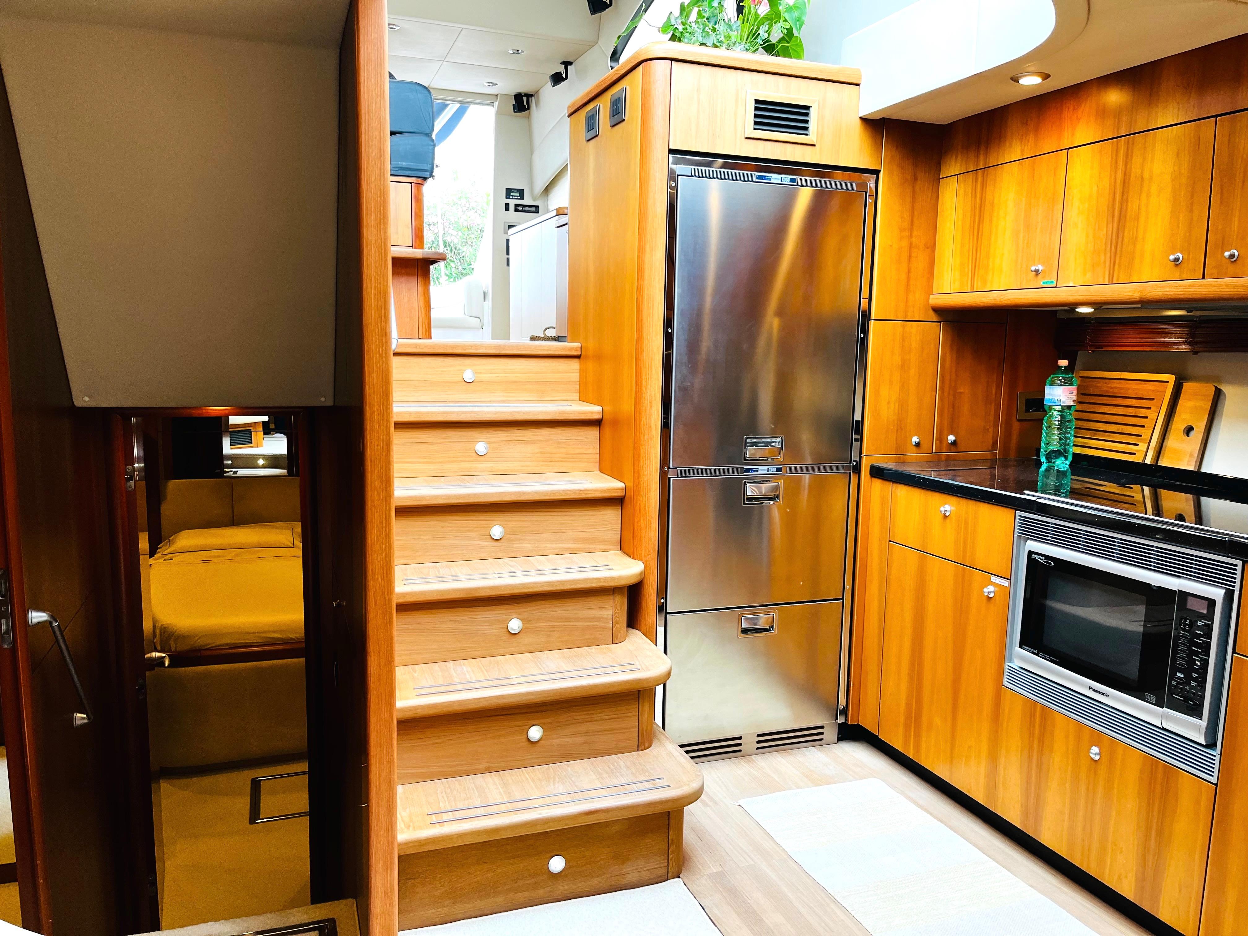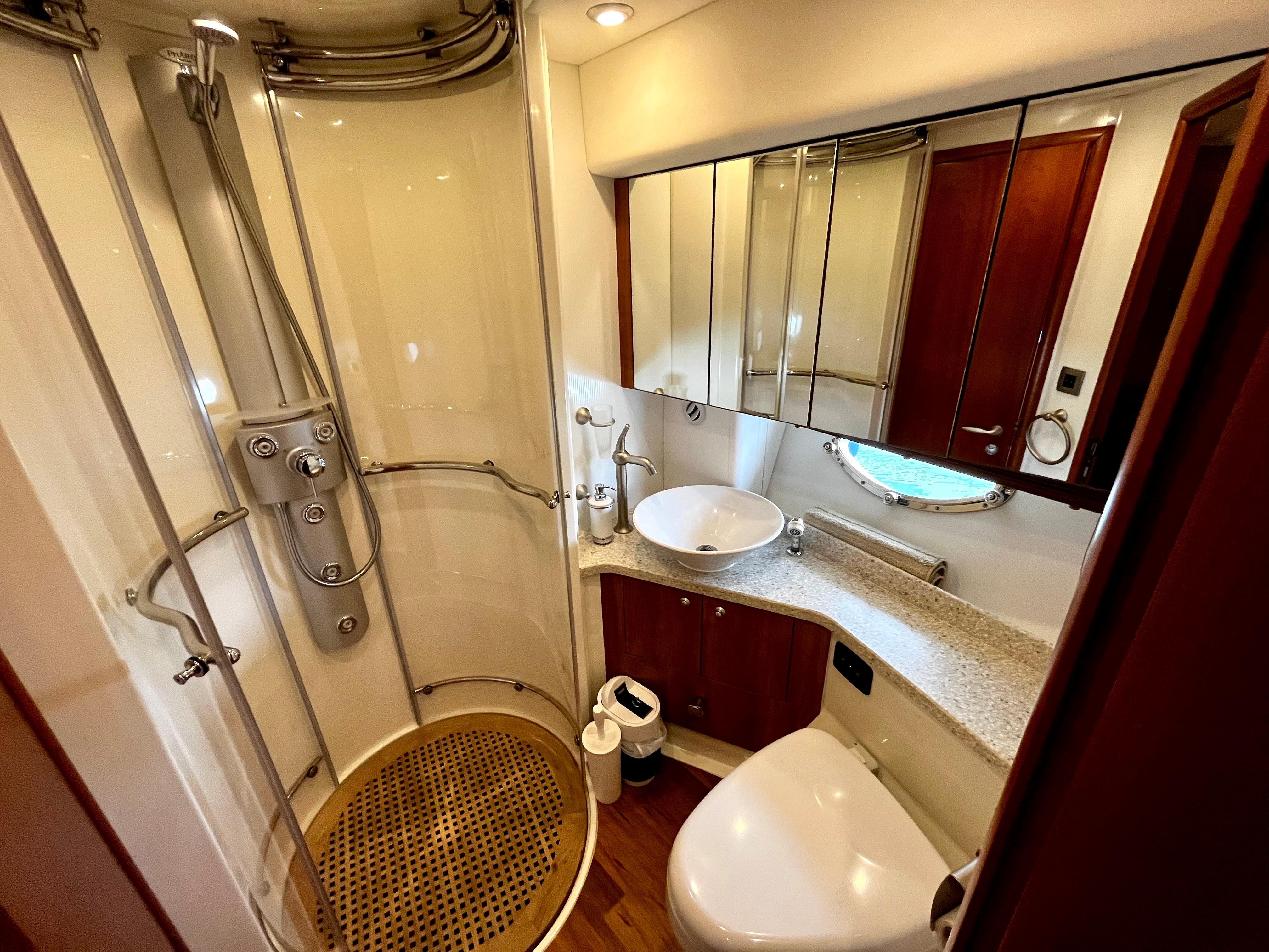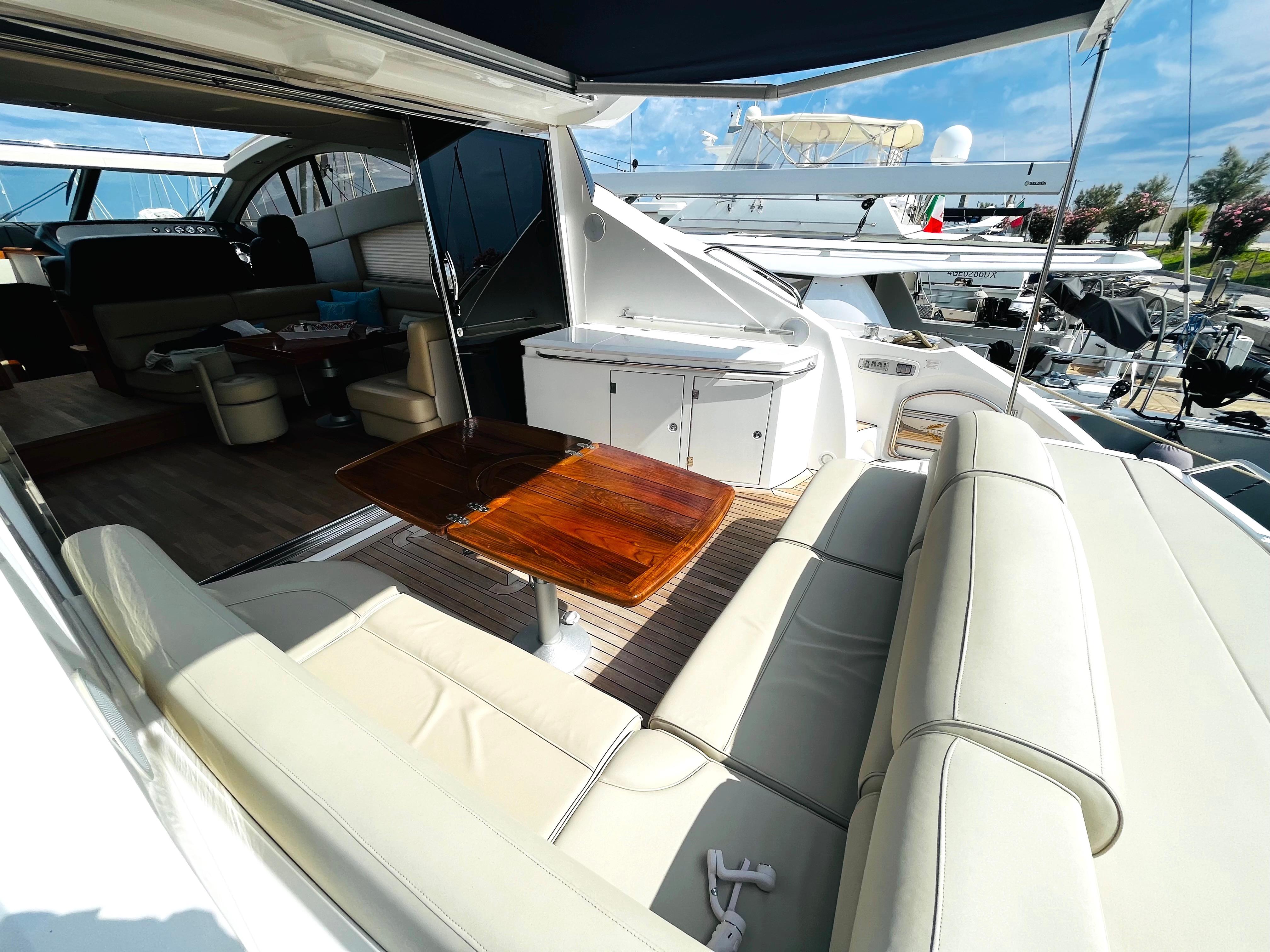 Large cockpit connected to the saloon by a fully open steel door, specious saloon with TV zone and Bose dolby surround sound.