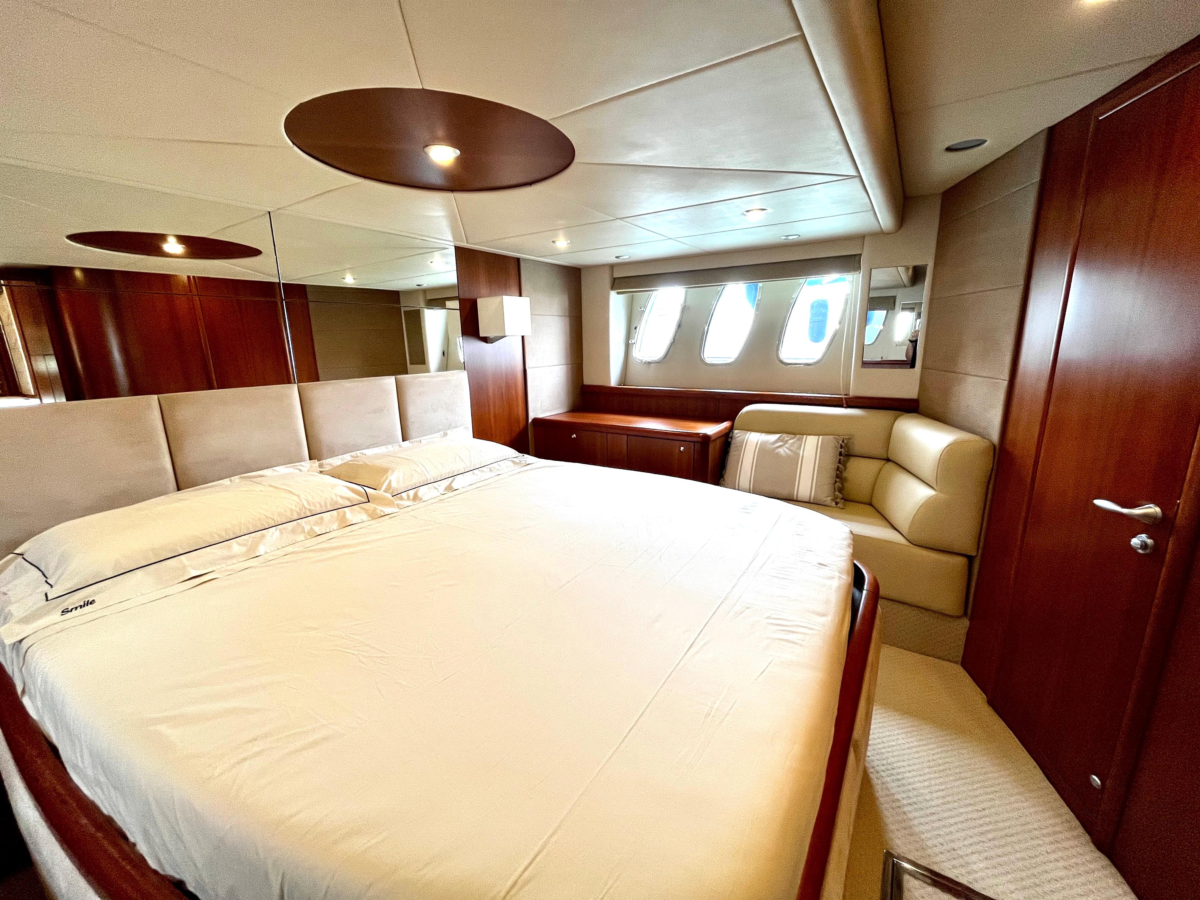 Smile is a perfect example of a very well maintained Sunseeker Predator 62. For friends and family the Predator 62 presents and powerful holiday platform, with a cruising range of 270 nautical miles, there´s scope to enjoy a great deal and at full pelt, 37 knots gets you wherever you like - fast! While riding the thrills, the sunseeker hull design and deck detailing provides an impressive soft riding sensation. Beyond design study the comport is key, with this boat continuing the theme of open plan deck saloon with atrium style stairwell, this time to a second lower saloon and galley from which three sleeping cabins radiate. Please contact [email protected] to arrange a viewing or on 0034661684150.