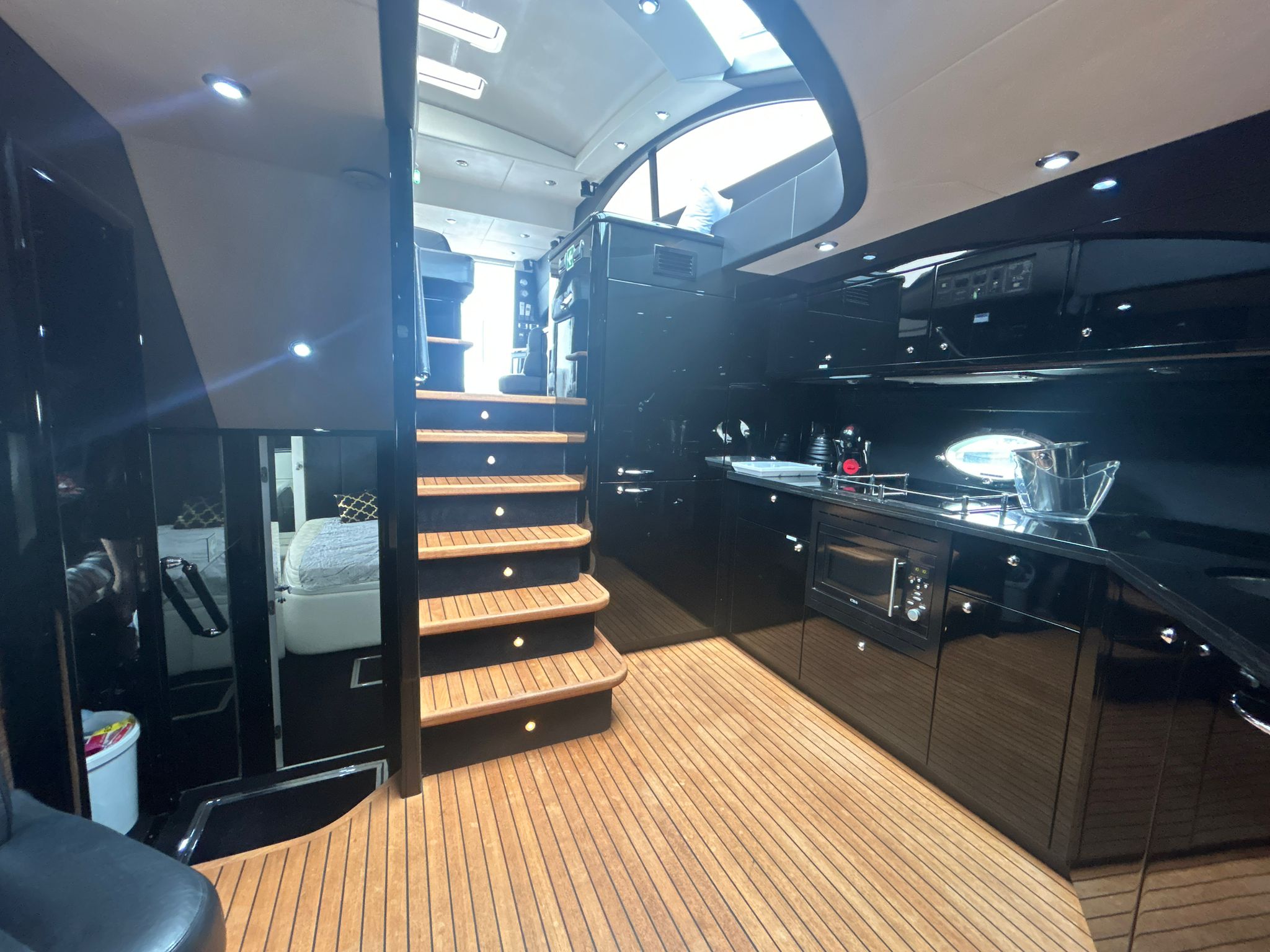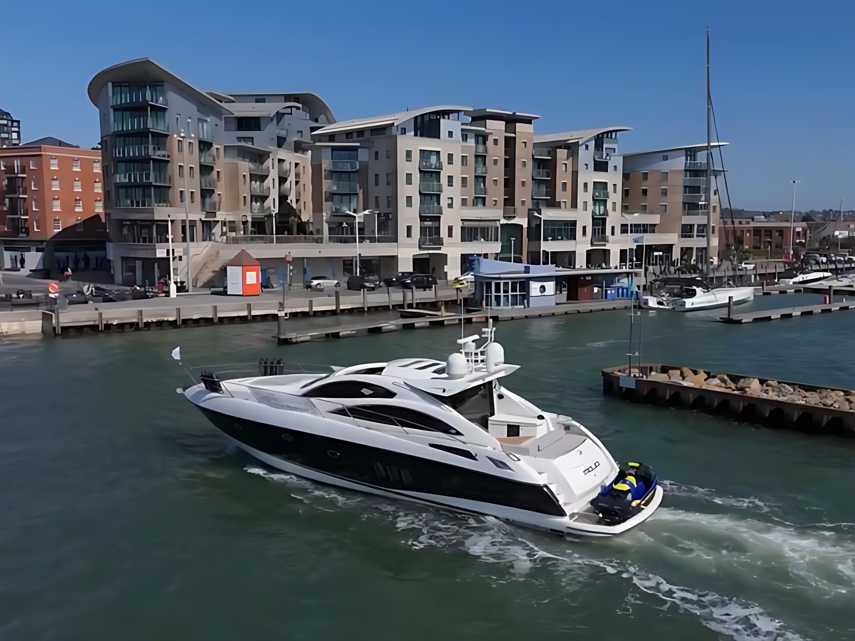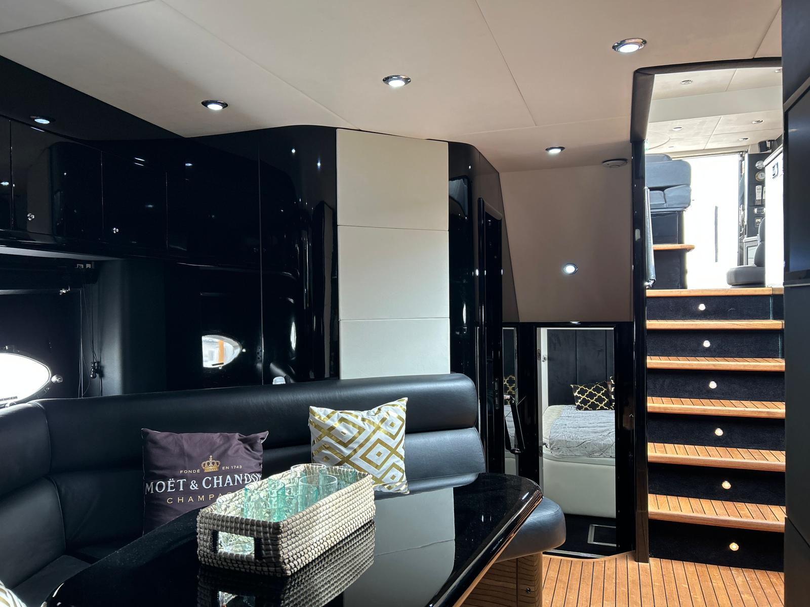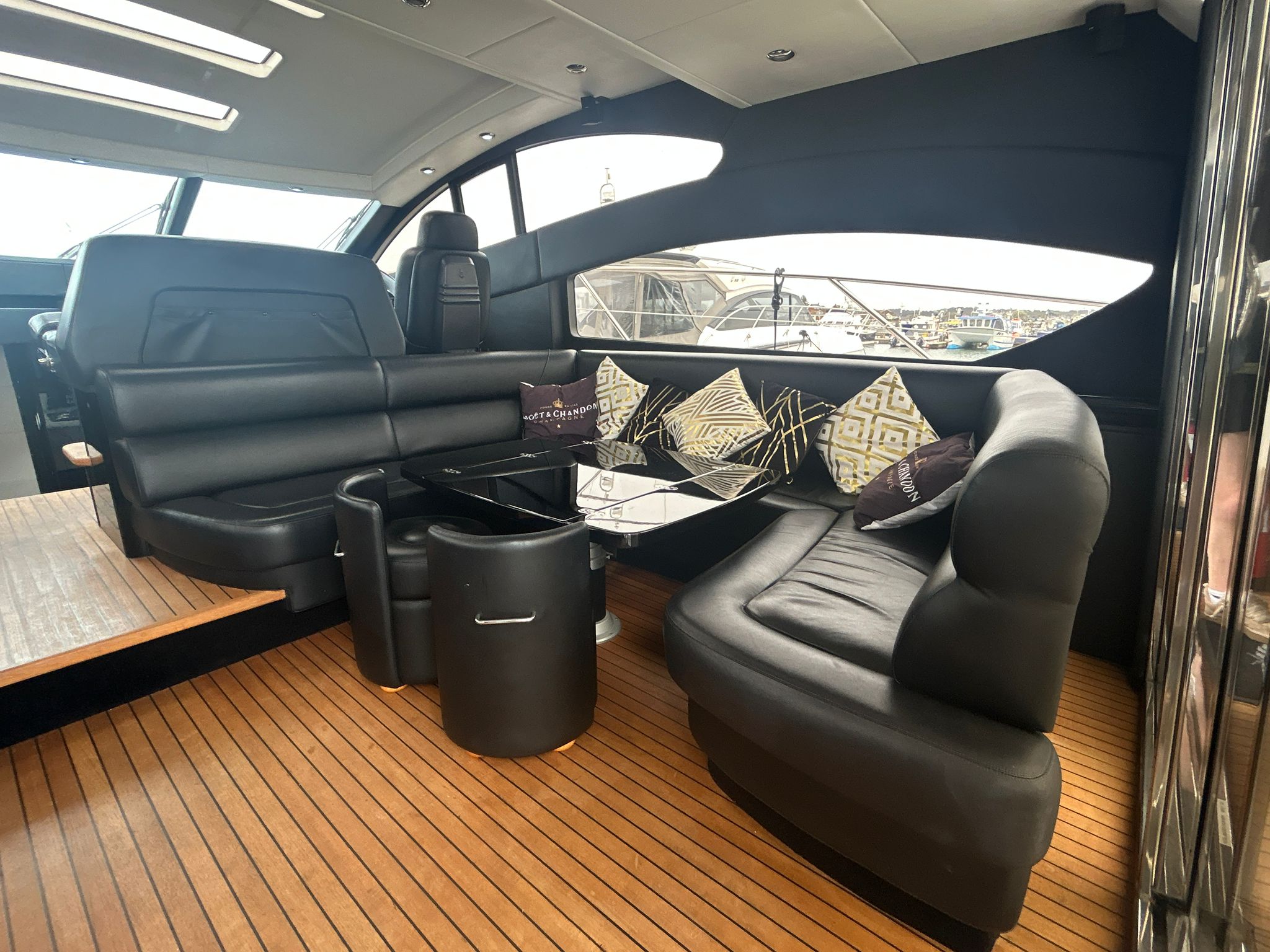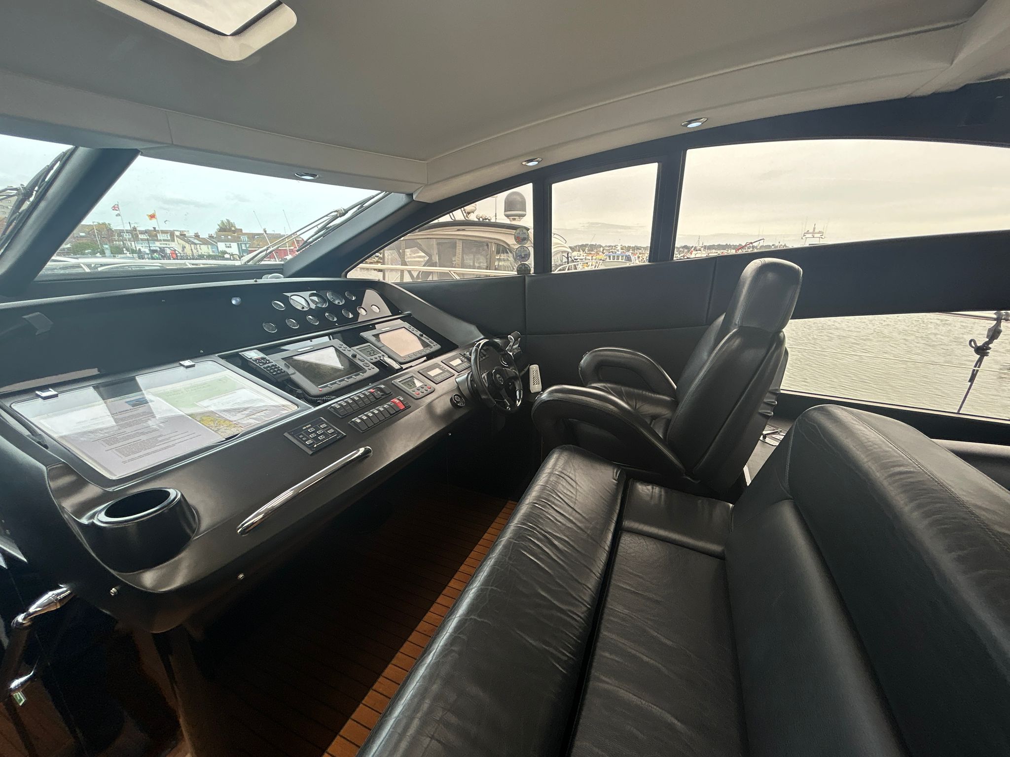 A fantastic opportunity to acquire a very special one off 62 Predator. MOJO was a custom build both supplied and commissioned by Sunseeker London and has a unique black and white lacquer interior. Most boats of this age could be suffering with their wood interiors but not MOJO, she is a true timeless example which looks awesome with that Predator DNA and profile with stunning interior to match. This boat is ready and able to be used turn key for the forth coming season. The more powerful 1100 MANs V10 Turbo diesel engines takes her to a healthy top speed. The Predator 62 was a massively popular worldwide and still testament to the continued success and what Sunseeker has achieved over the years. Not only first class engineering, finishing and design, but also that wow factor when being sat at that helm position at high speed – this example will not disappoint in performance and accommodation. As far as we know the only 62 Predator within the UK and can either stay here TAX paid or visit other shores on a TA subject to status. She has been very well maintained by her current owner by local professionals within the industry. Please call for viewings and discussion. More photos and Videos are available on request. Lying UK. Accommodation She boasts an huge spec and inventory equipped to cruise with a Crew cabin for a further two as and when required. MOJO is also Coded for Charter so again all safety equipment can be included within the sale together with good will.