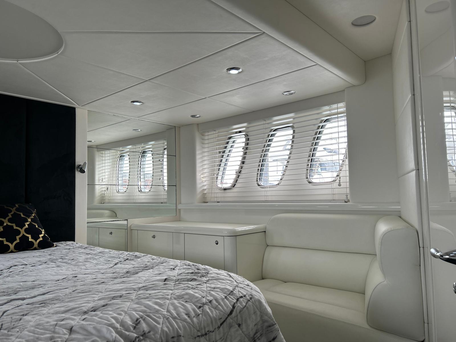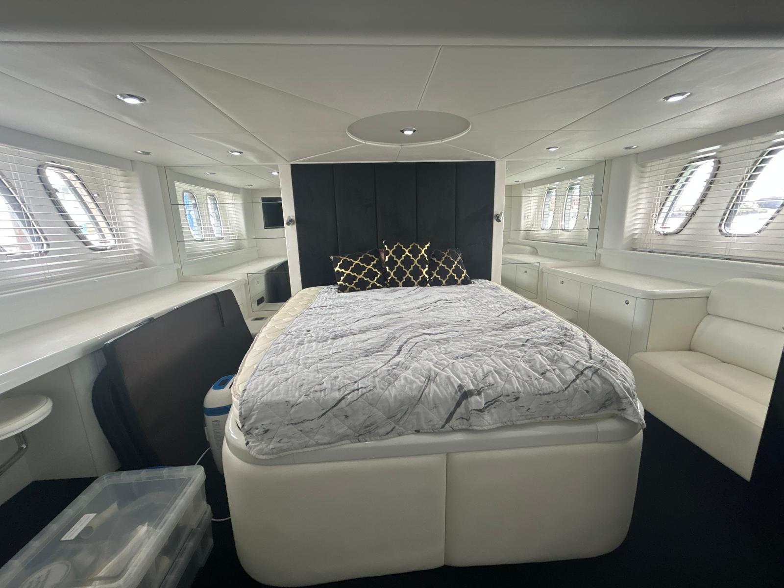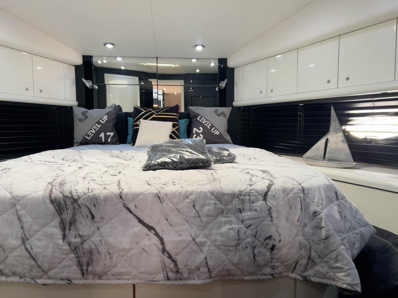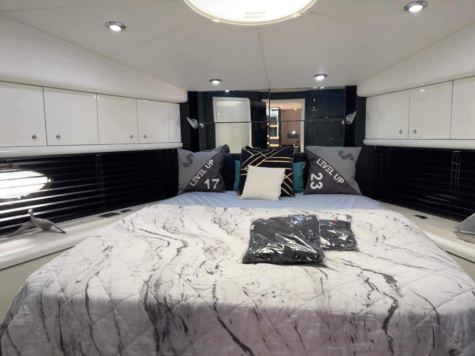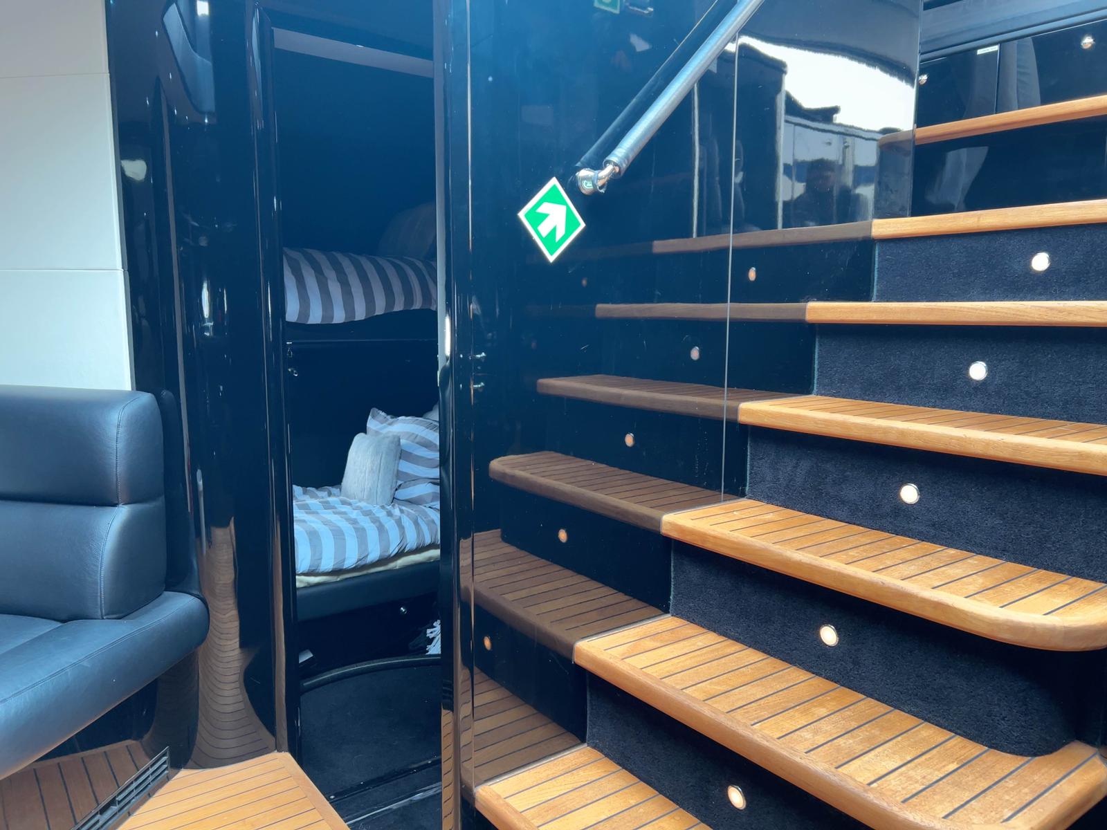 A fantastic opportunity to acquire a very special one off 62 Predator. MOJO was a custom build both supplied and commissioned by Sunseeker London and has a unique black and white lacquer interior. Most boats of this age could be suffering with their wood interiors but not MOJO, she is a true timeless example which looks awesome with that Predator DNA and profile with stunning interior to match. This boat is ready and able to be used turn key for the forth coming season. The more powerful 1100 MANs V10 Turbo diesel engines takes her to a healthy top speed. The Predator 62 was a massively popular worldwide and still testament to the continued success and what Sunseeker has achieved over the years. Not only first class engineering, finishing and design, but also that wow factor when being sat at that helm position at high speed – this example will not disappoint in performance and accommodation. As far as we know the only 62 Predator within the UK and can either stay here TAX paid or visit other shores on a TA subject to status. She has been very well maintained by her current owner by local professionals within the industry. Please call for viewings and discussion. More photos and Videos are available on request. Lying UK. Accommodation She boasts an huge spec and inventory equipped to cruise with a Crew cabin for a further two as and when required. MOJO is also Coded for Charter so again all safety equipment can be included within the sale together with good will.