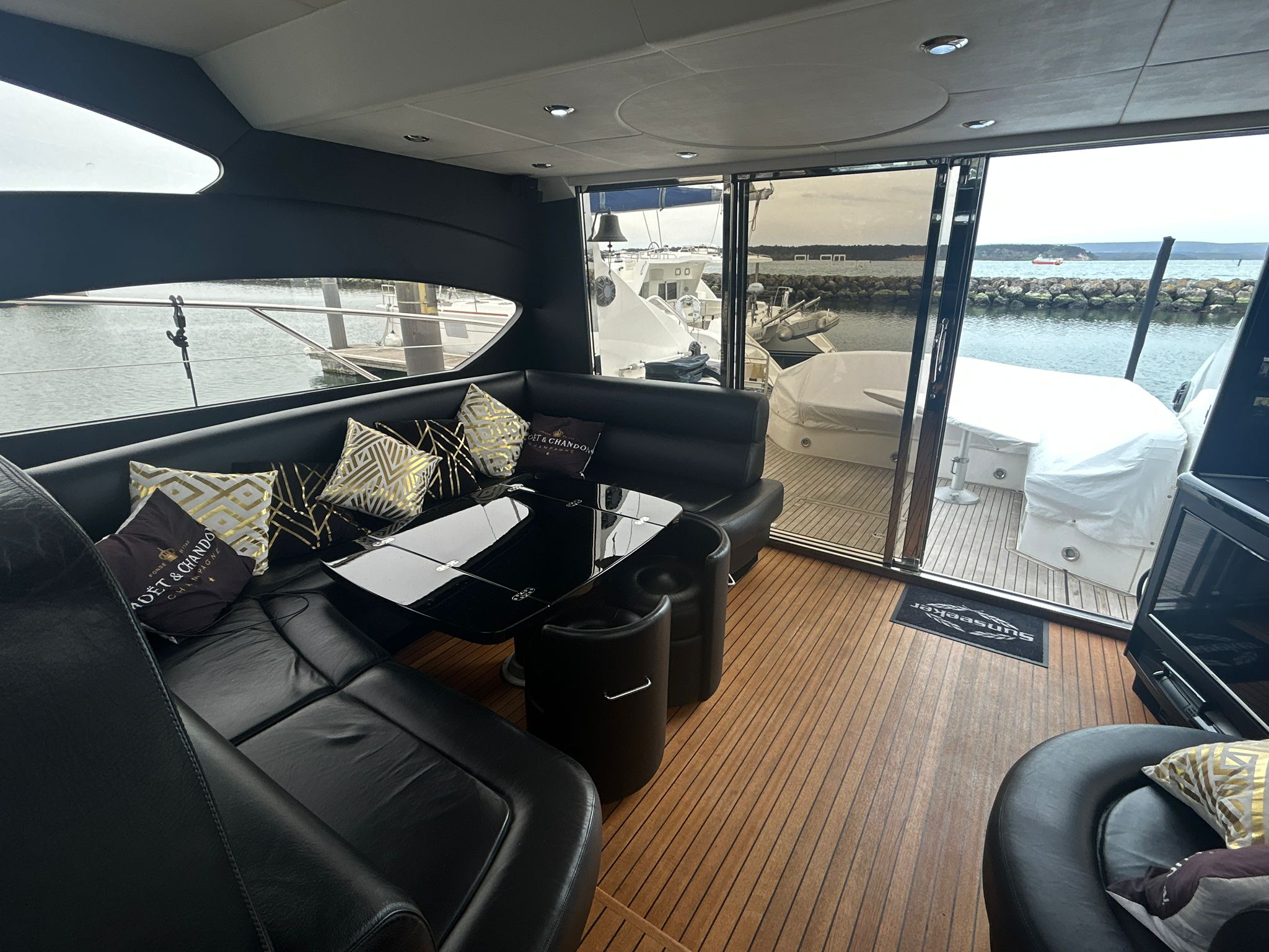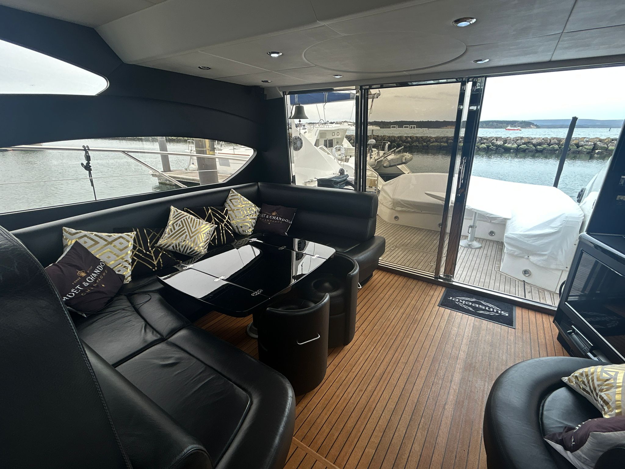 MOJO was a specifically requested custom build both supplied and commissioned by Sunseeker Sales in 2007 and boasts a unique black and white lacquer interior and teak decking through out both the upper and lower saloons.