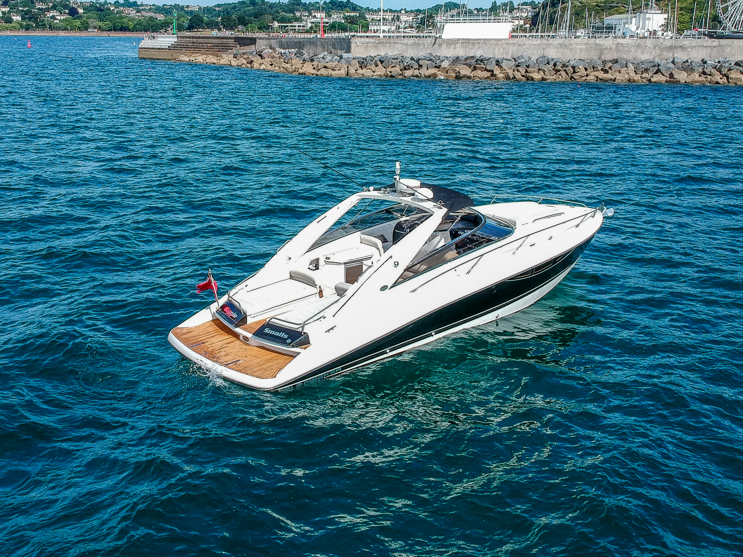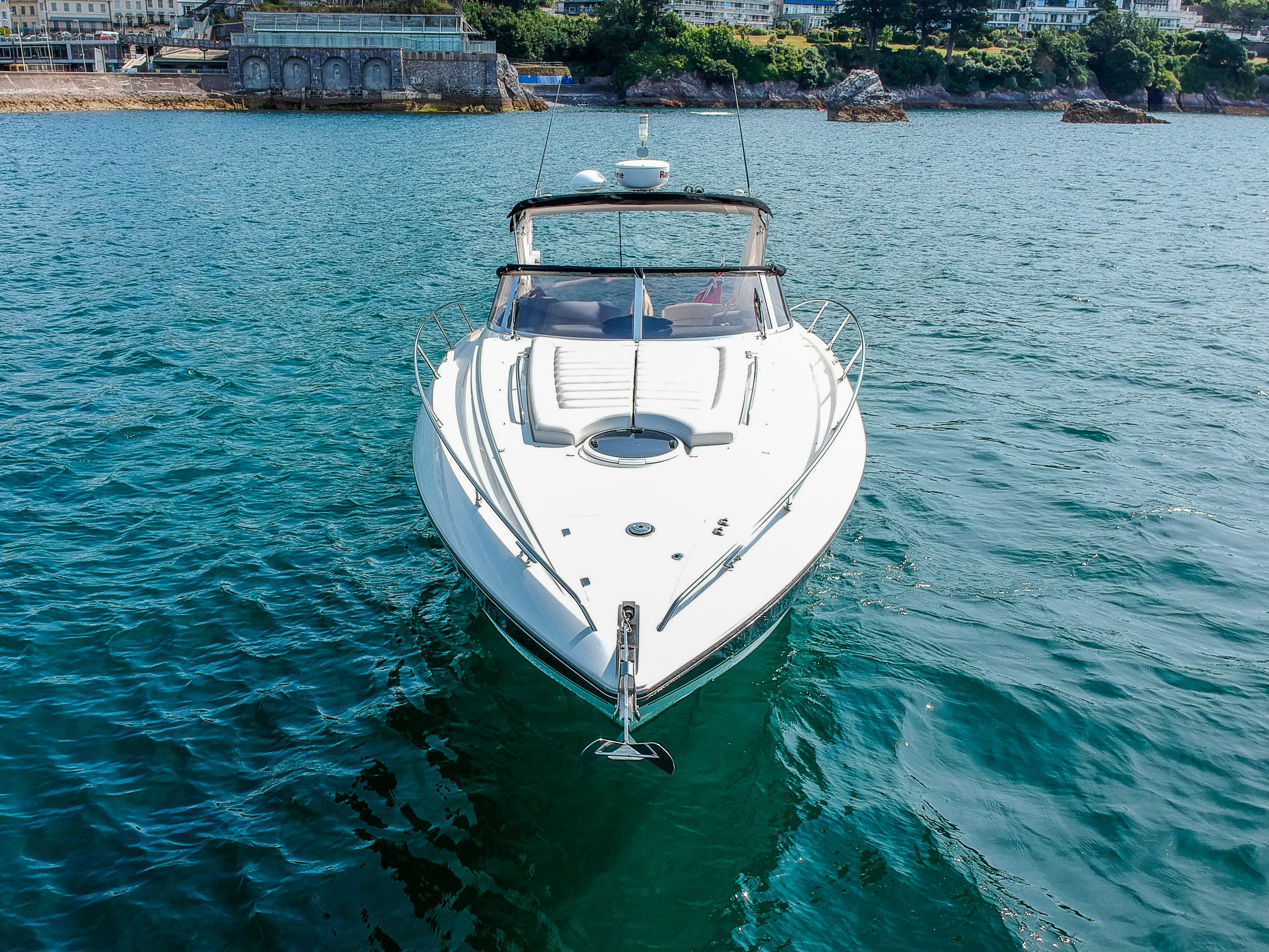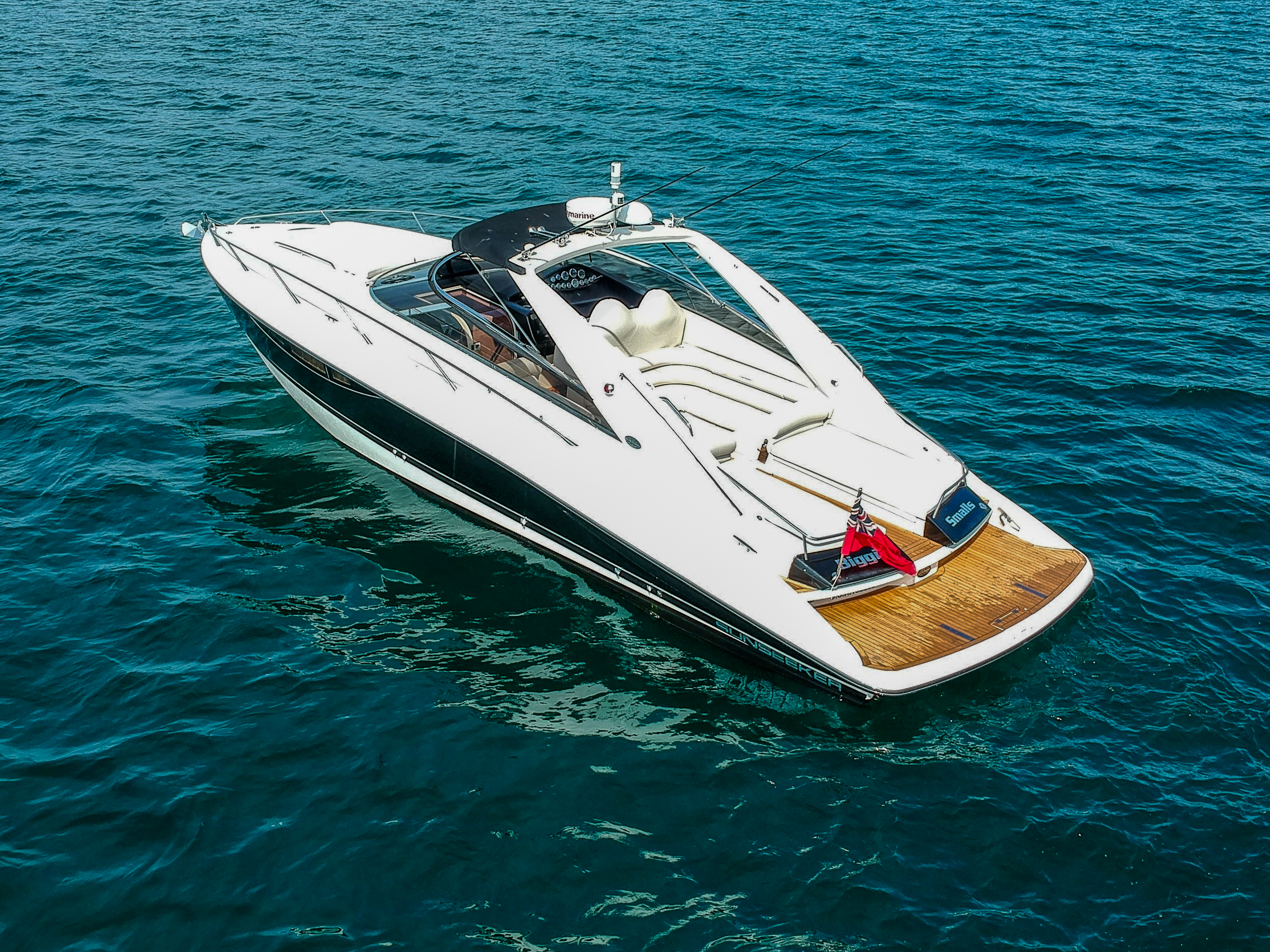 The Sunseeker Superhawk 43 is a high-performance motor yacht known for its sleek design powerful engines & 007 movie appearances. 'Biggie Smalls' features a spacious cockpit, comfortable interior with accommodation for up to four, a galley & heads. This model is recognised for its sheer glamour, immense power and its ability to reach exhilarating top speeds.