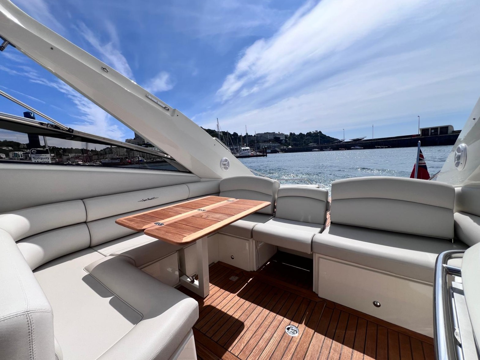 This is a rare opportunity to own a stunning example of the Sunseeker Superhawk 43, fitted with the highly sought-after triple Yanmar engine configuration. Always based in the UK, this boat has been lovingly cared for by just three owners. The current owner has proudly kept her for the past ten years, maintaining her to an exceptional standard both inside and out, mechanically and cosmetically.