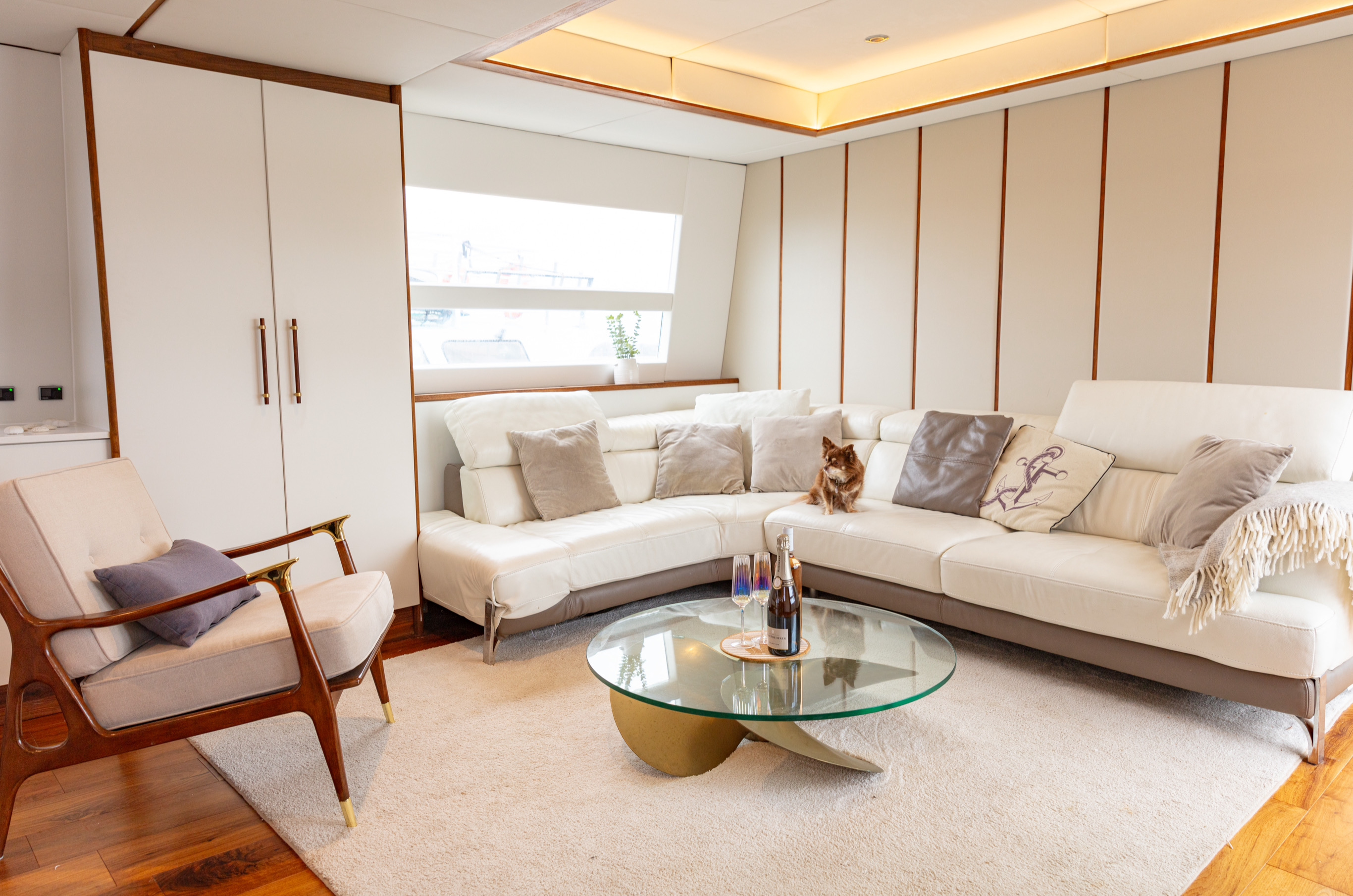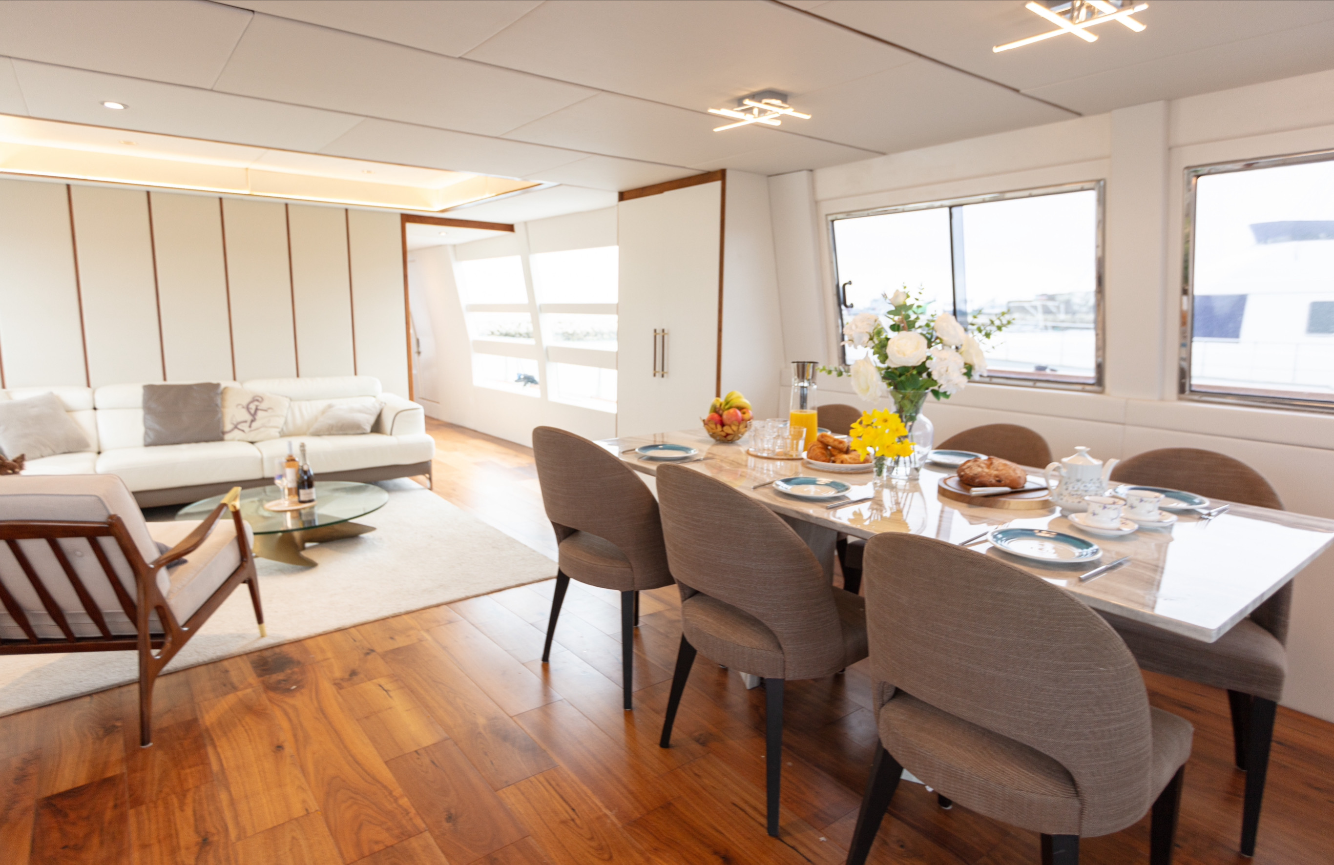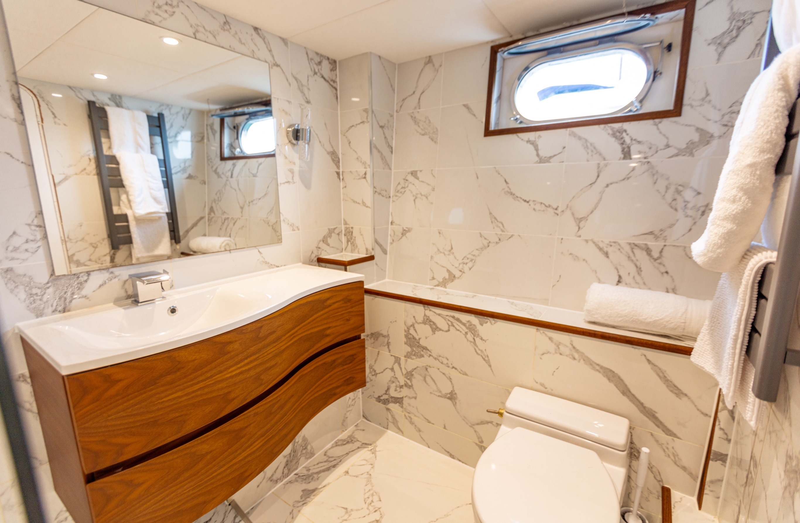 Walnut flooring and trim throughout main deck