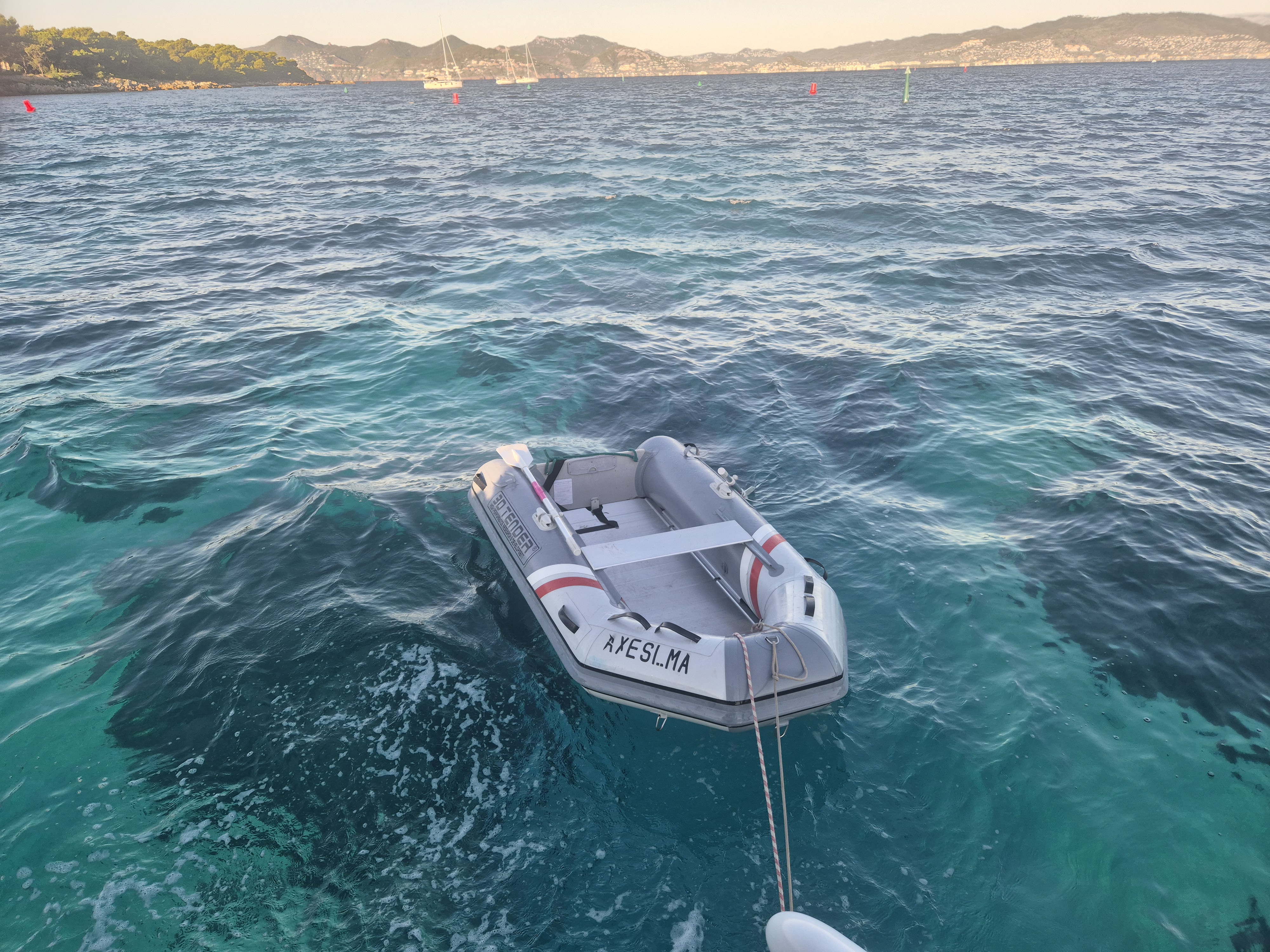 La sécurité est complète : radeau 2027, balise EPIRB 2029, balises MOB 2026, gilets révisés 2024, lignes de vie, détecteurs et extincteurs 2025. Mouillage équipé d’une ancre Rocna 25 kg avec 80 m de chaîne, guindeau Italwinch 2022 à double commande, propulseur d’étrave, annexe Hypalon avec Torqeedo, passerelle aluminium.