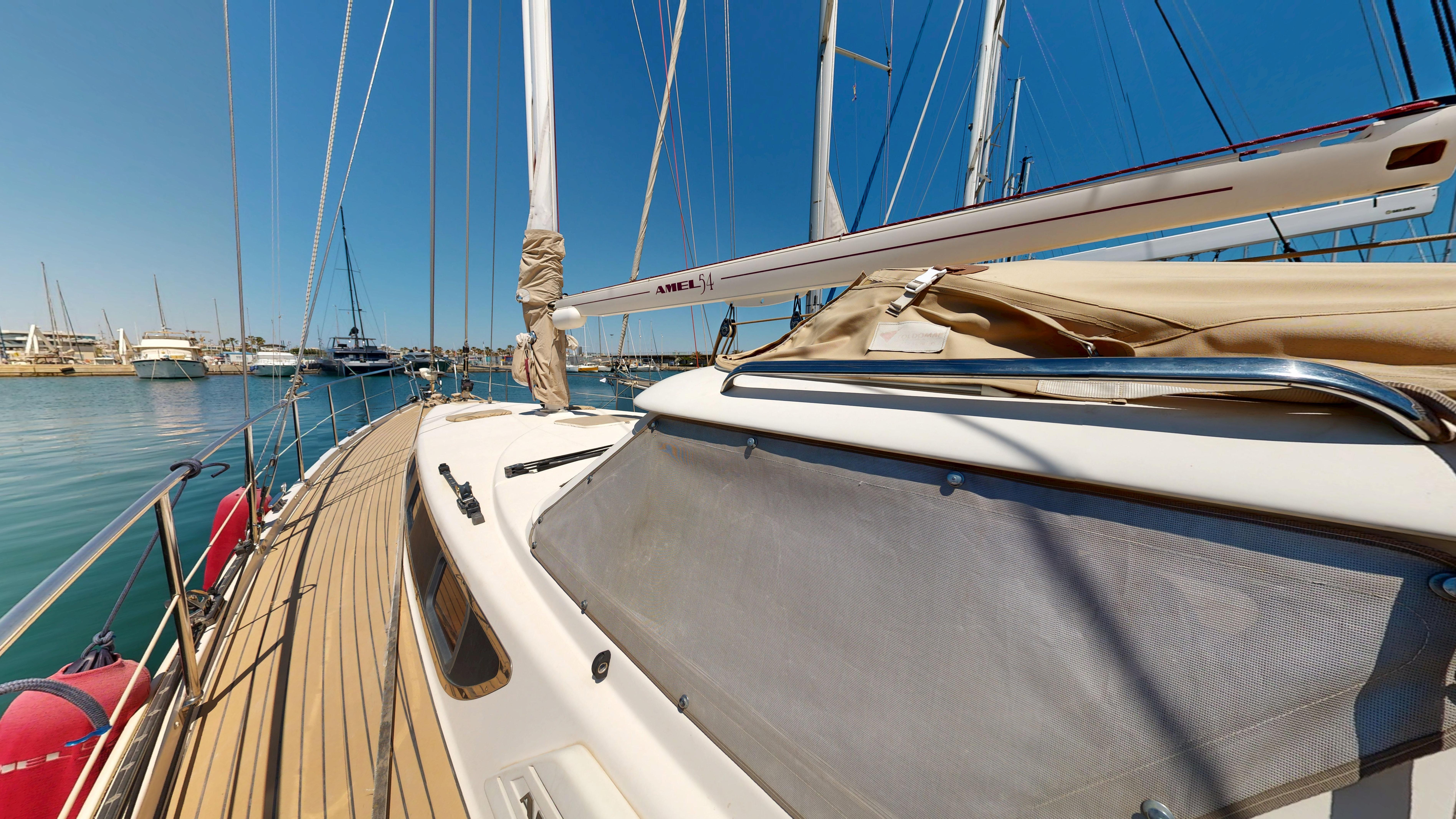 Amel 54 from 2010, equipped with the ‘comfort +’ pack. Standing rigging and current replaced in 2022, 2 mainsail furling motors in 2025, 2 solar panels and 2 wind turbines from 2024 installed on a stainless steel gantry, recent gel batteries, Opacmare gangway, Onan 11 Kva with 1324 hours, reversible air conditioning throughout the boat, Epersbacher 5000W heater, Volvo Penta D3 110CV with 1806 hours, Amel retractable bow thruster 8 kw overhauled in 2021.