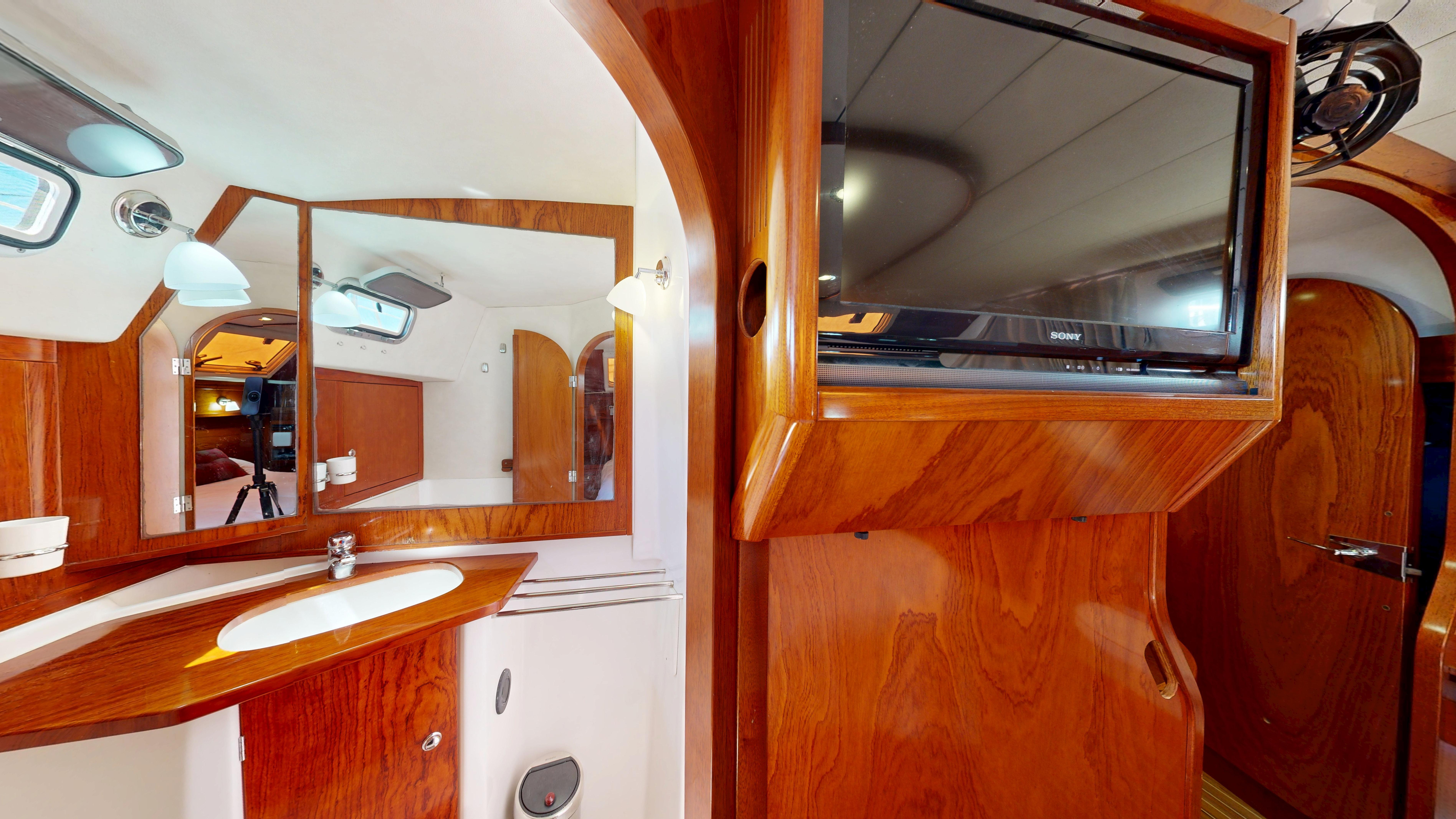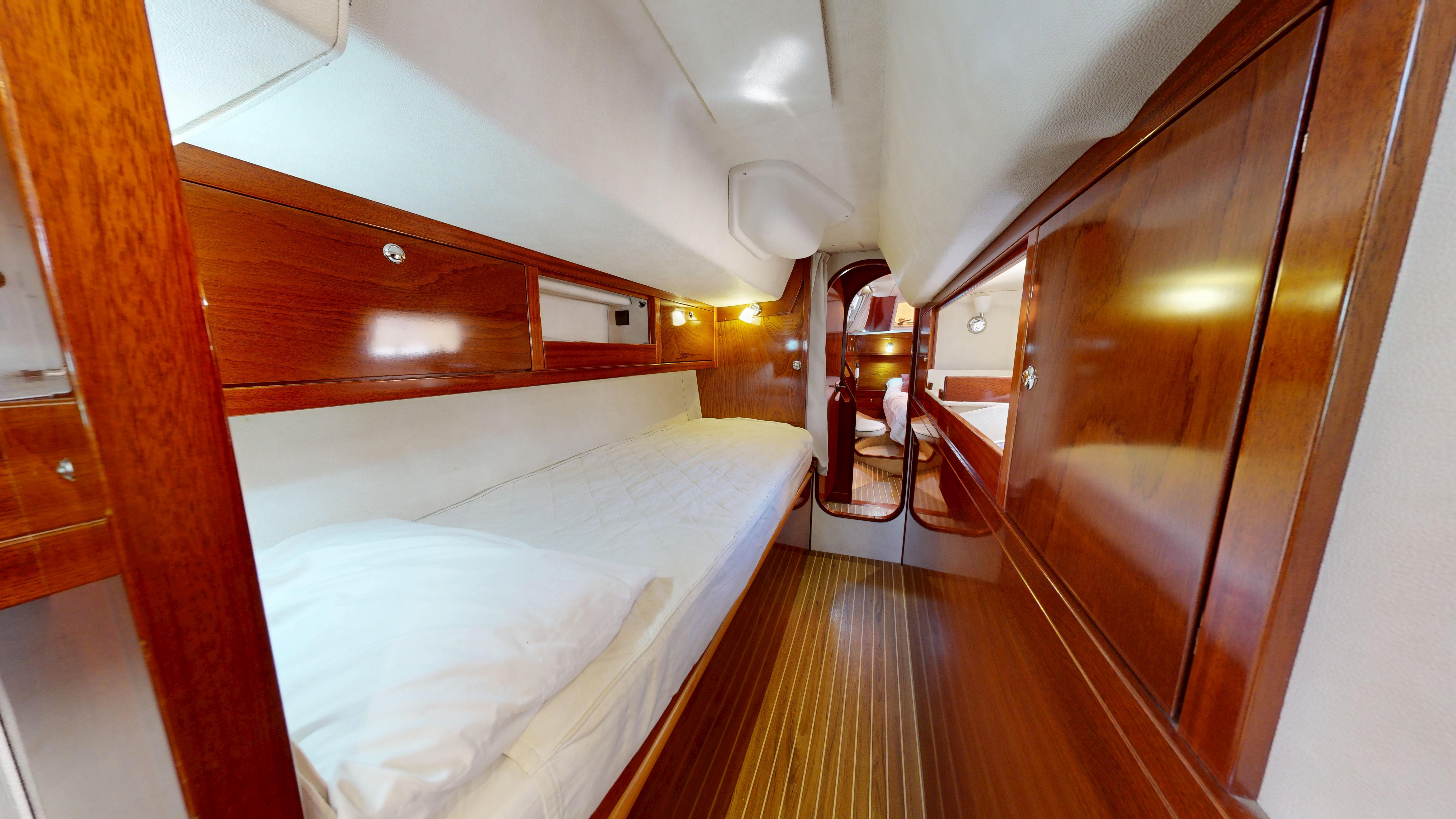 Forward cabin : Located on port side, double berth, closet and equipment, B&G H 3000 repeater.