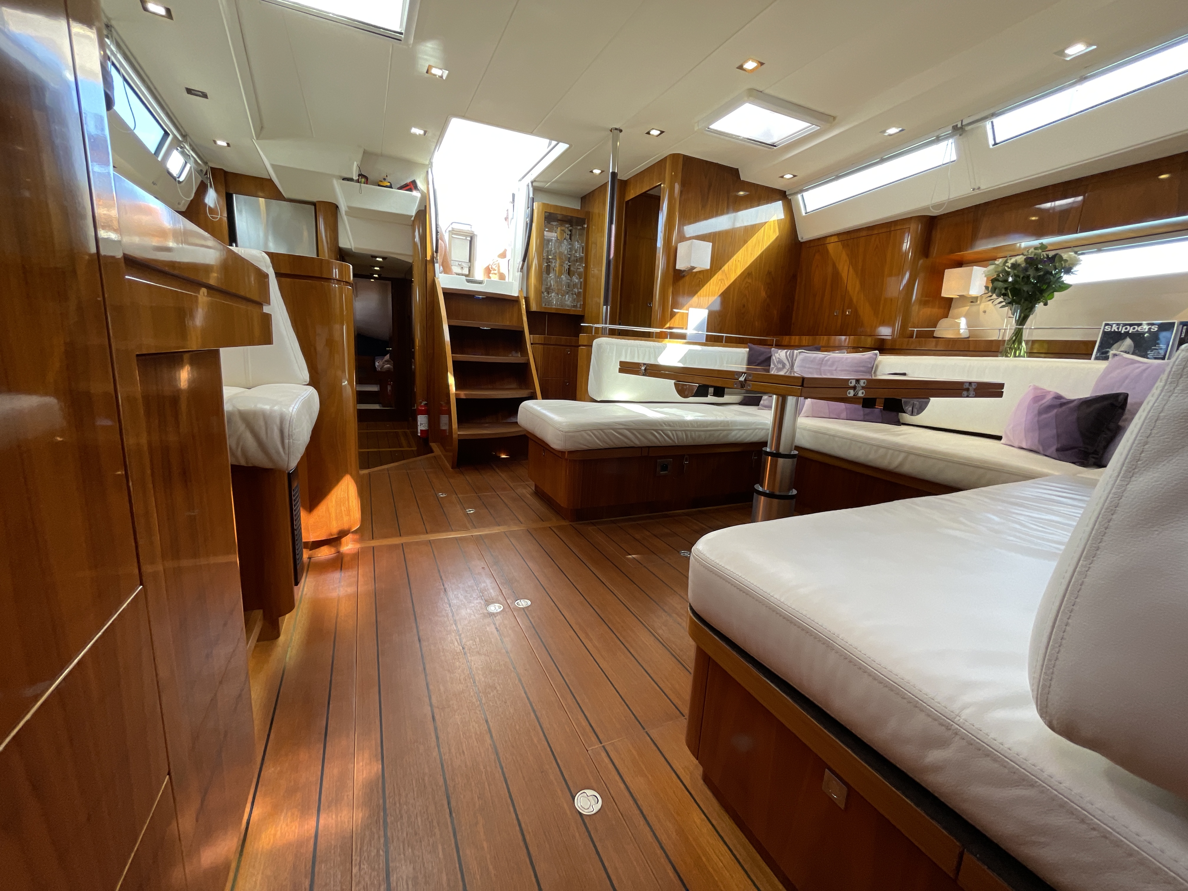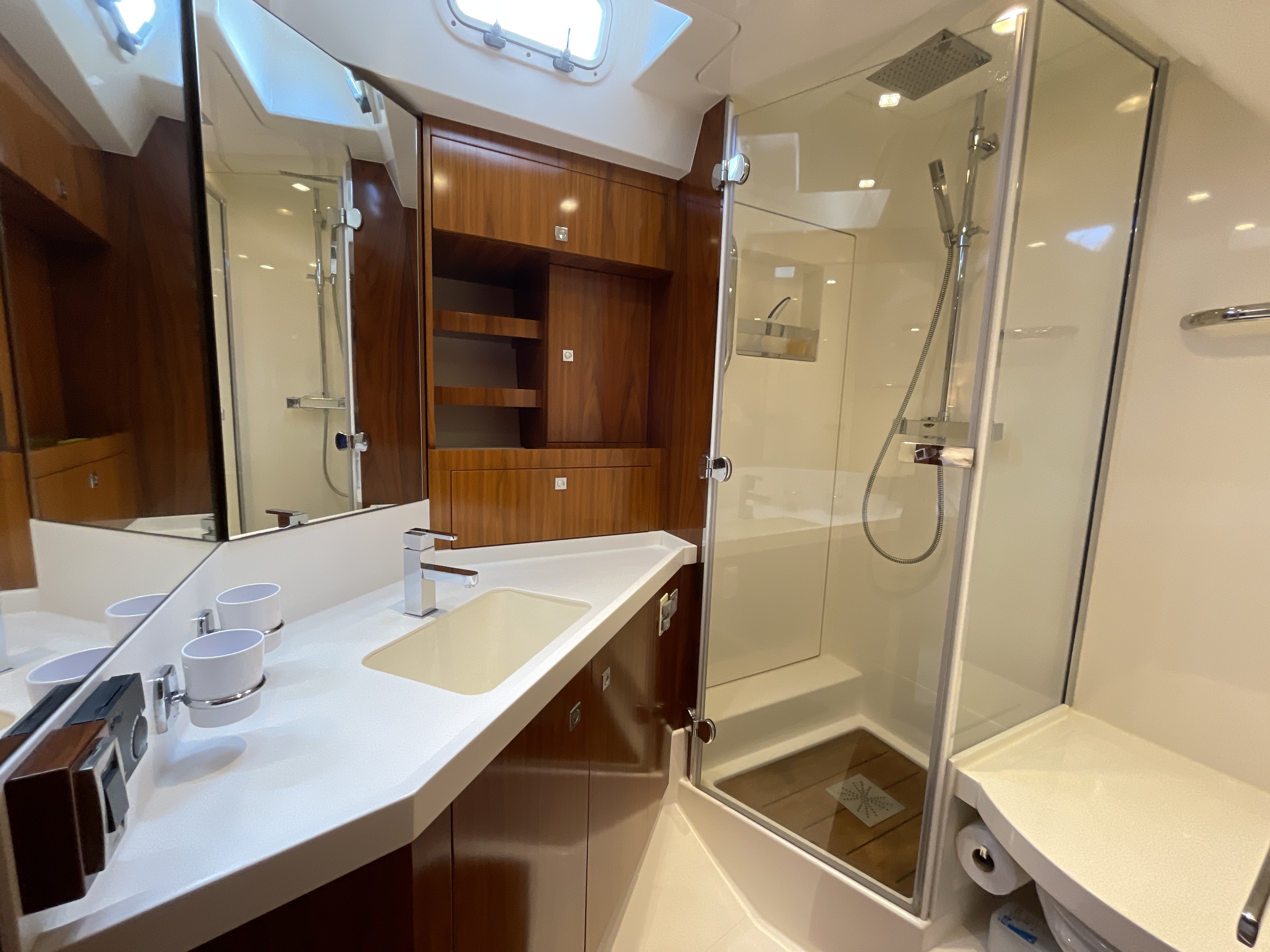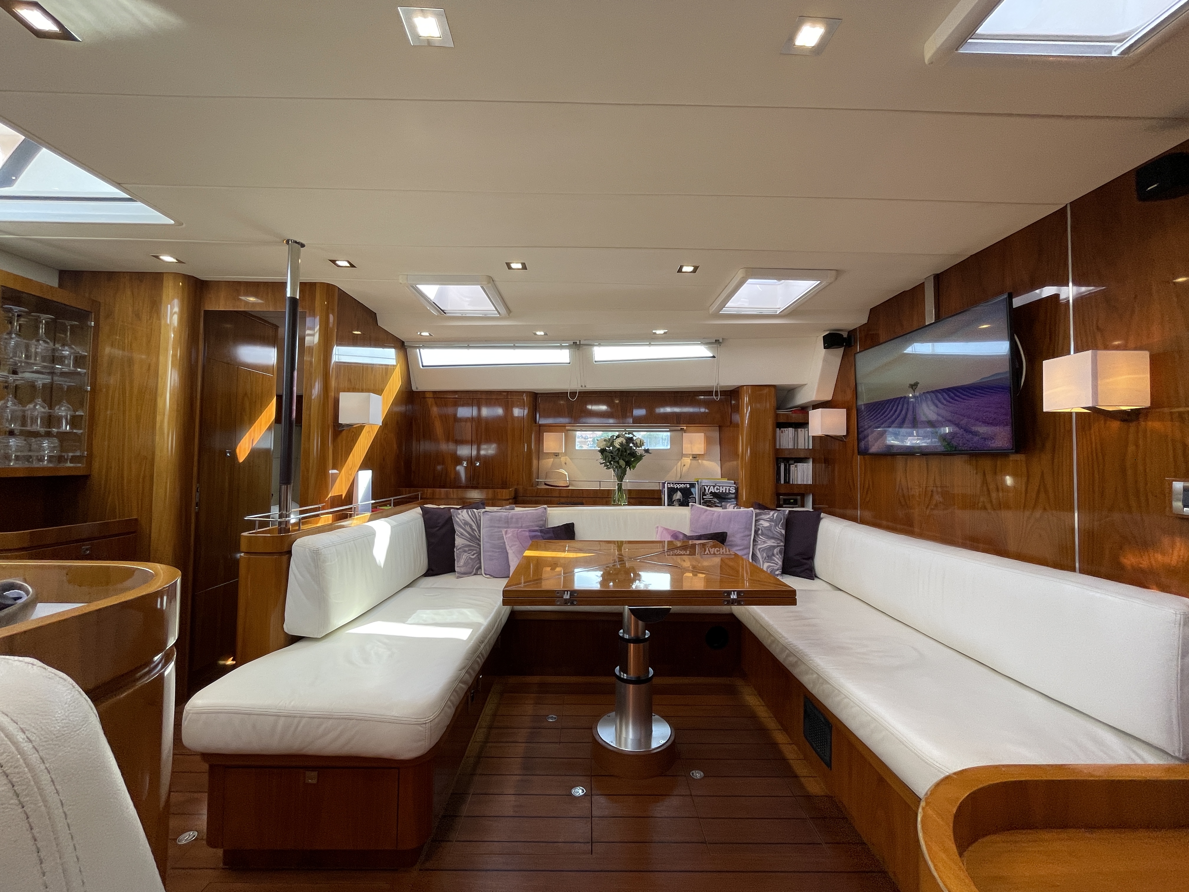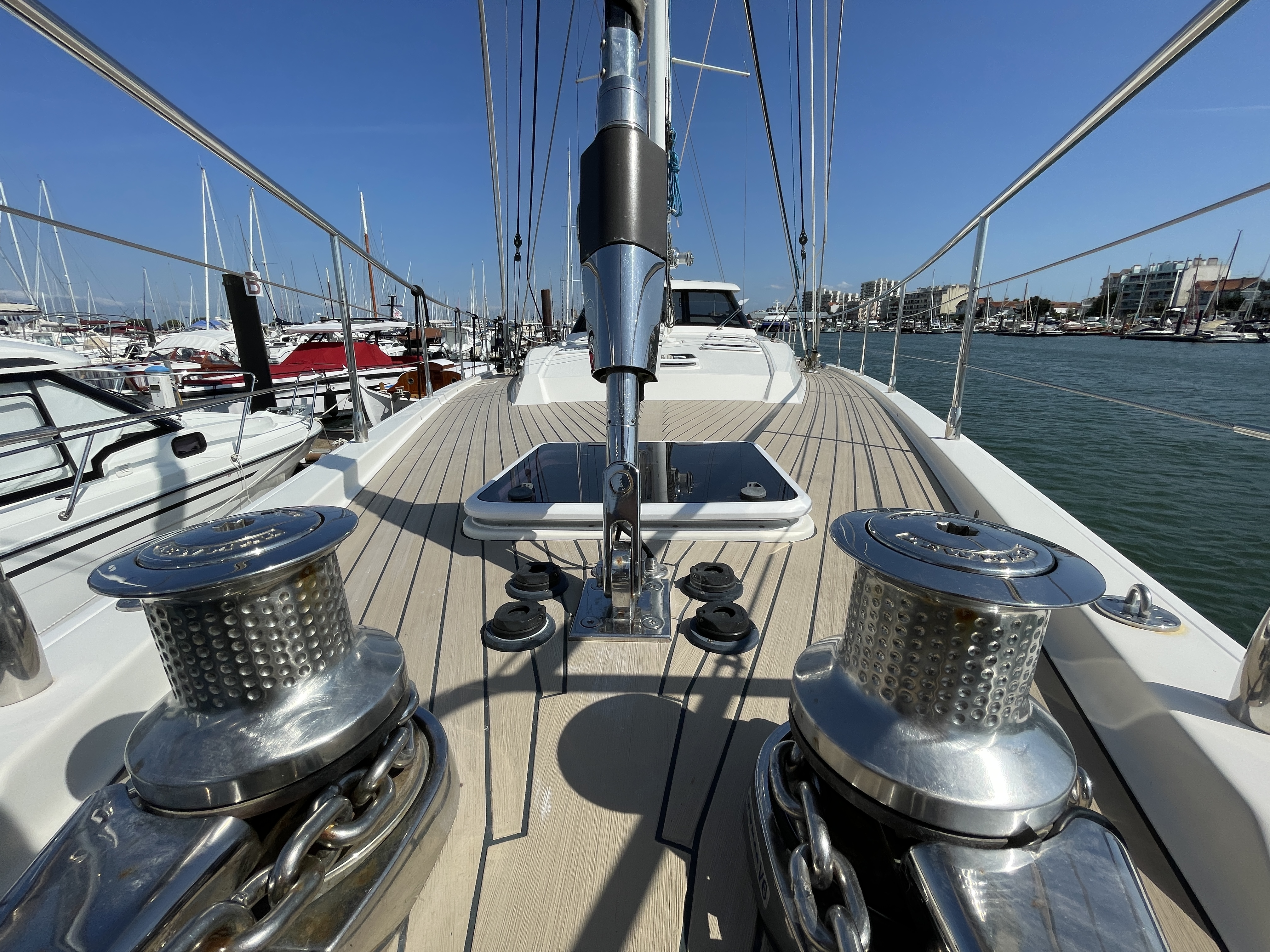 AC, Heating Webasto, Garage, dinghy & HB, Swimming plateform, Bow and Stern Thruster, 240 L H Watermaker instead 150 LH, Recent batteries and upgraded for electrical system (charger, inverter) two mooring with two windlass, full electronics, full set of sails in good condition including Gennaker, full set of covers and sun covers, sun matress, cushions in good shape etc.
