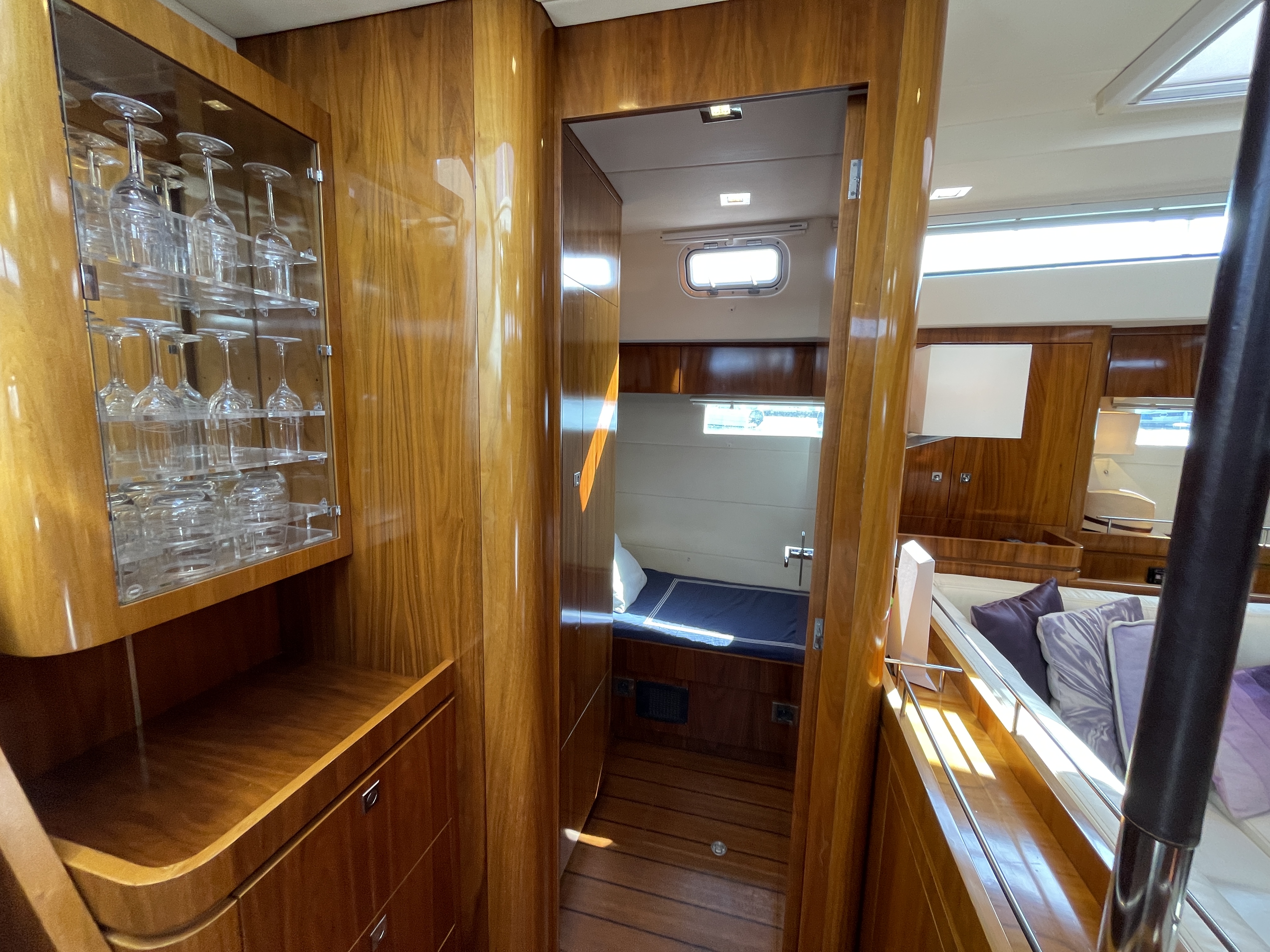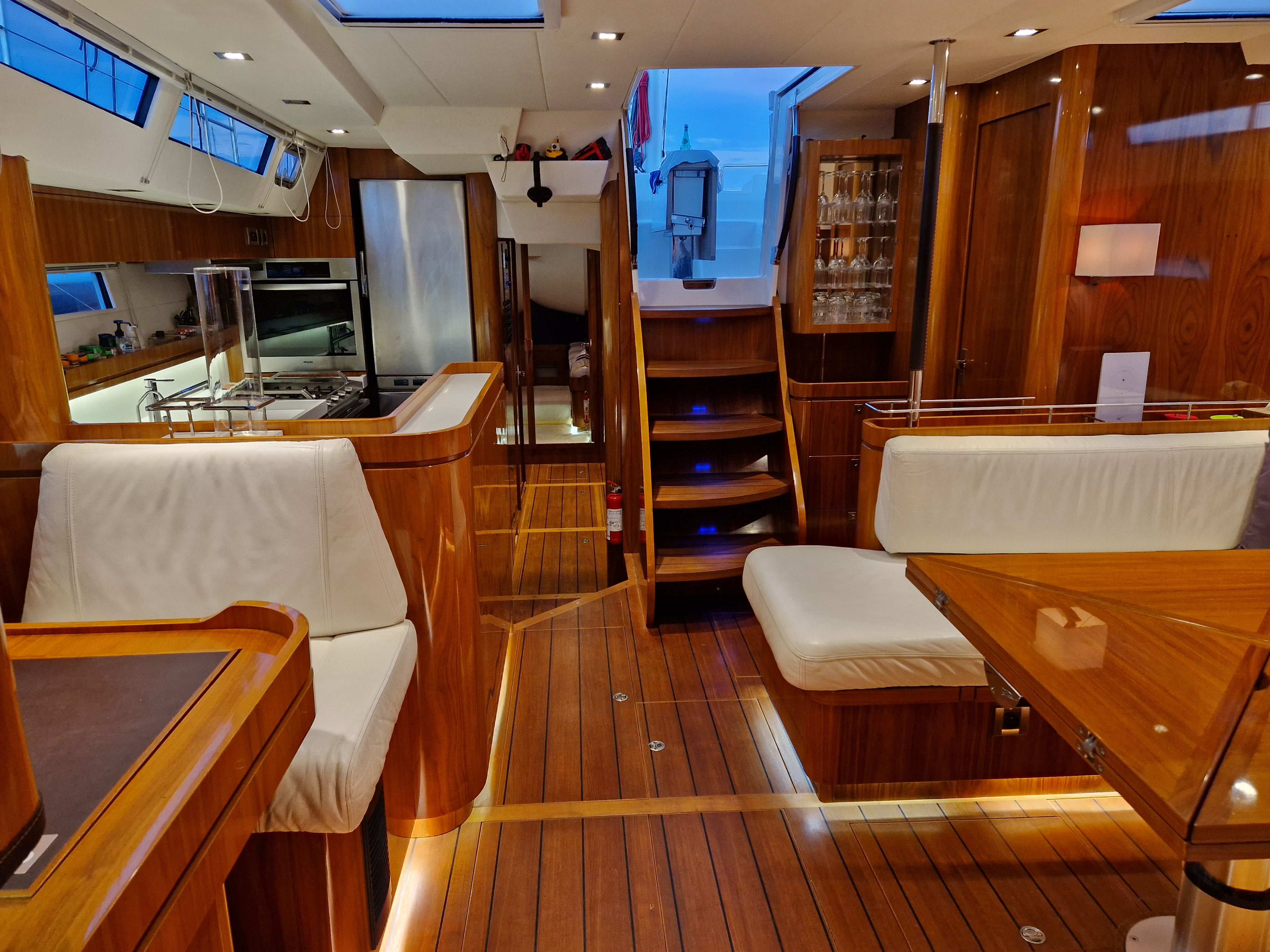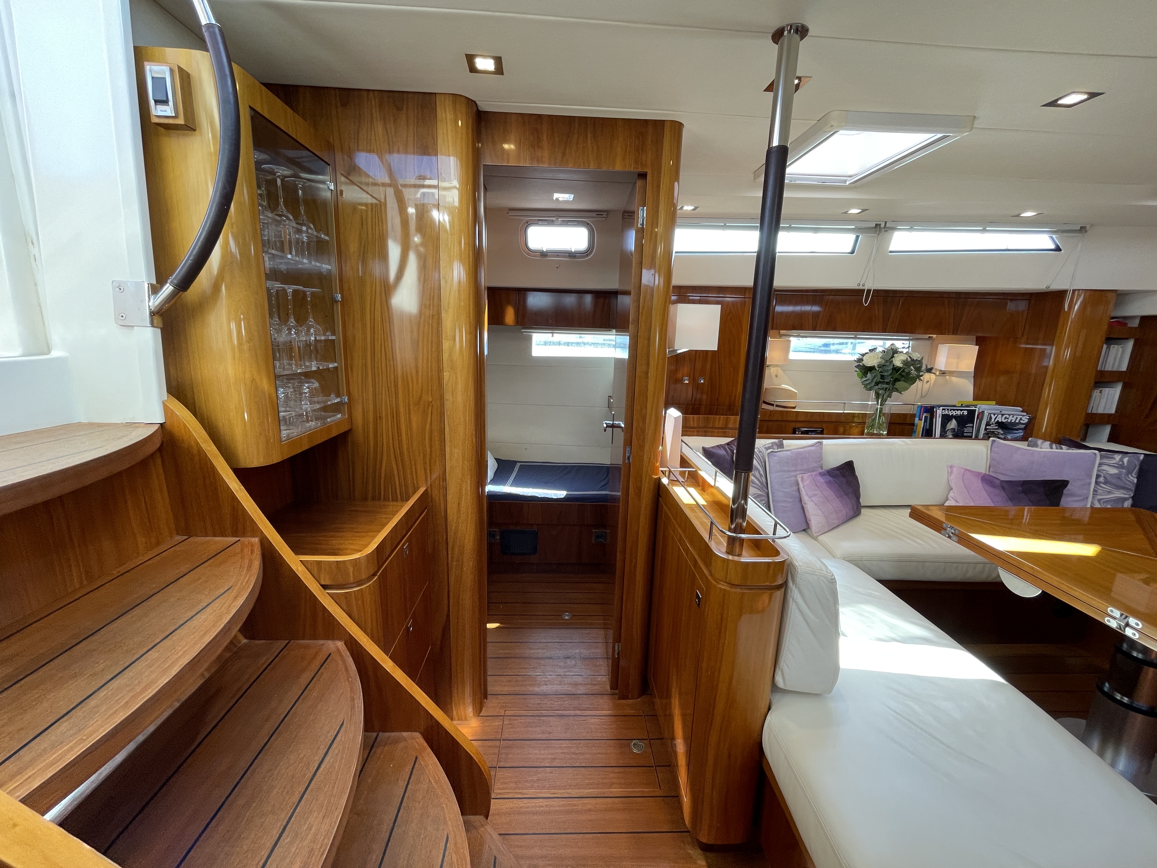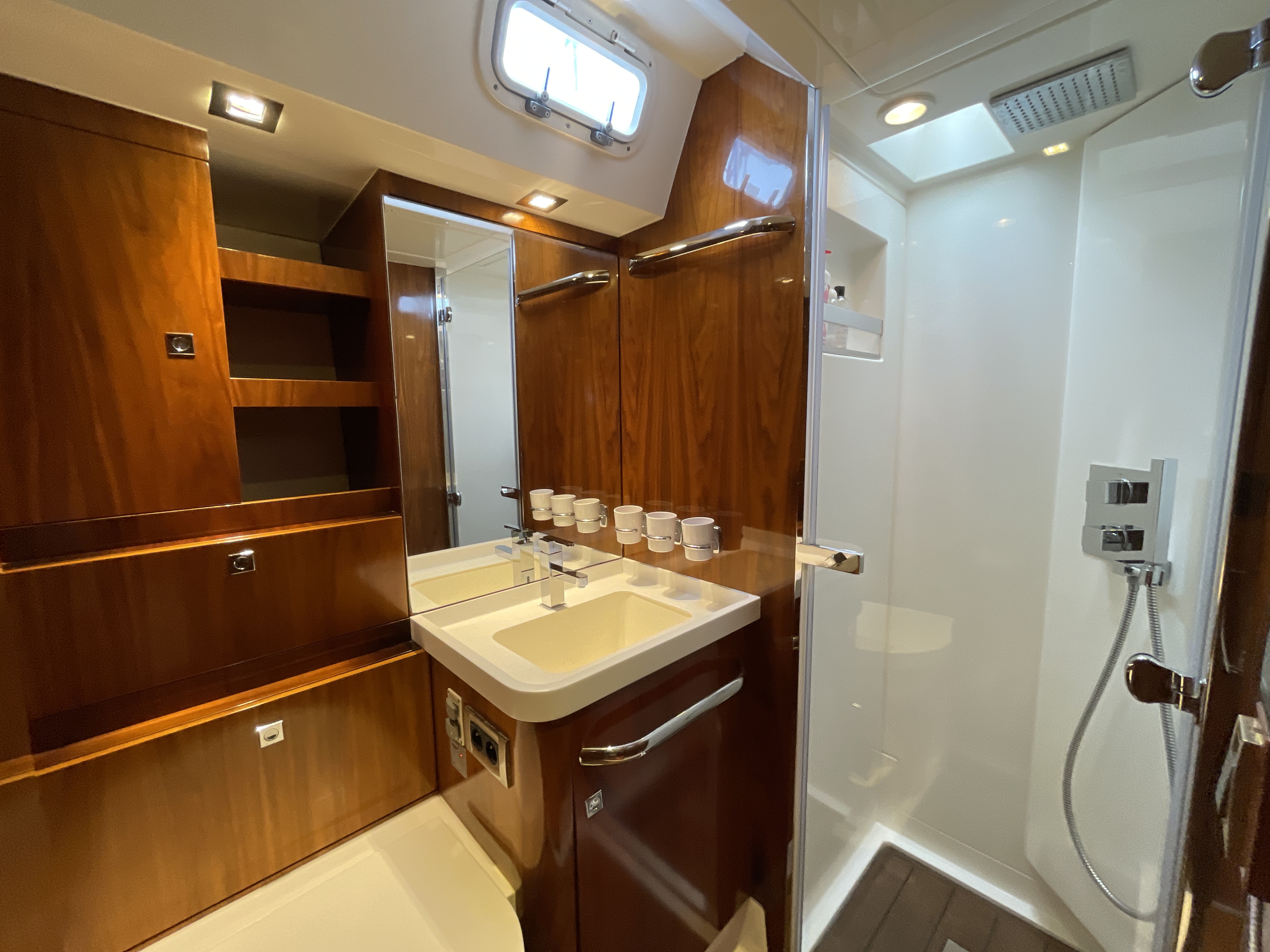 AC, Heating Webasto, Garage, dinghy & HB, Swimming plateform, Bow and Stern Thruster, 240 L H Watermaker instead 150 LH, Recent batteries and upgraded for electrical system (charger, inverter) two mooring with two windlass, full electronics, full set of sails in good condition including Gennaker, full set of covers and sun covers, sun matress, cushions in good shape etc.