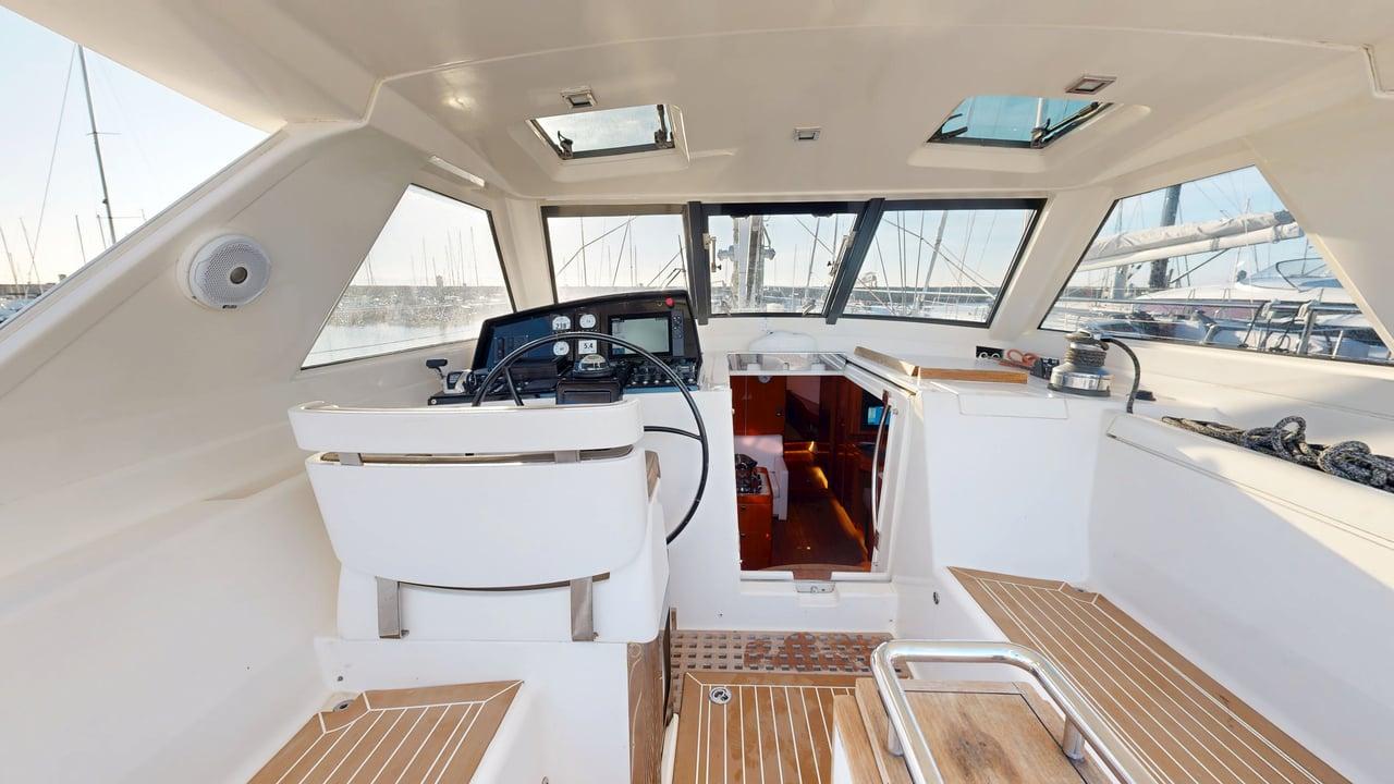 Miscellaneous: Cockpit cushions 2023, custom sun cushions for the aft deck 2023, forward cushions 2023, port and starboard sun covers for the cockpit, bimini from hard top to mast, vertical awnings aft of the helm station, sun cover under the mizzen boom, covers for the cockpit console, helm station and winches, cockpit table in teak with cover from 2024, stainless steel and Corian redone in 2024, with stainless steel handrail and cooler in the center, numerous lockers and storage spaces in the cockpit, windshield wiper replaced every year, 1 Highfield dinghy with aluminum bottom CL290 from 2023 + Honda 20CV 2023, garage for dinghy with winch, hydraulic platform serviced in 2023.
