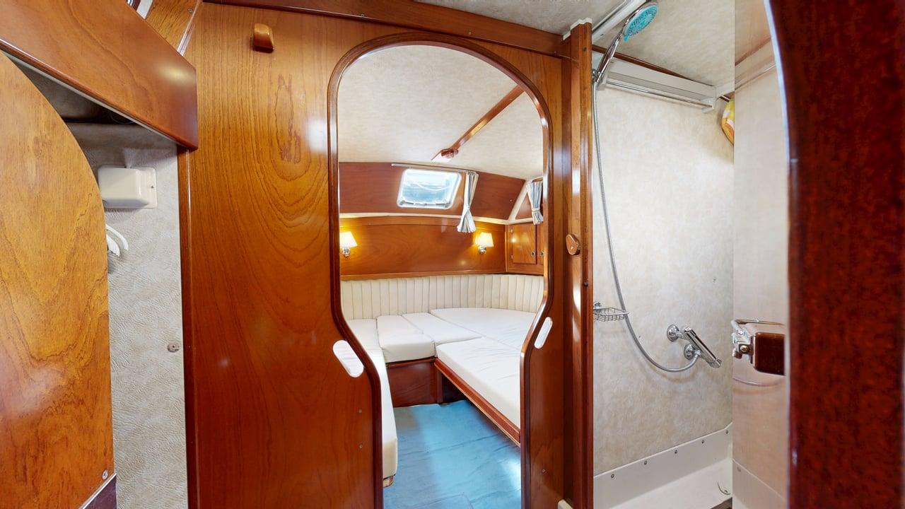 Aft head: electric toilet, macerator replaced in 2025, valve, washbasin, shower and mirror.