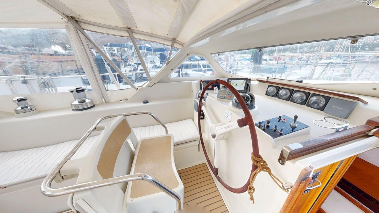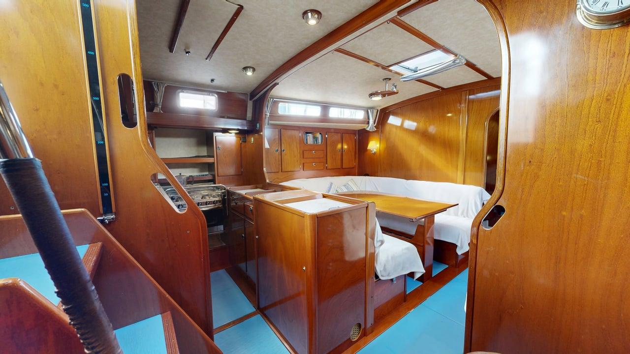 Aft cabin: double bed + single berth, table, safe, air-conditioning.