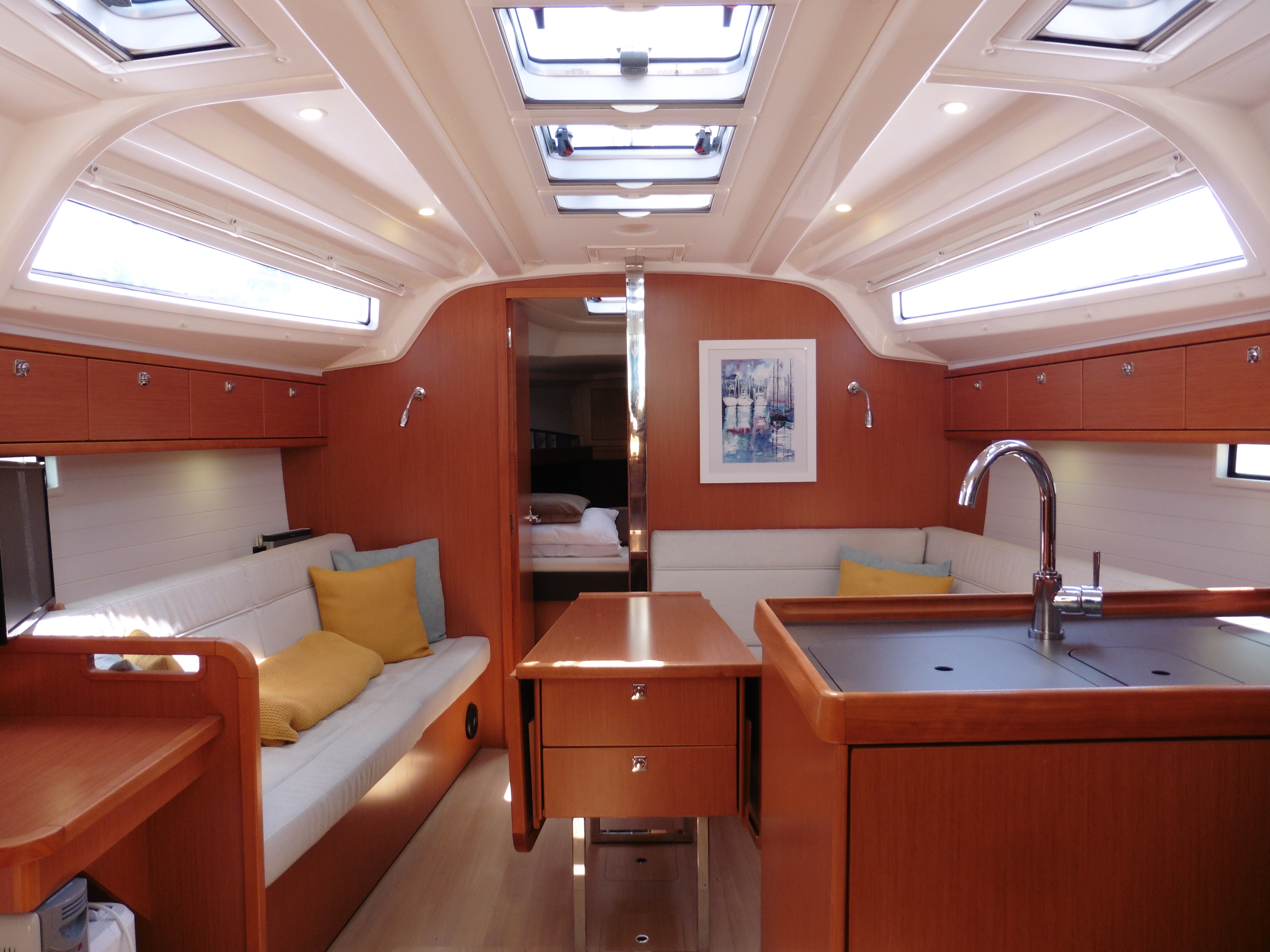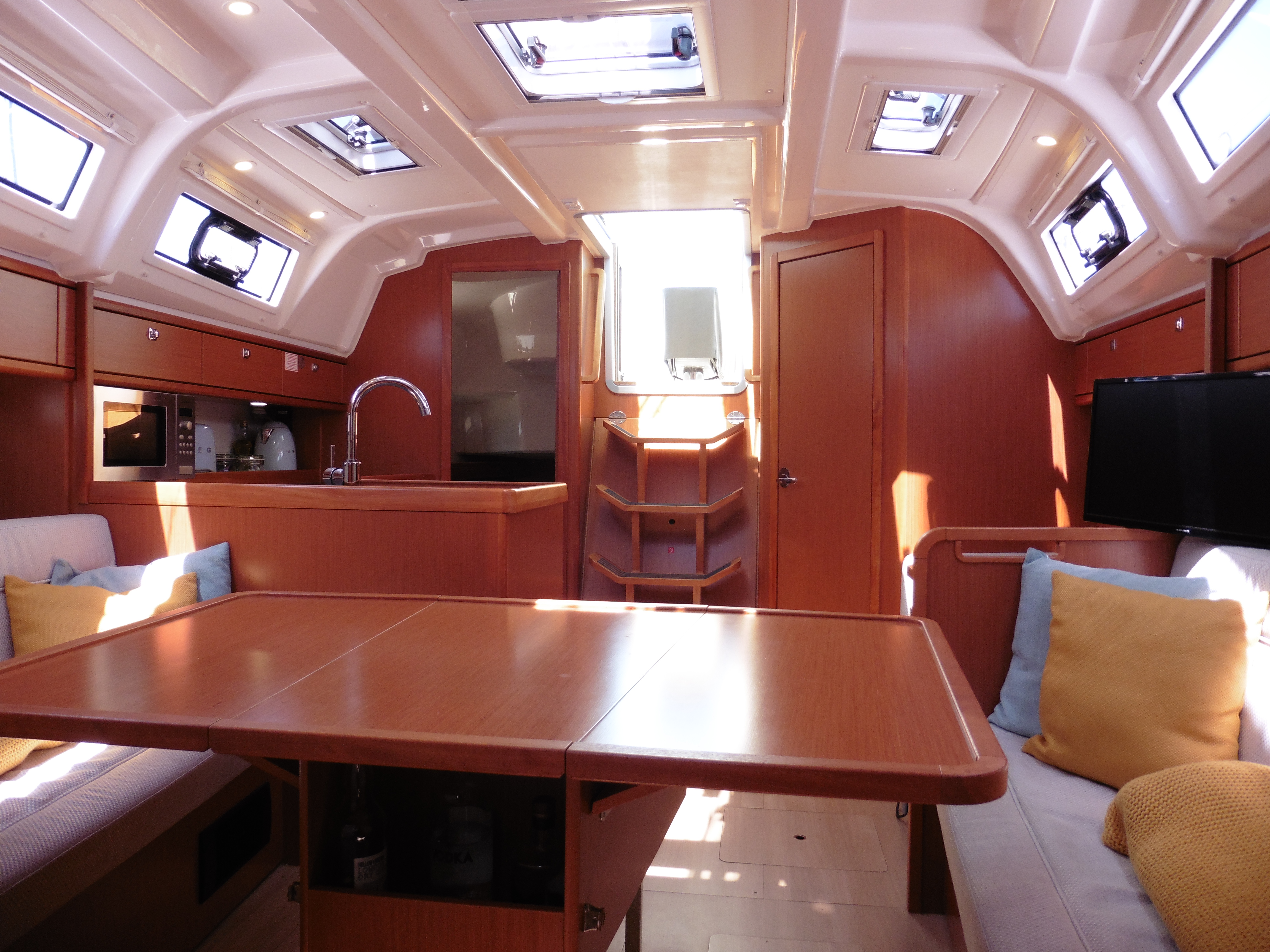 A 2014 Bavaria 37 Cruiser that presents well. The hull came from the design boards of Farr and as a replacement for the 36 new features include twin helms, new deck and cockpit layout and greater natural light inside with hull windows and deck hatches. Finished in mahogany joinery and cream upholstery this gives a contemporary feel to the interior, 2 cabins and a large heads complement the spacious saloon. There is a sprayhood and bimini protecting the cockpit with large table and easy access to the bathing platform. A bow thruster and Garmin electronics complete the package creating a boat that is ideal for short handed sailing or with a small family.
