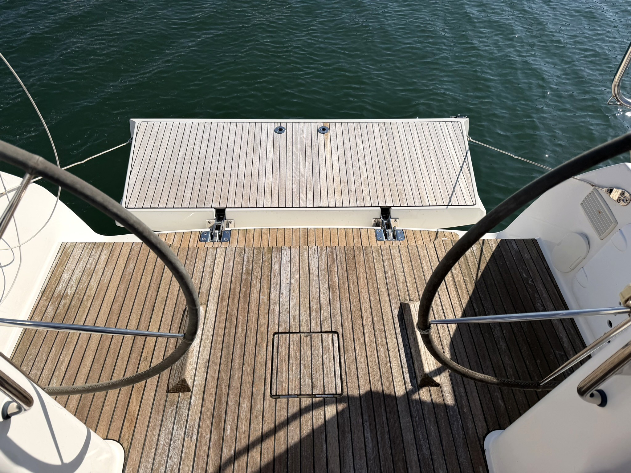 Teak laid dropdown bathing platform
