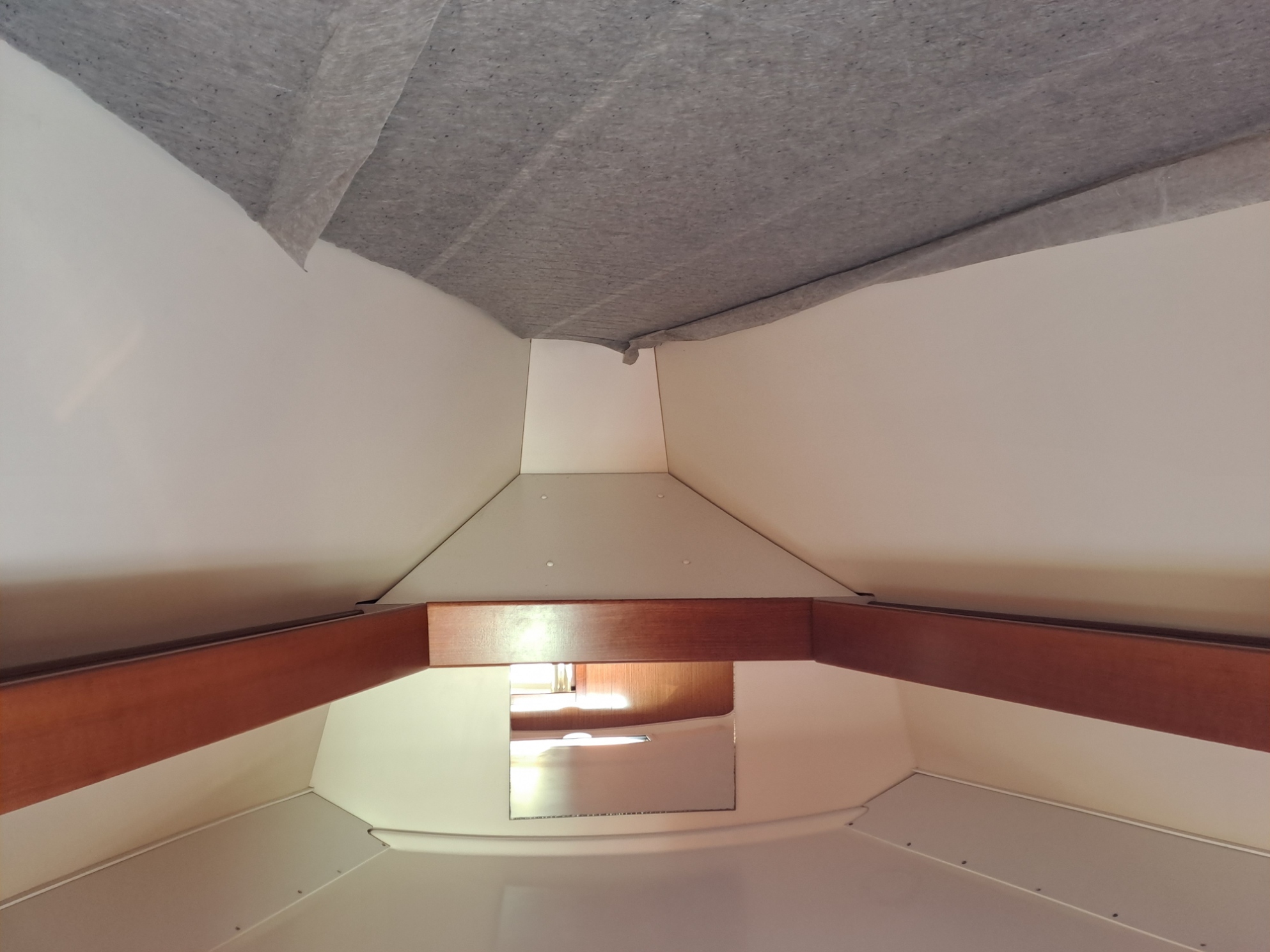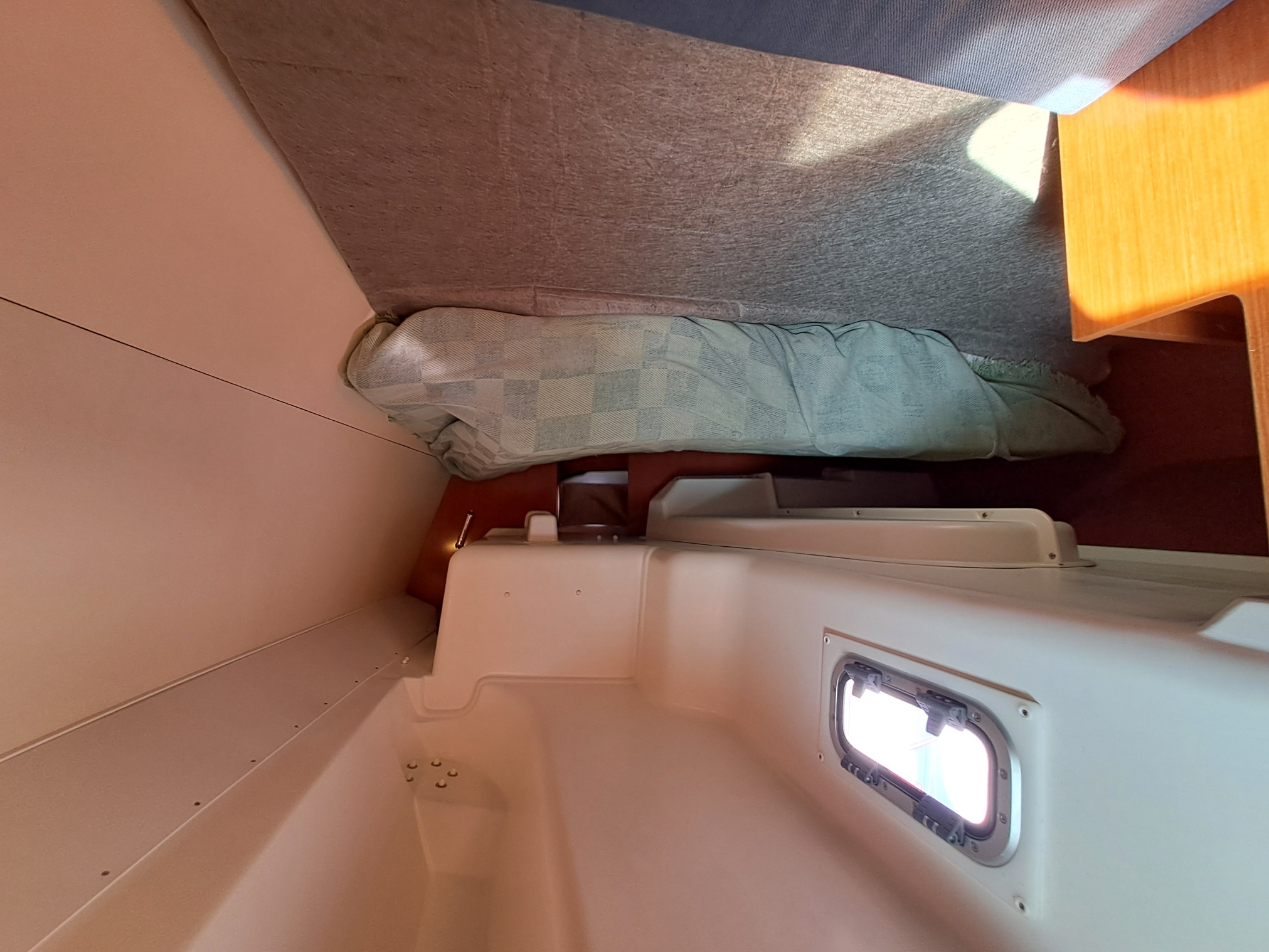 Forecabin with central double berth, hanging locker, shelves and stowage under berth