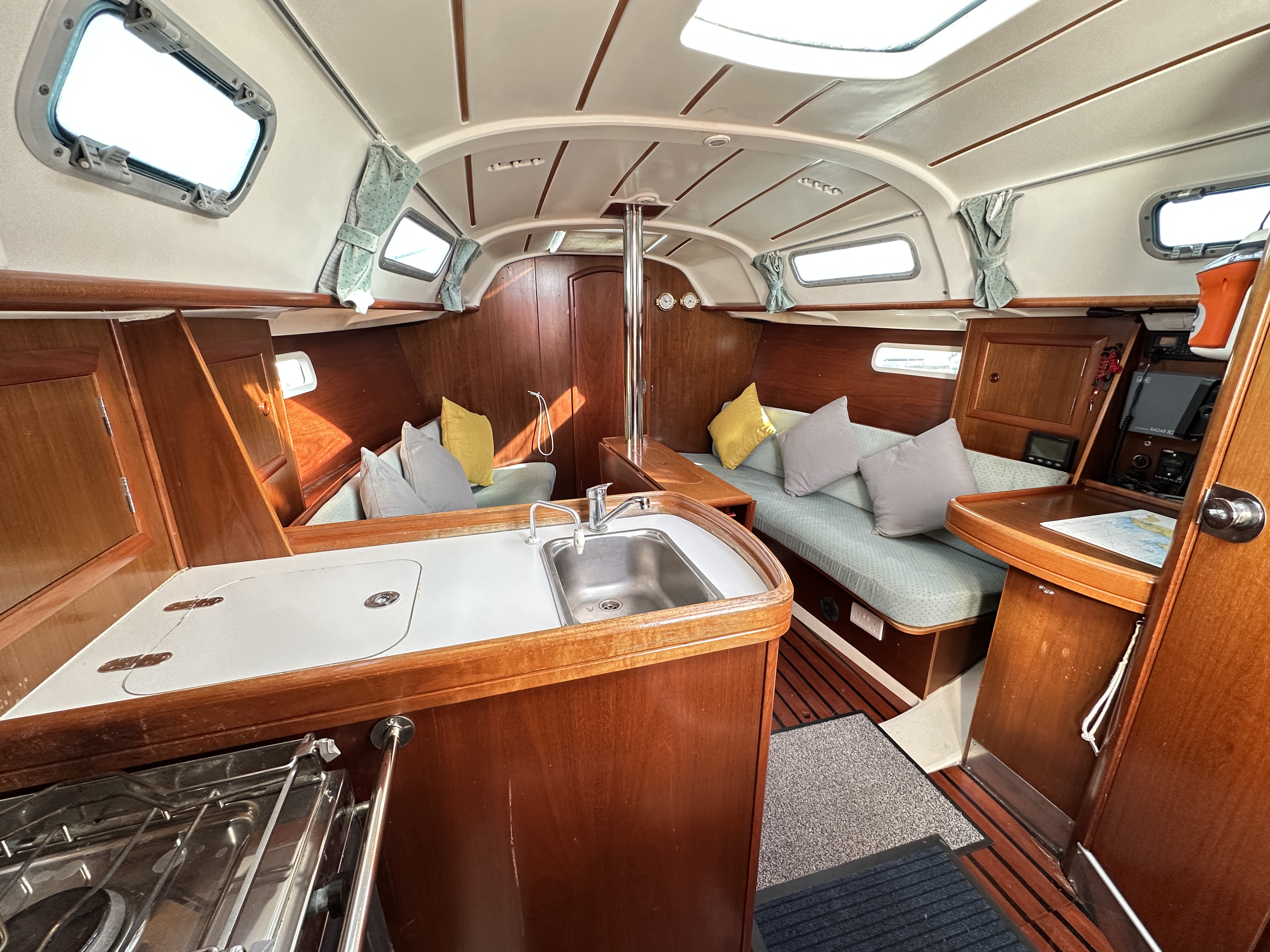 Well presented and locally owned for many years. Single line reefing with all lines led to cockpit, easy to handle single handed. Radar and chart plotter, wheel steering and auto pilot.