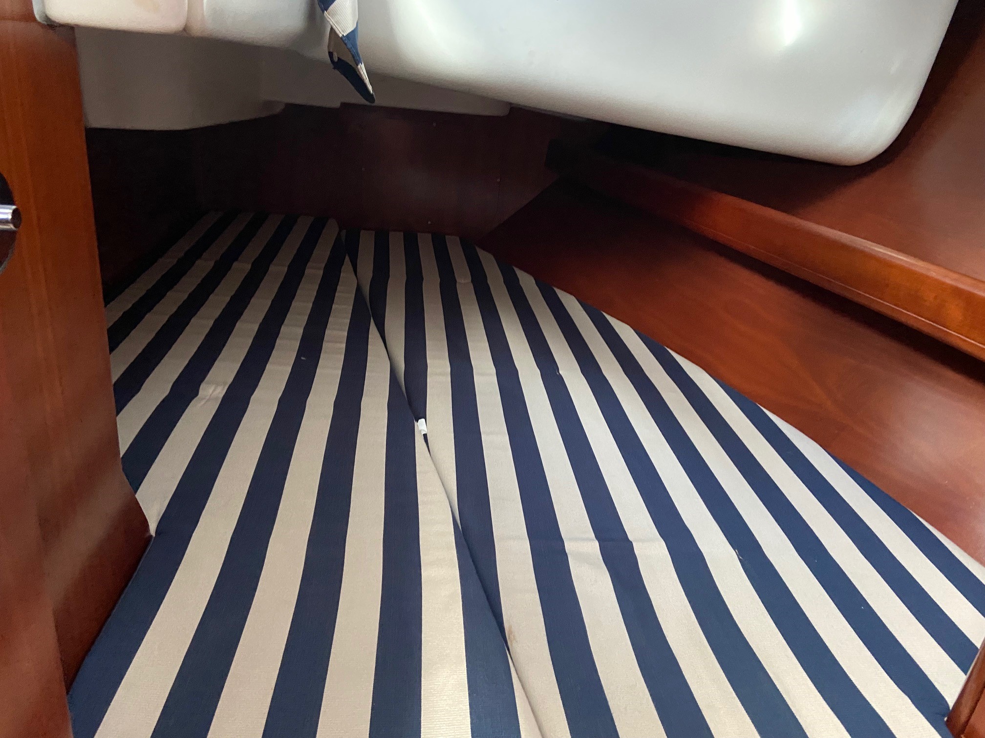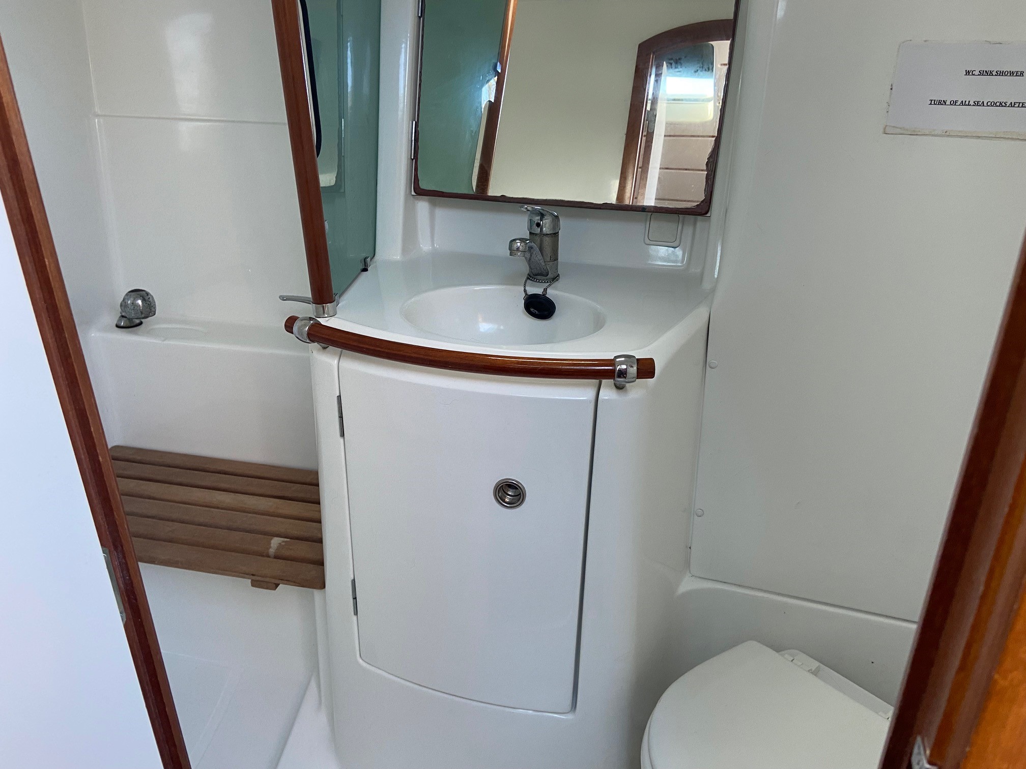 Spacious 3-cabin layout with separate heads and shower area, providing comfort for long trips.