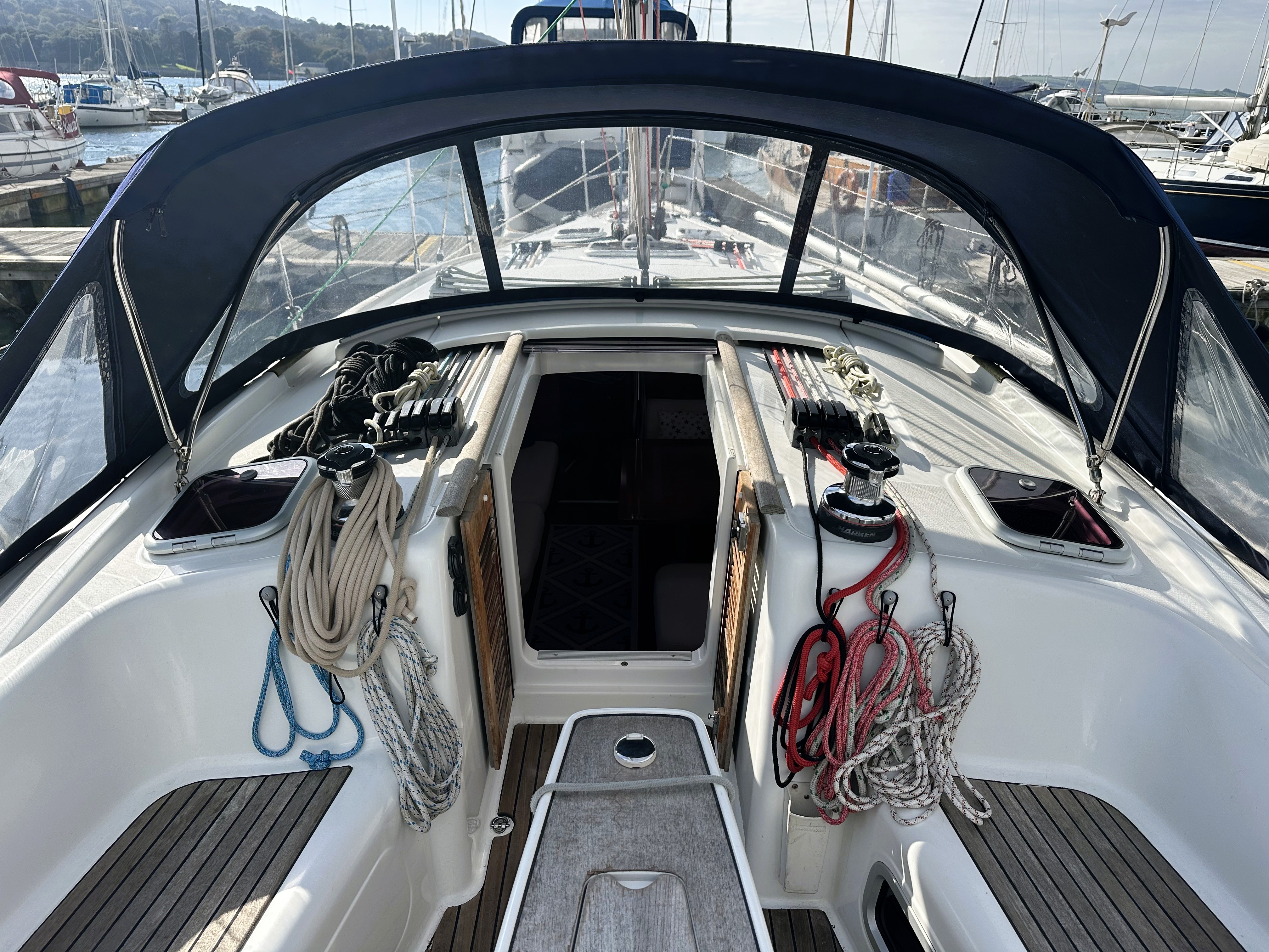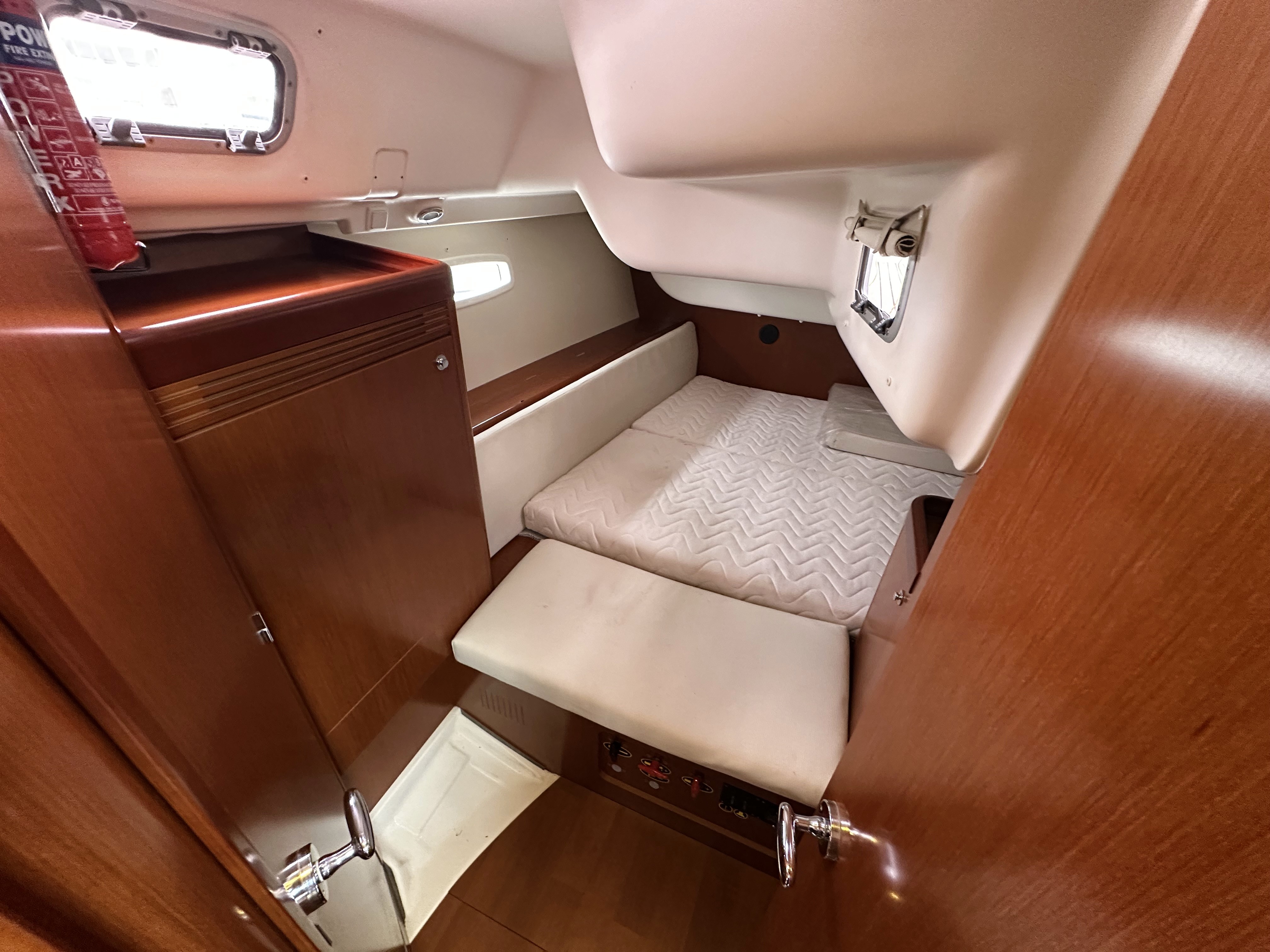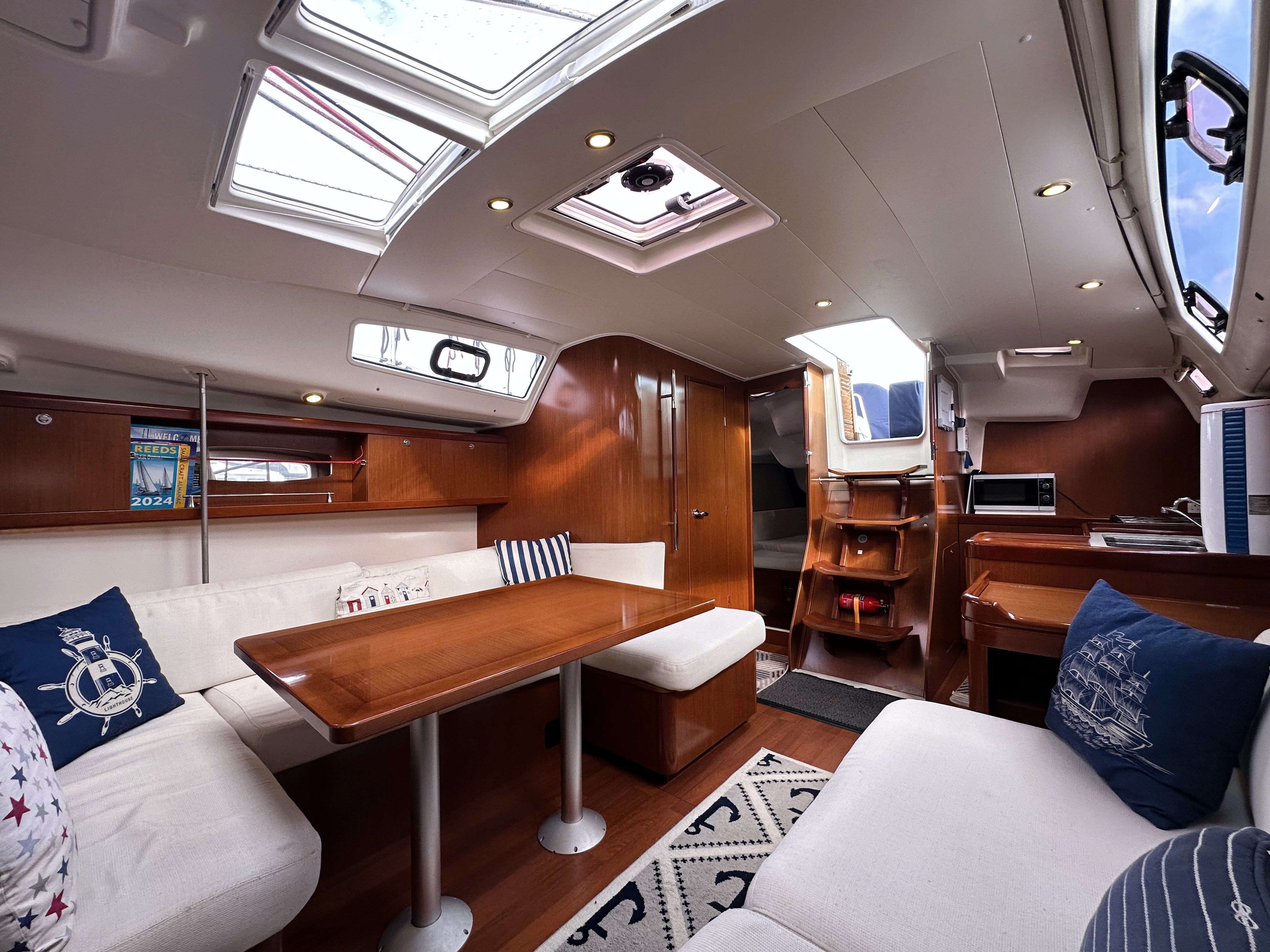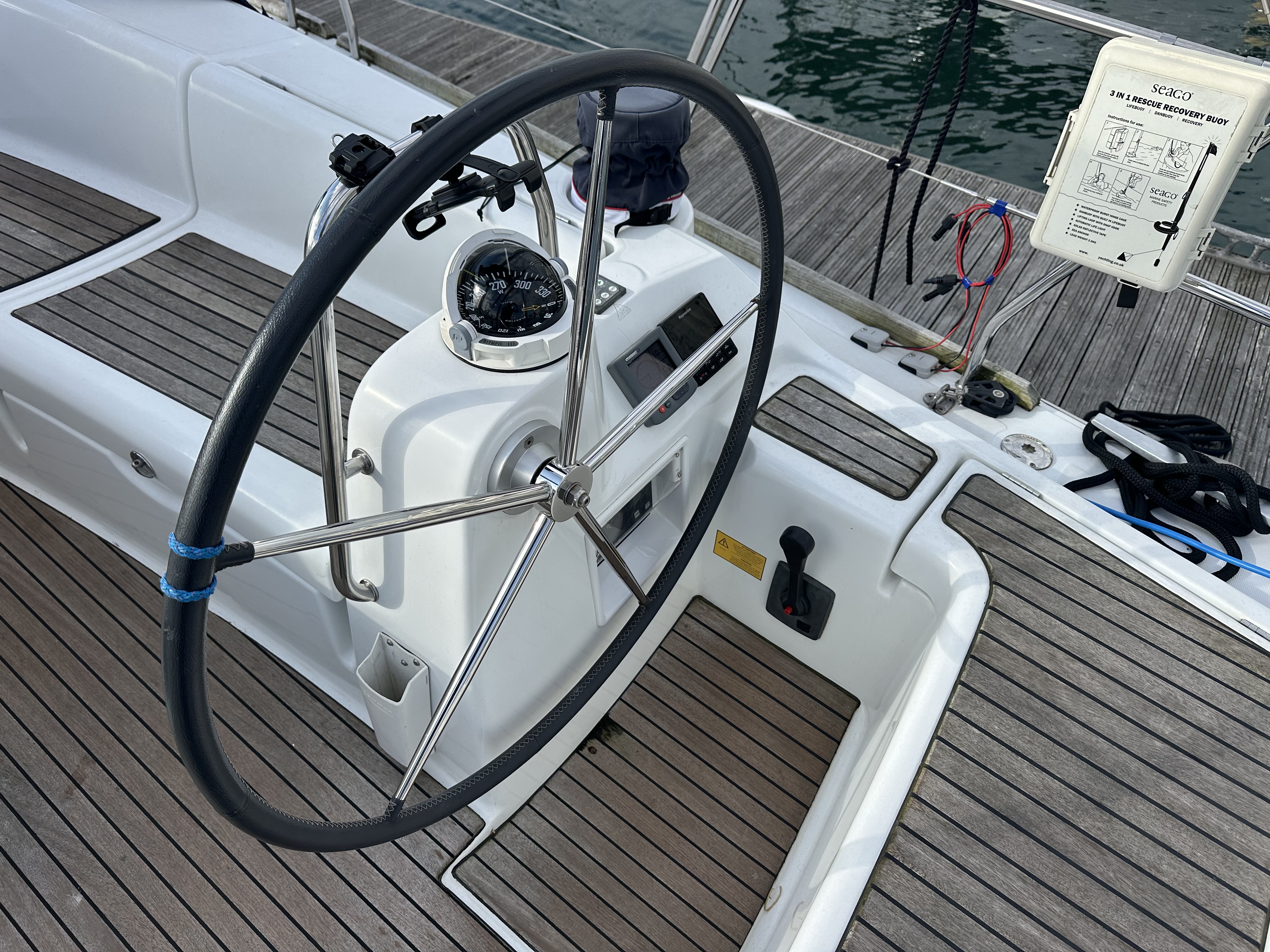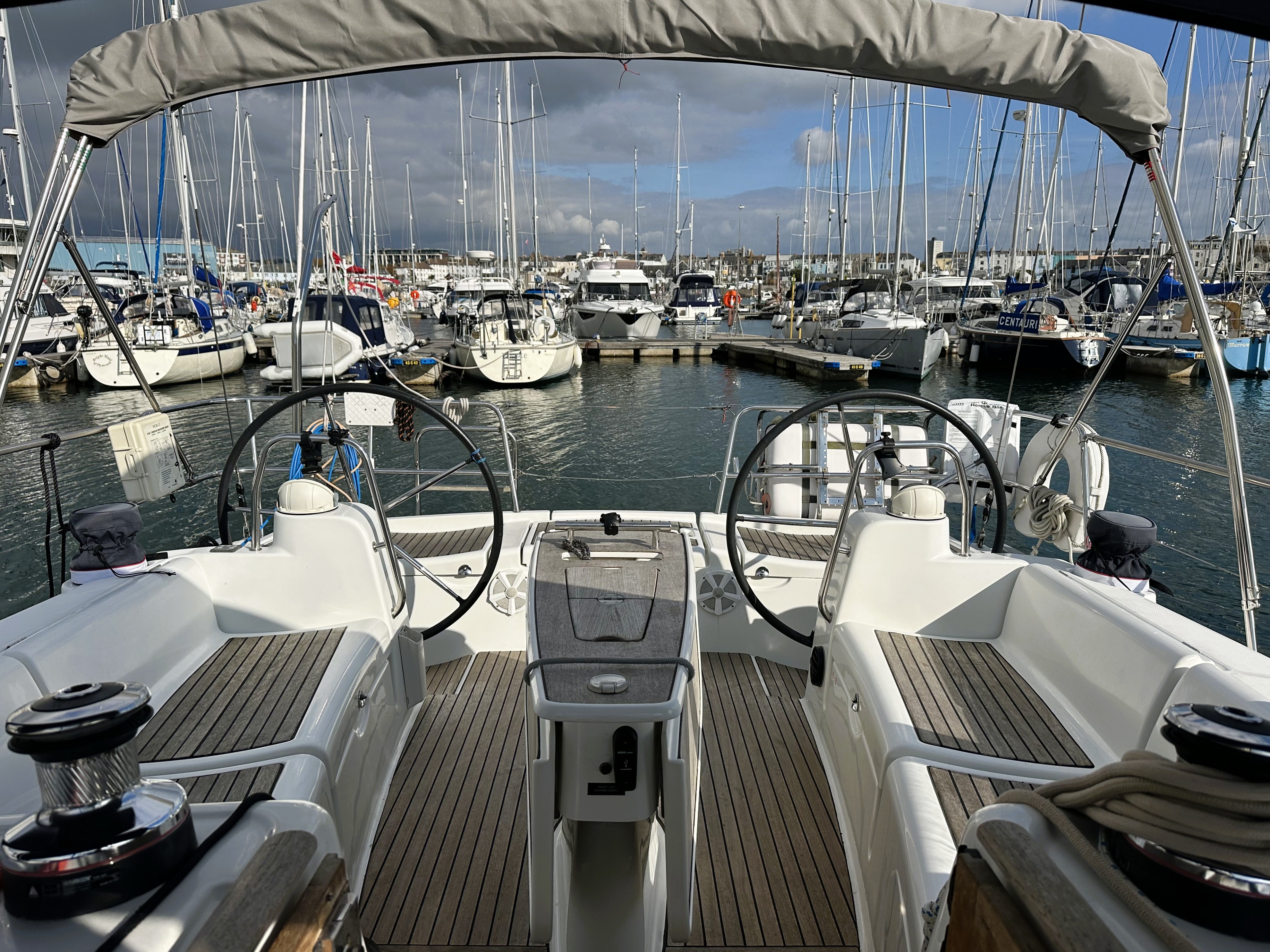 "Arya" is an 'Owner's version' (2 cabin) configured with in-mast furling mainsail and deep fin keel. 40hp Yanmar engine with circa 740 hrs. Recently set up for cruising including new standing rigging (2025), largely renewed running rigging (2025), AIS (2023), autopilot (2025), stainless-steel bowsprit (2024), downwind pole for chute and genoa (2025), Marship "Diesel Dipper" (2025), solar installation and inverter. Her spacious accommodation above and below decks offers comfortable cruising with a particularly sizeable aft cabin, saloon / galley, and very large lazarette. Her extensive inventory includes a cruising chute on carbon furler, bow thruster, two Raymarine C90W colour chartplotters, radar, Eberspacher cabin heating, bimini, Darglow three-bladed folding prop & HydroAxe rope cutter, electric windlass, liferaft, EPIRB, Fusion stereo, holding tank and more. Professionally polished and antifouled annually.