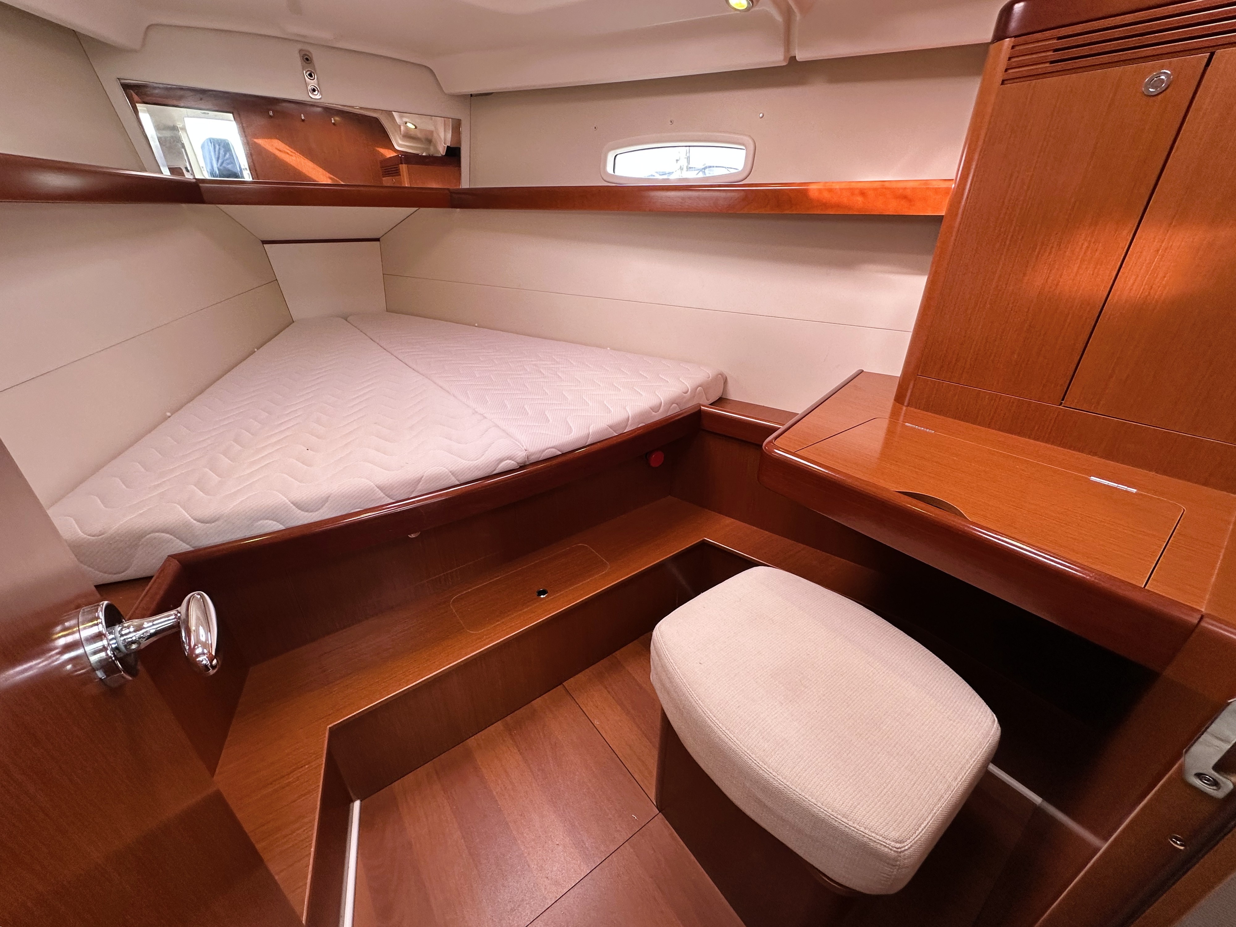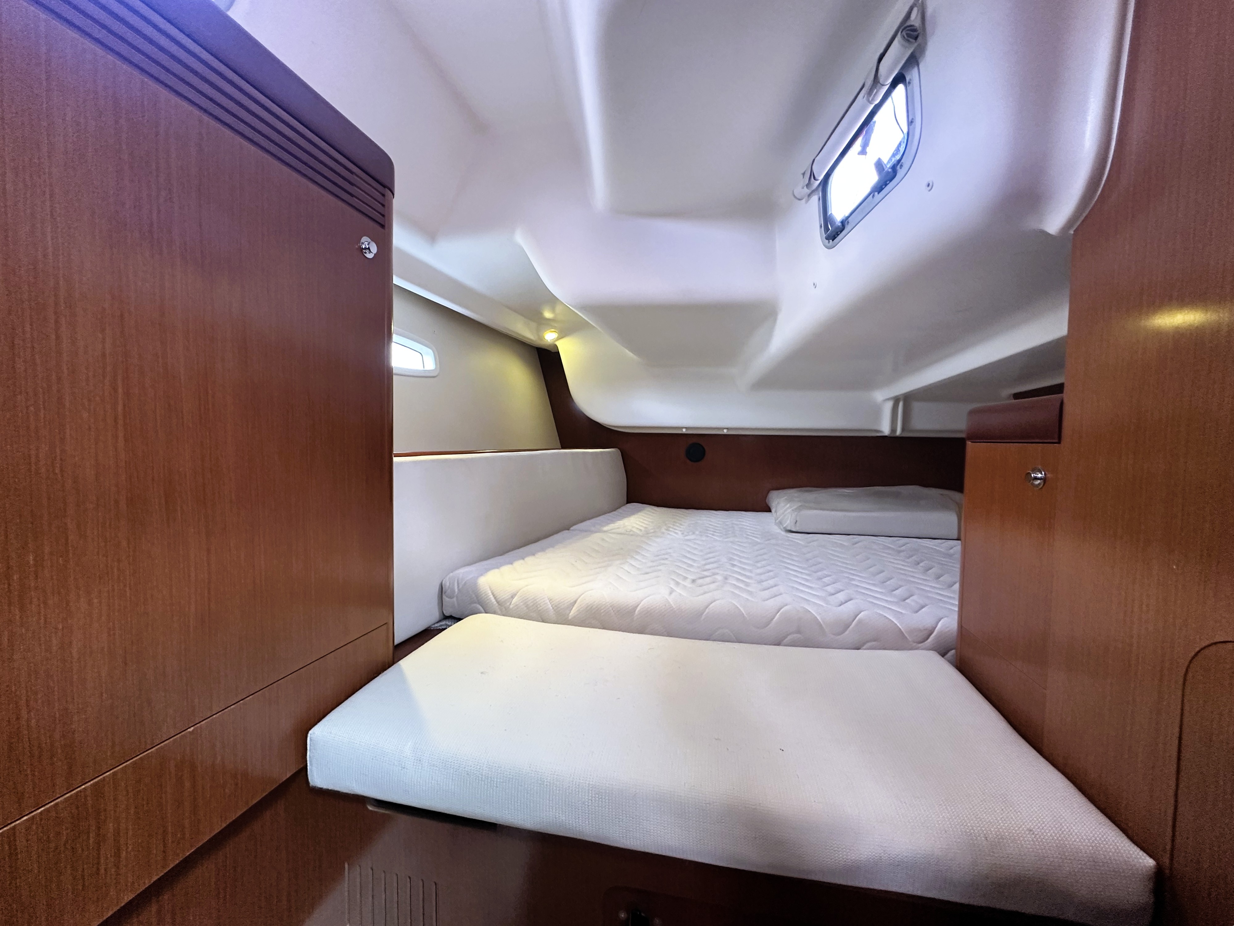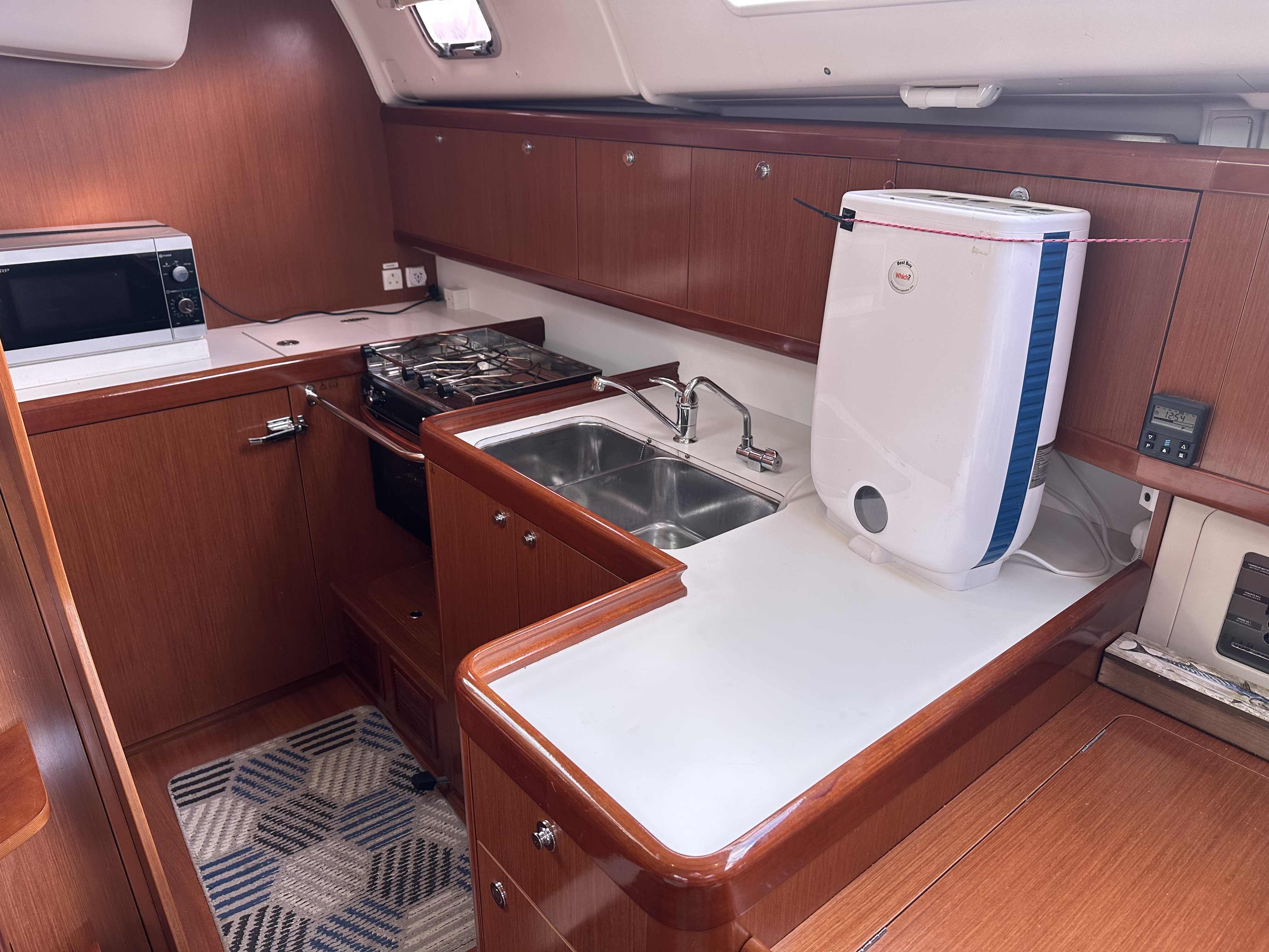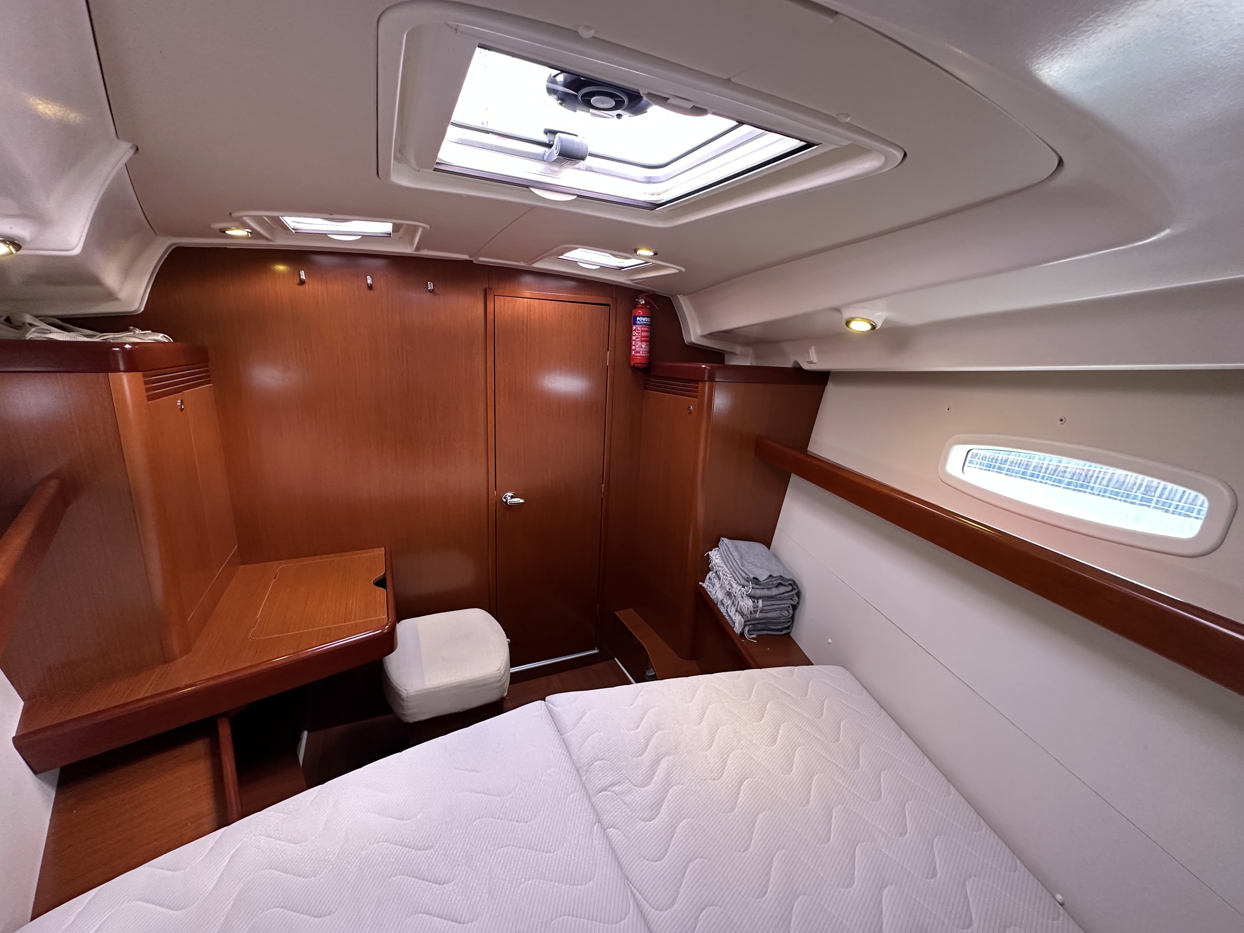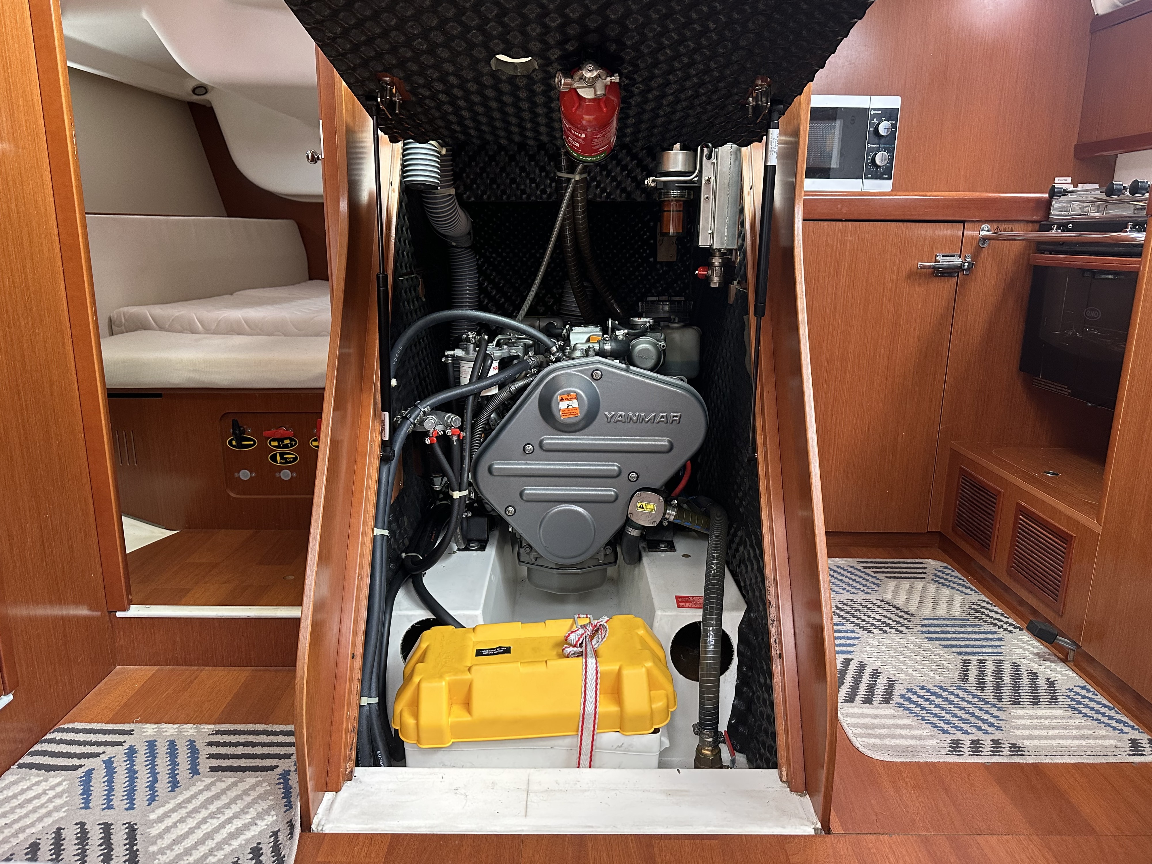 "Arya" is an 'Owner's version' (2 cabin) configured with in-mast furling mainsail and deep fin keel. 40hp Yanmar engine with circa 740 hrs. Recently set up for cruising including new standing rigging (2025), largely renewed running rigging (2025), AIS (2023), autopilot (2025), stainless-steel bowsprit (2024), downwind pole for chute and genoa (2025), Marship "Diesel Dipper" (2025), solar installation and inverter. Her spacious accommodation above and below decks offers comfortable cruising with a particularly sizeable aft cabin, saloon / galley, and very large lazarette. Her extensive inventory includes a cruising chute on carbon furler, bow thruster, two Raymarine C90W colour chartplotters, radar, Eberspacher cabin heating, bimini, Darglow three-bladed folding prop & HydroAxe rope cutter, electric windlass, liferaft, EPIRB, Fusion stereo, holding tank and more. Professionally polished and antifouled annually.