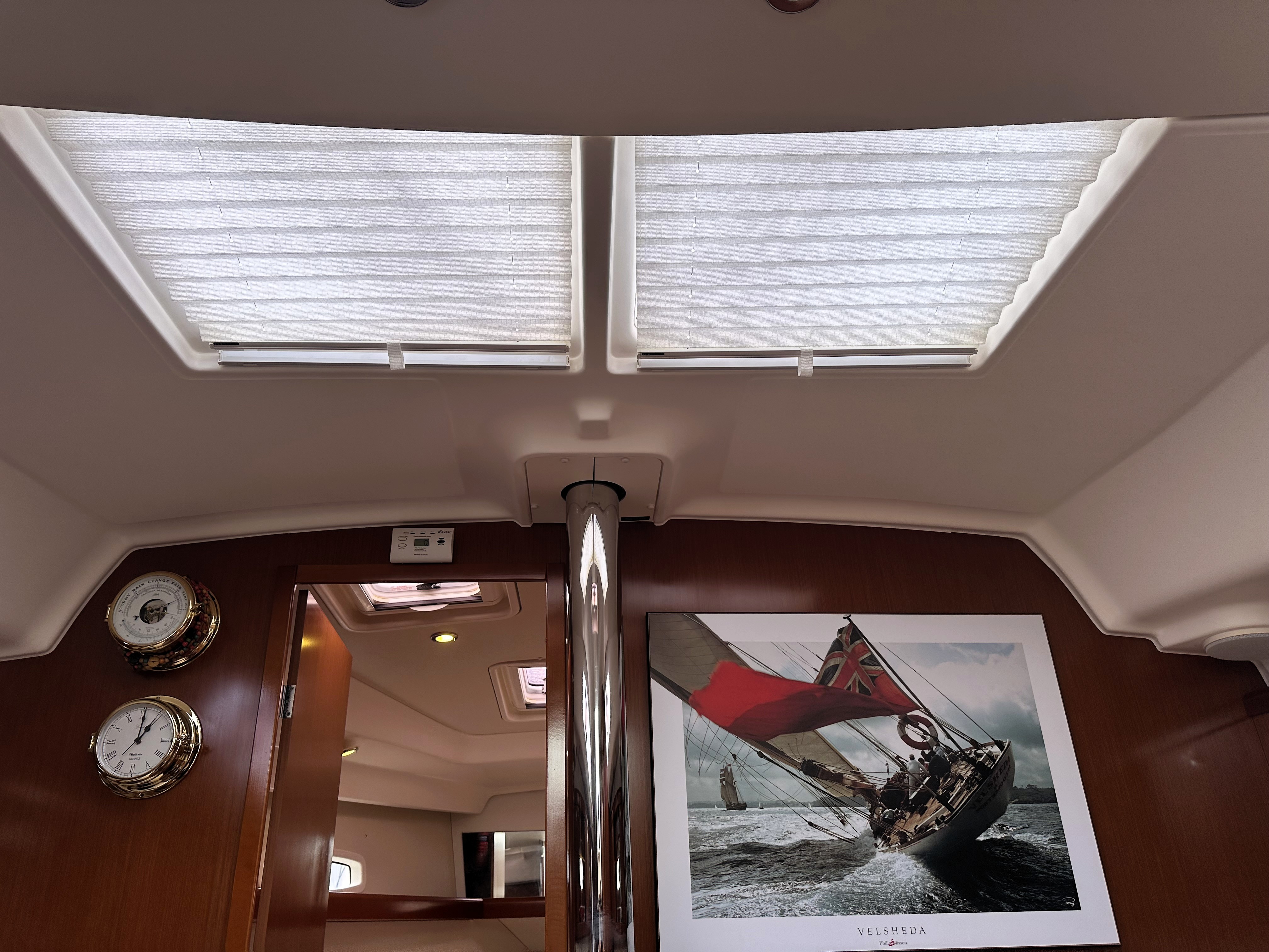 - Large coaming windows with 3x opening portlights and Oceanir blinds.
