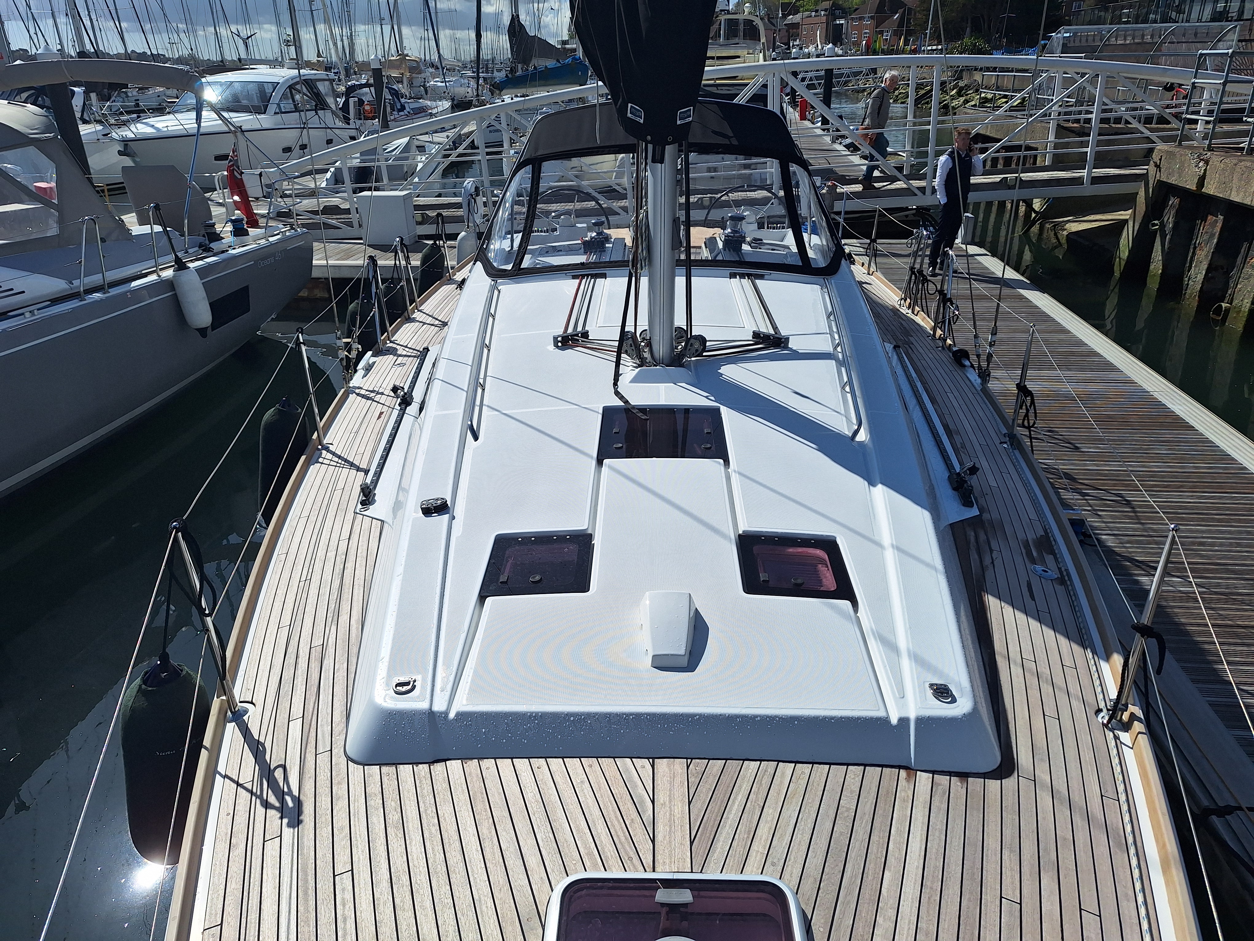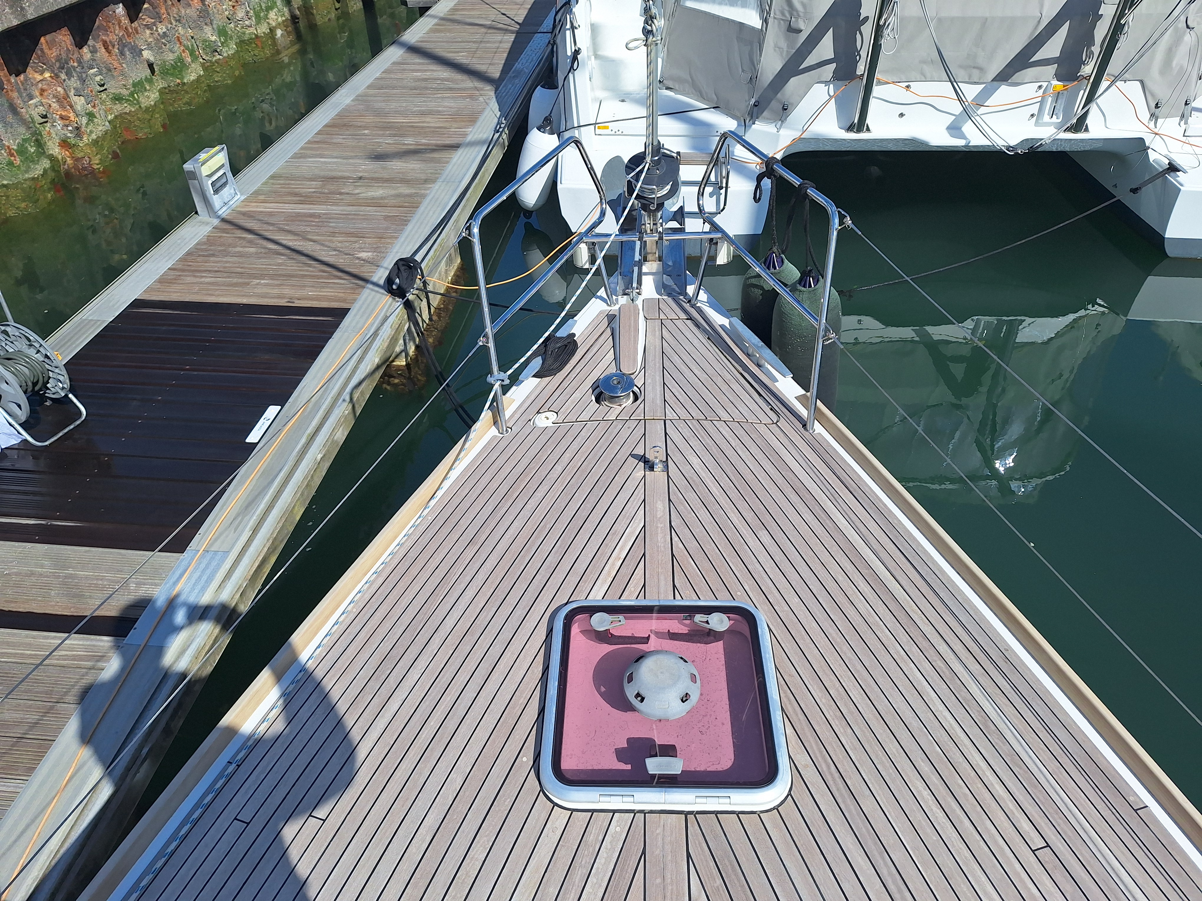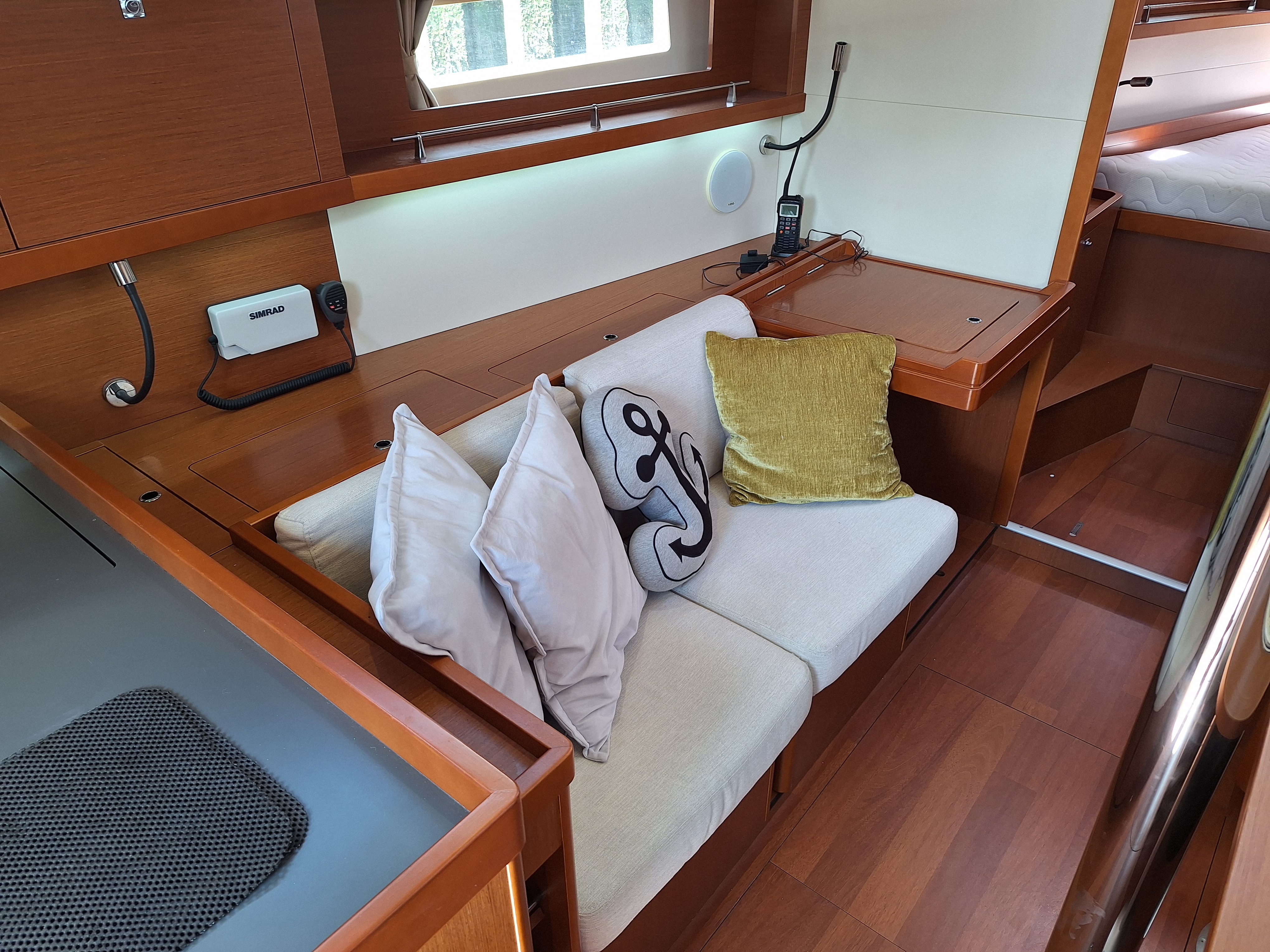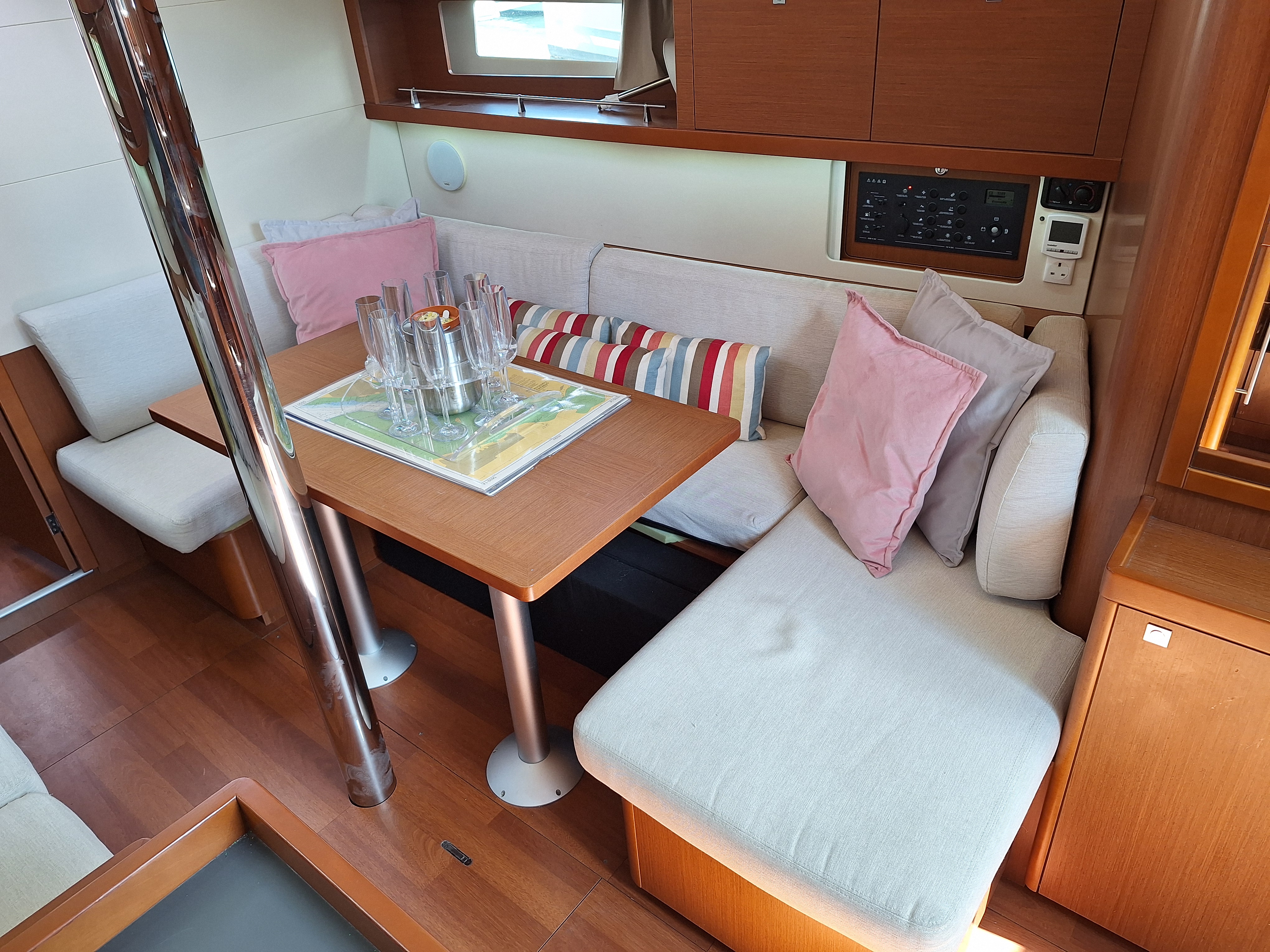 Couple this with a bowthruster, heating, electric opening transom, electric halyard winch and slab reefing mainsail and you have an excellent family cruiser which is very easy to handle.