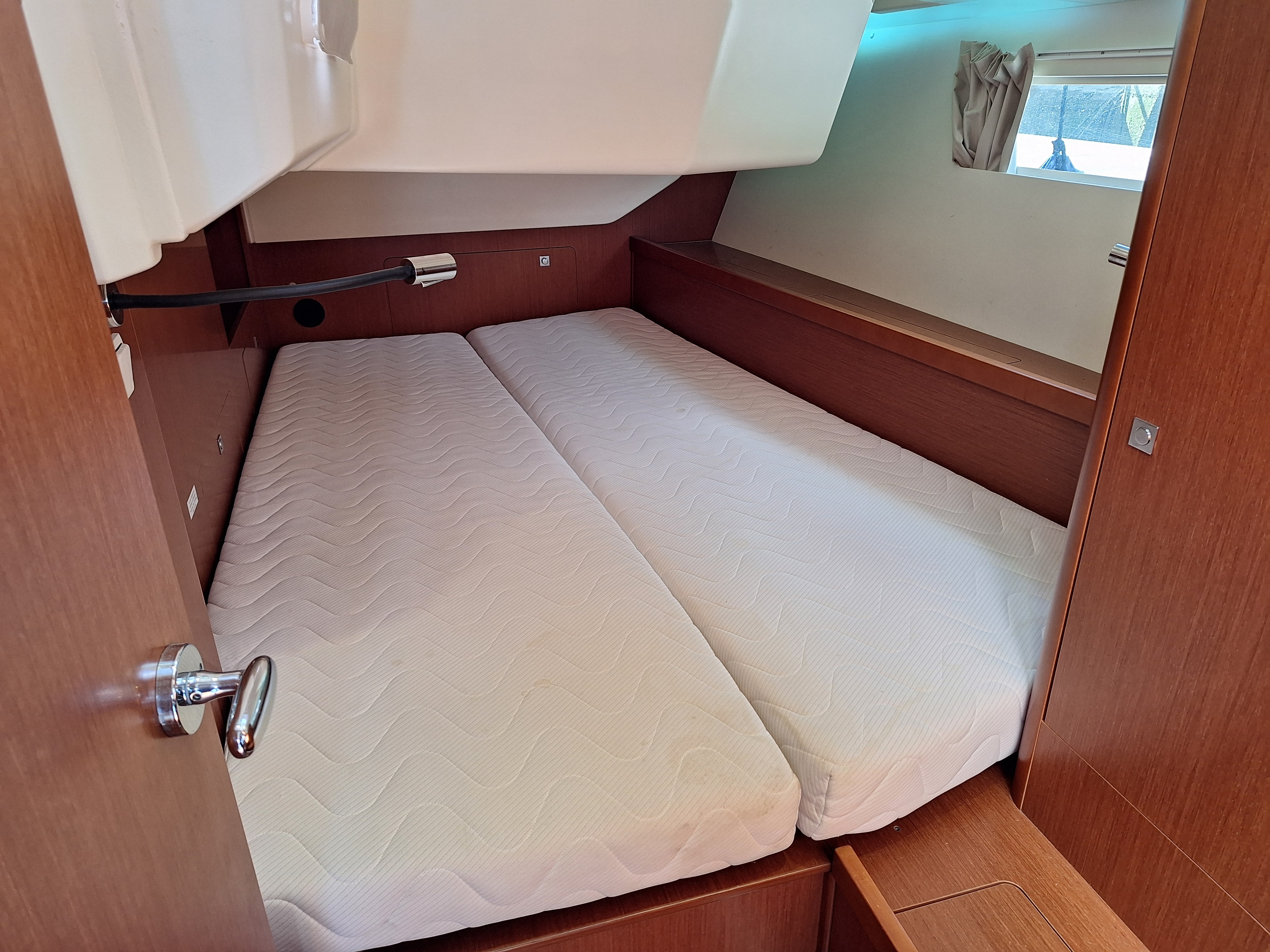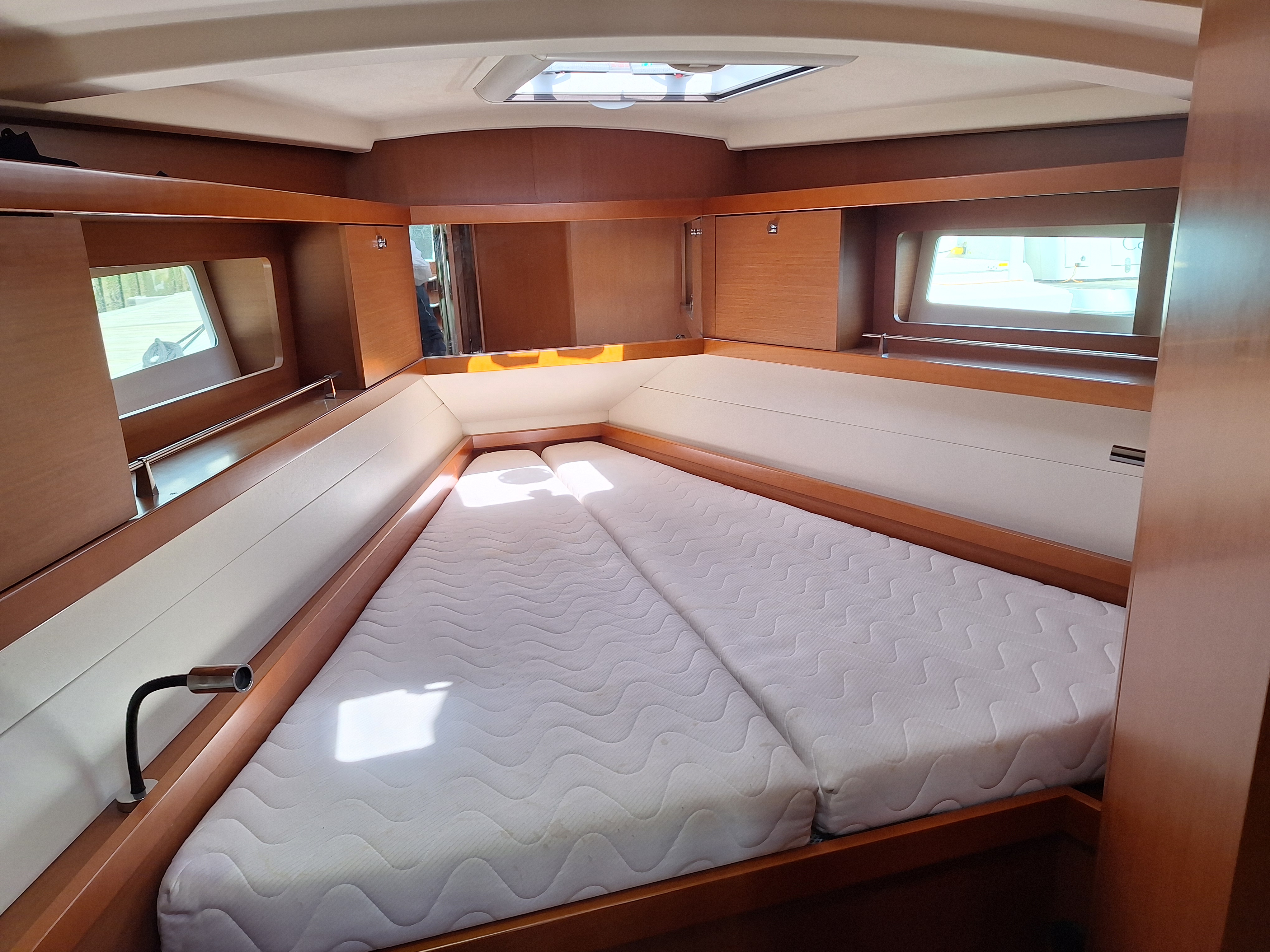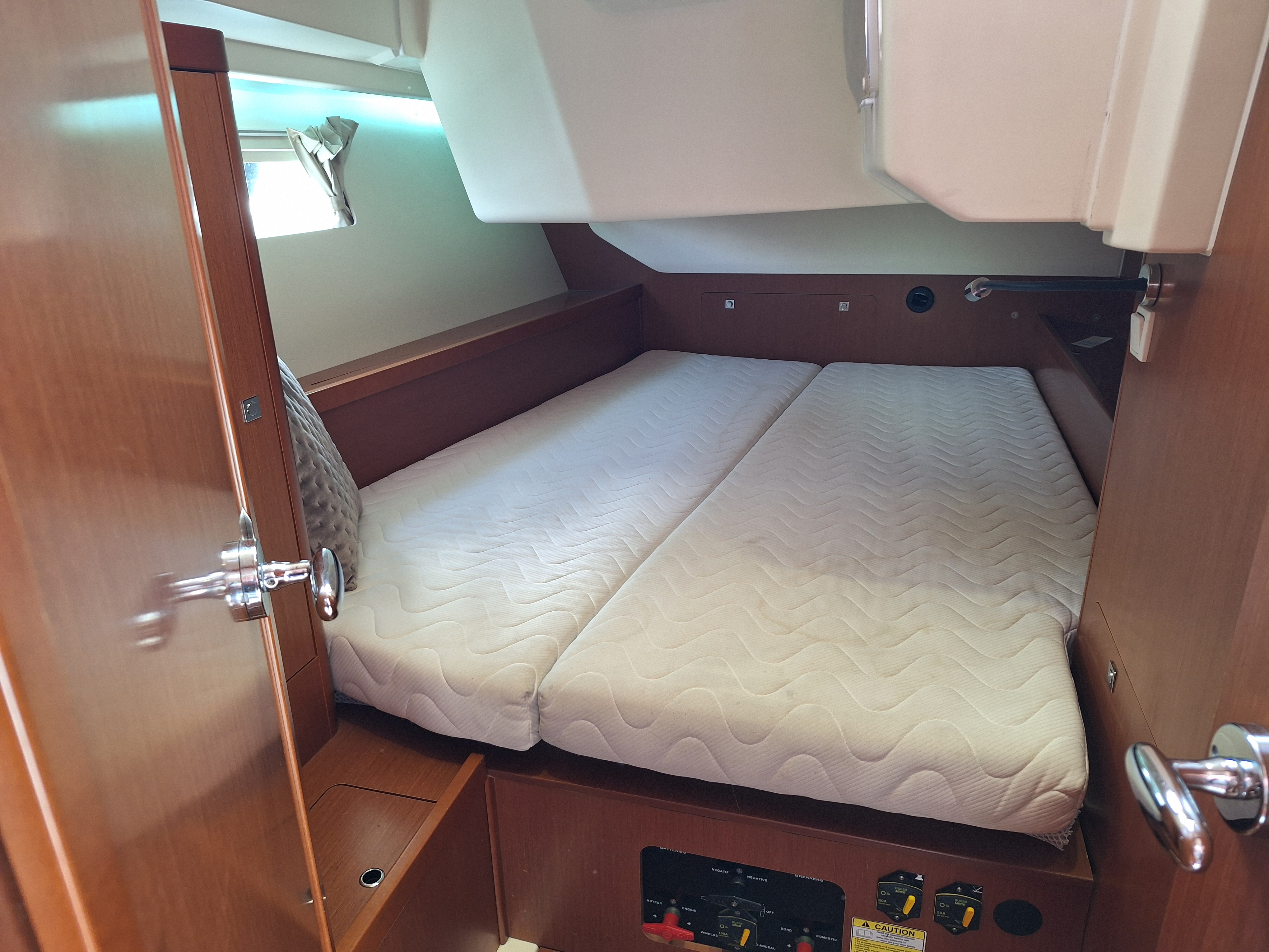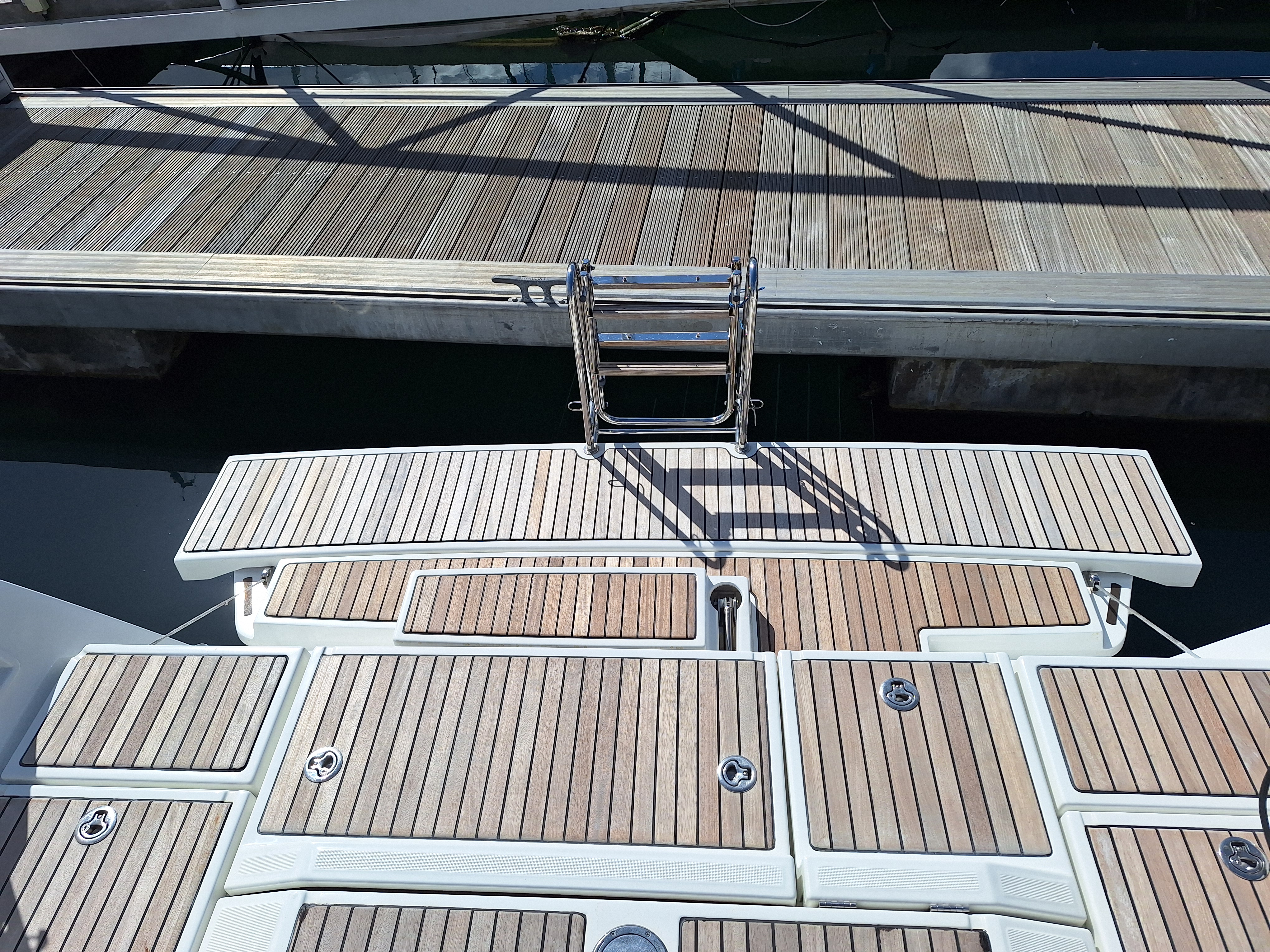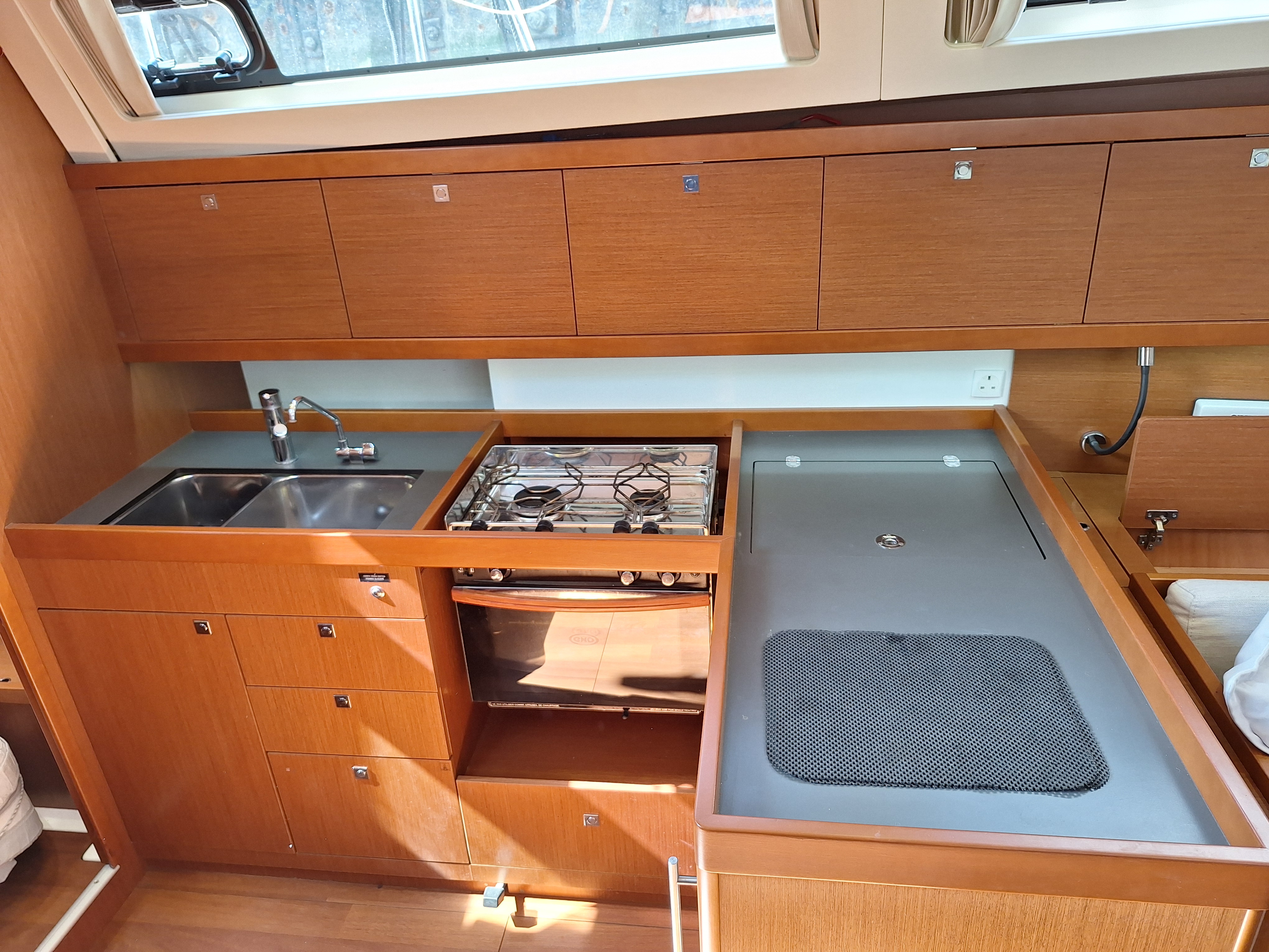 Couple this with a bowthruster, heating, electric opening transom, electric halyard winch and slab reefing mainsail and you have an excellent family cruiser which is very easy to handle.