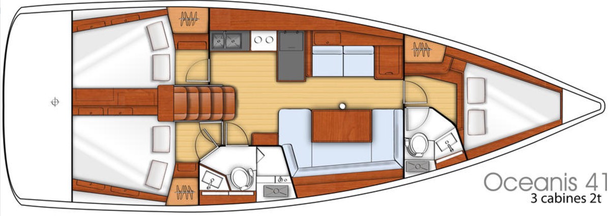 With her chined hull and mainsail arch, the Beneteau Oceanis 41 is well balanced under sail and rewarding to helm.