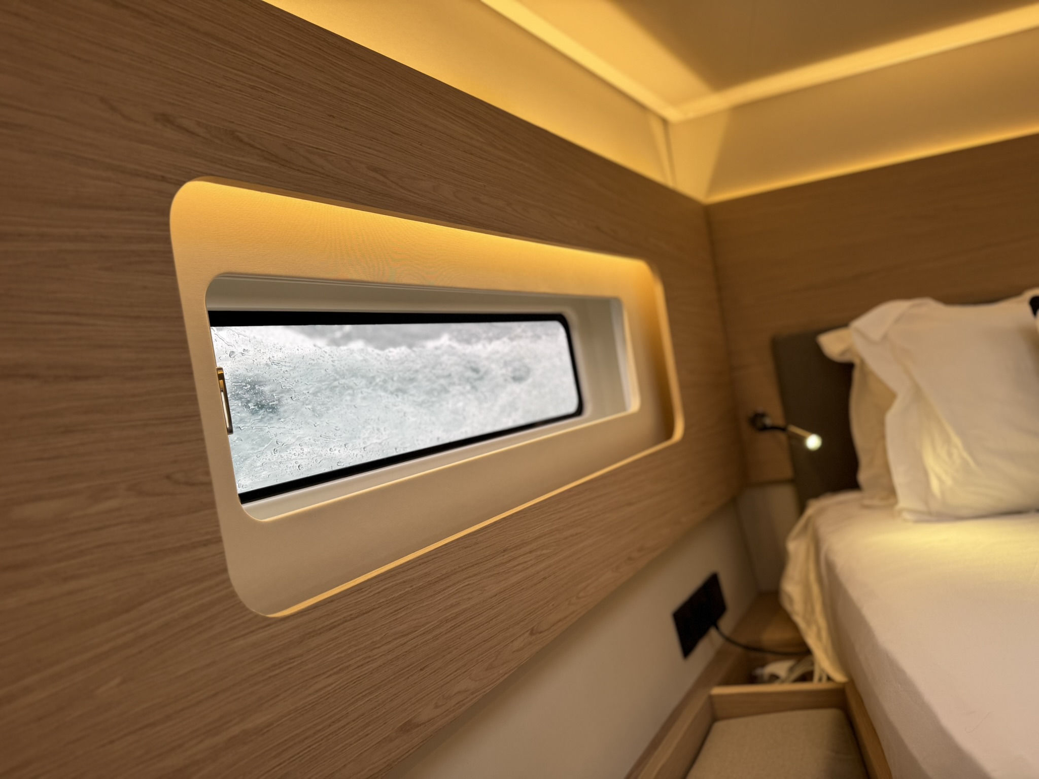 Indirect LED lighting below the bench seat and the upper part of the portholes