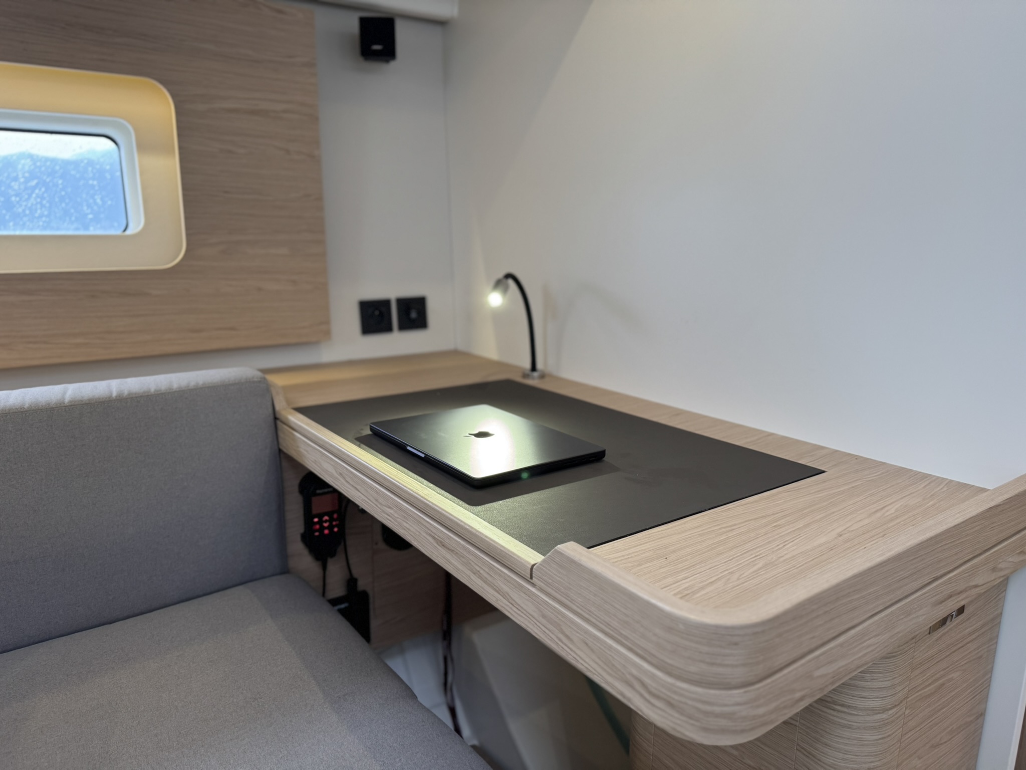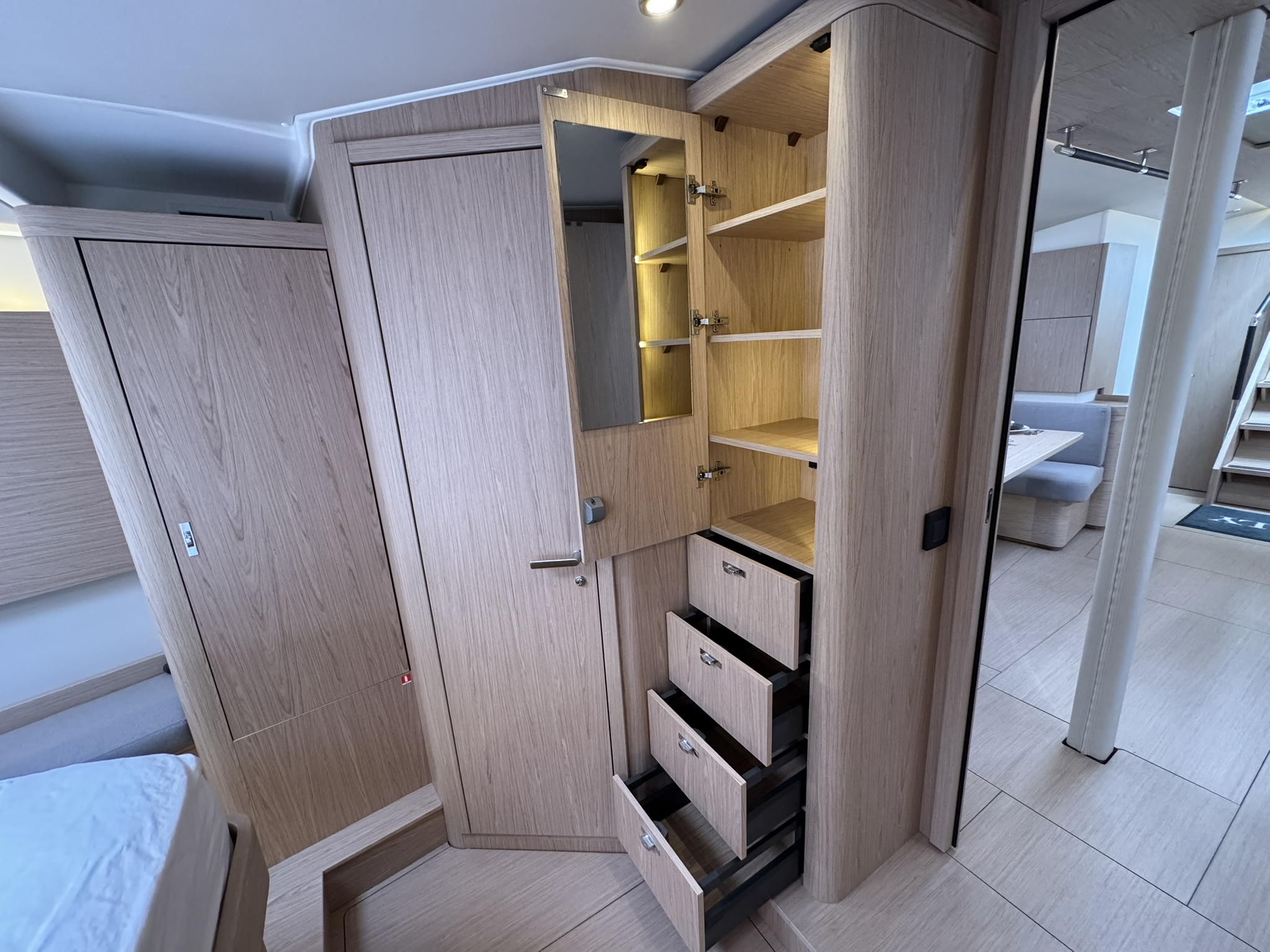 Electrical panel to starboard incorporated into a piece of furniture for access to electrical connections
