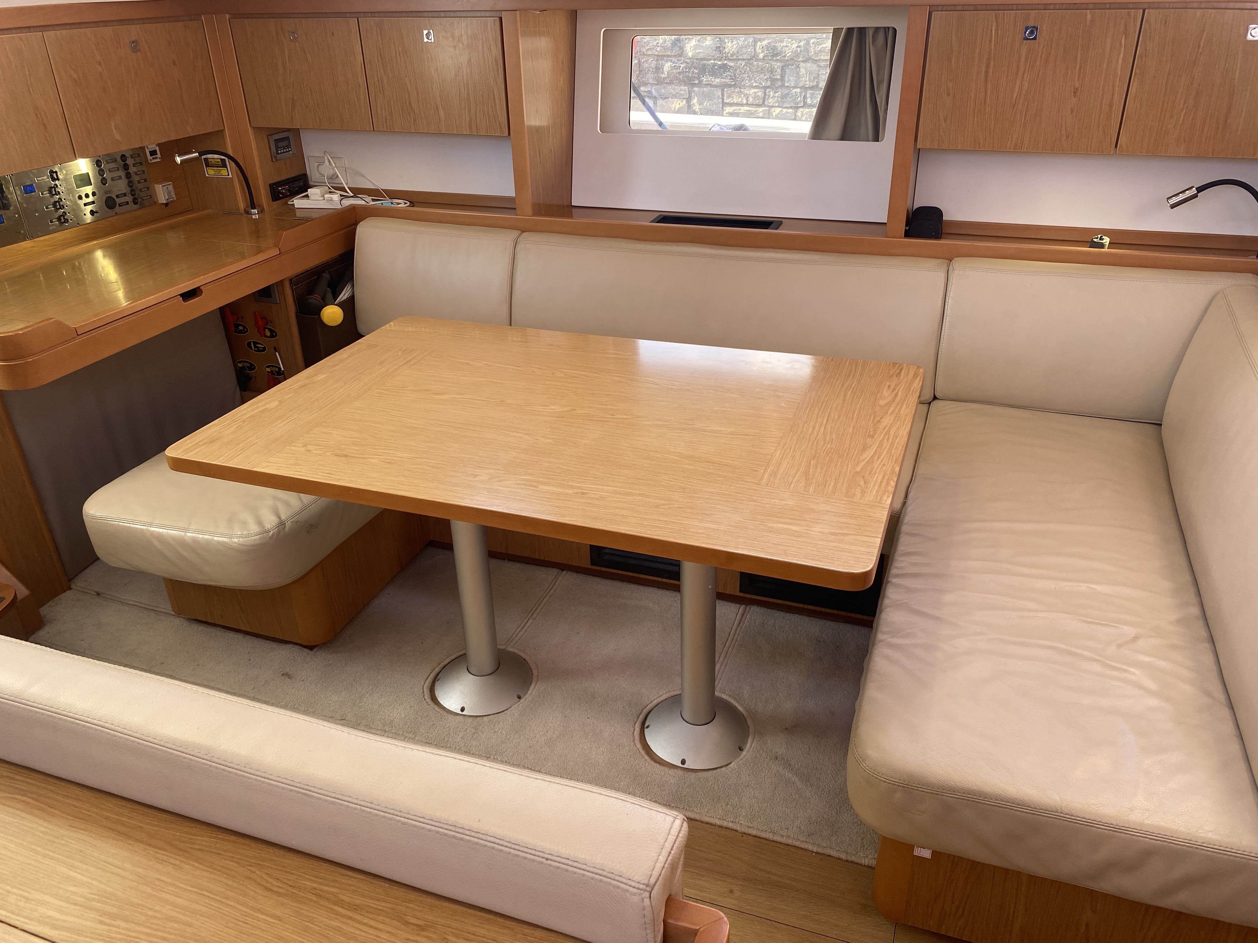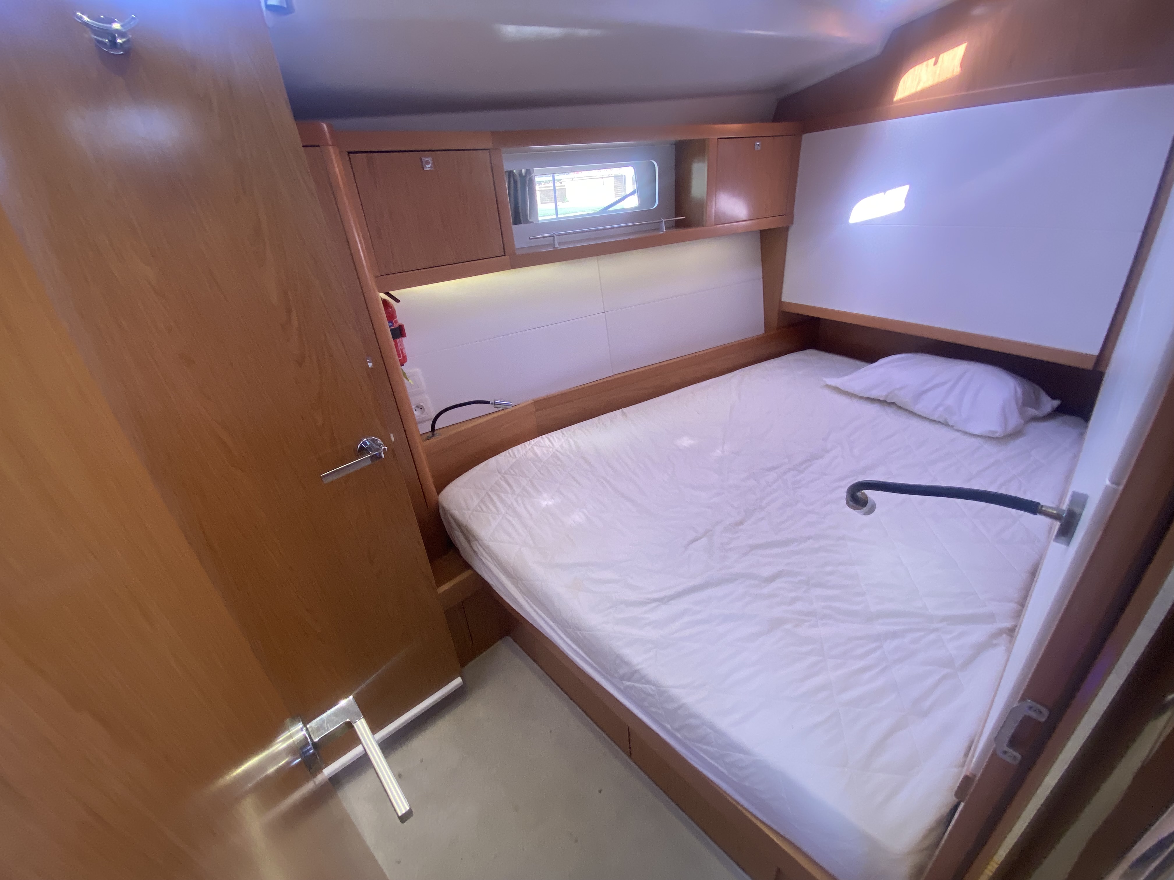 Sleeps Nine in two double cabins- forward & port, plus twin bunk cabin to starboard, plus two in saloon doble berth conversion and one in skipper cabin- access via cockpit port.