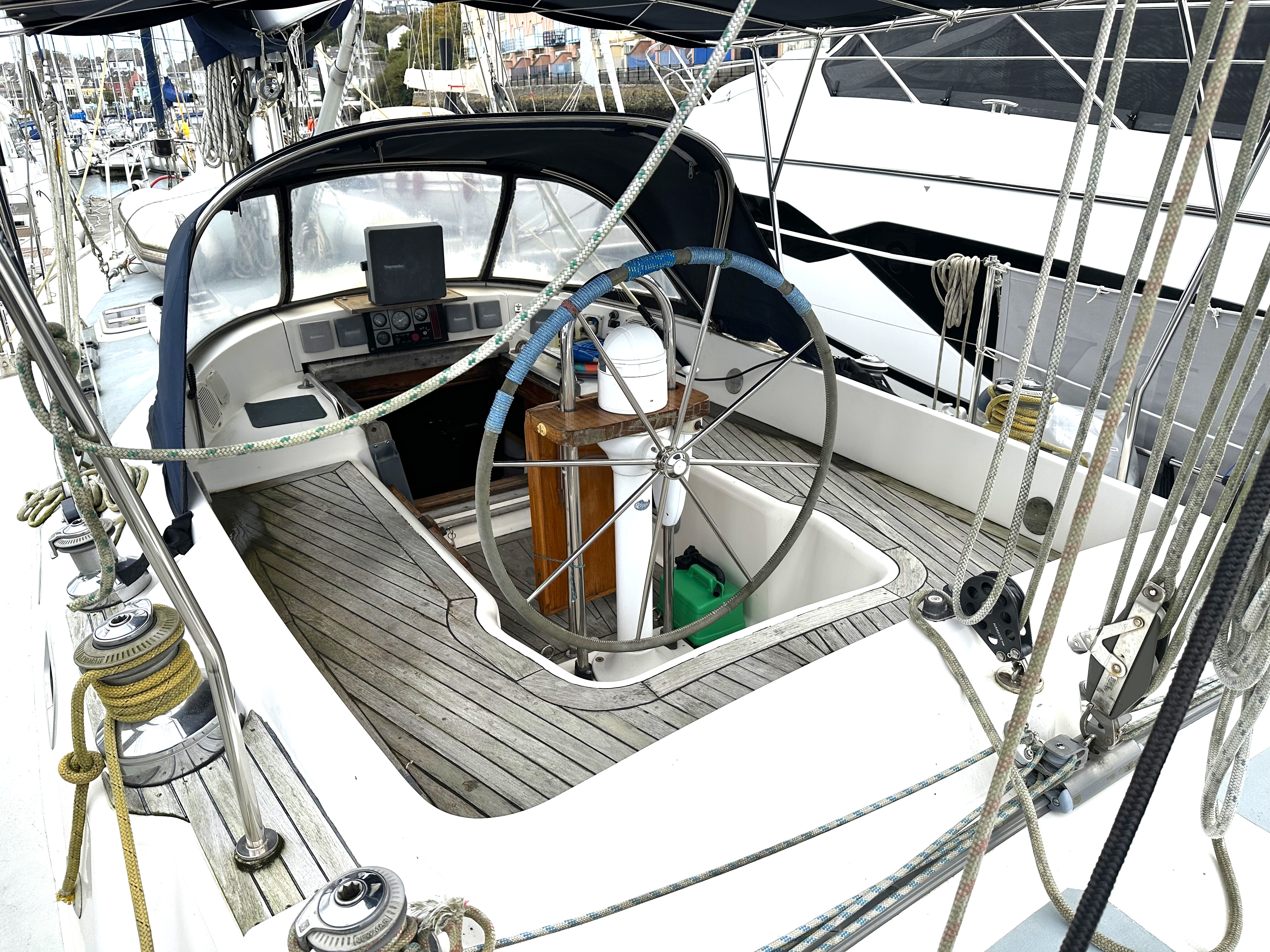 Teak-laid self-draining centre cockpit