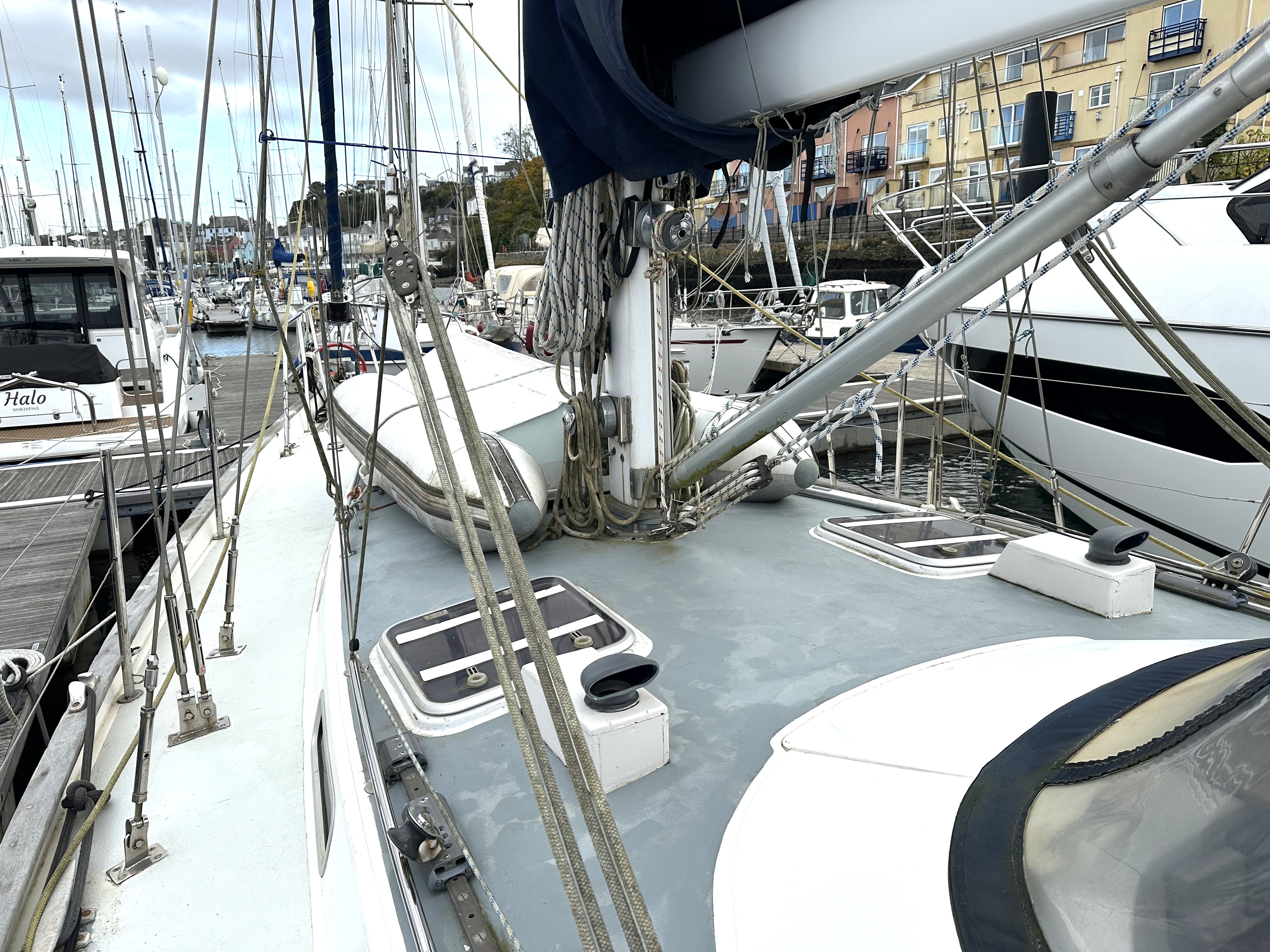 Deck fittings are purpose built in either 32mm s/s tube (stanchions/pushpit/pulpit) or aluminium (chafe-free fairleads)