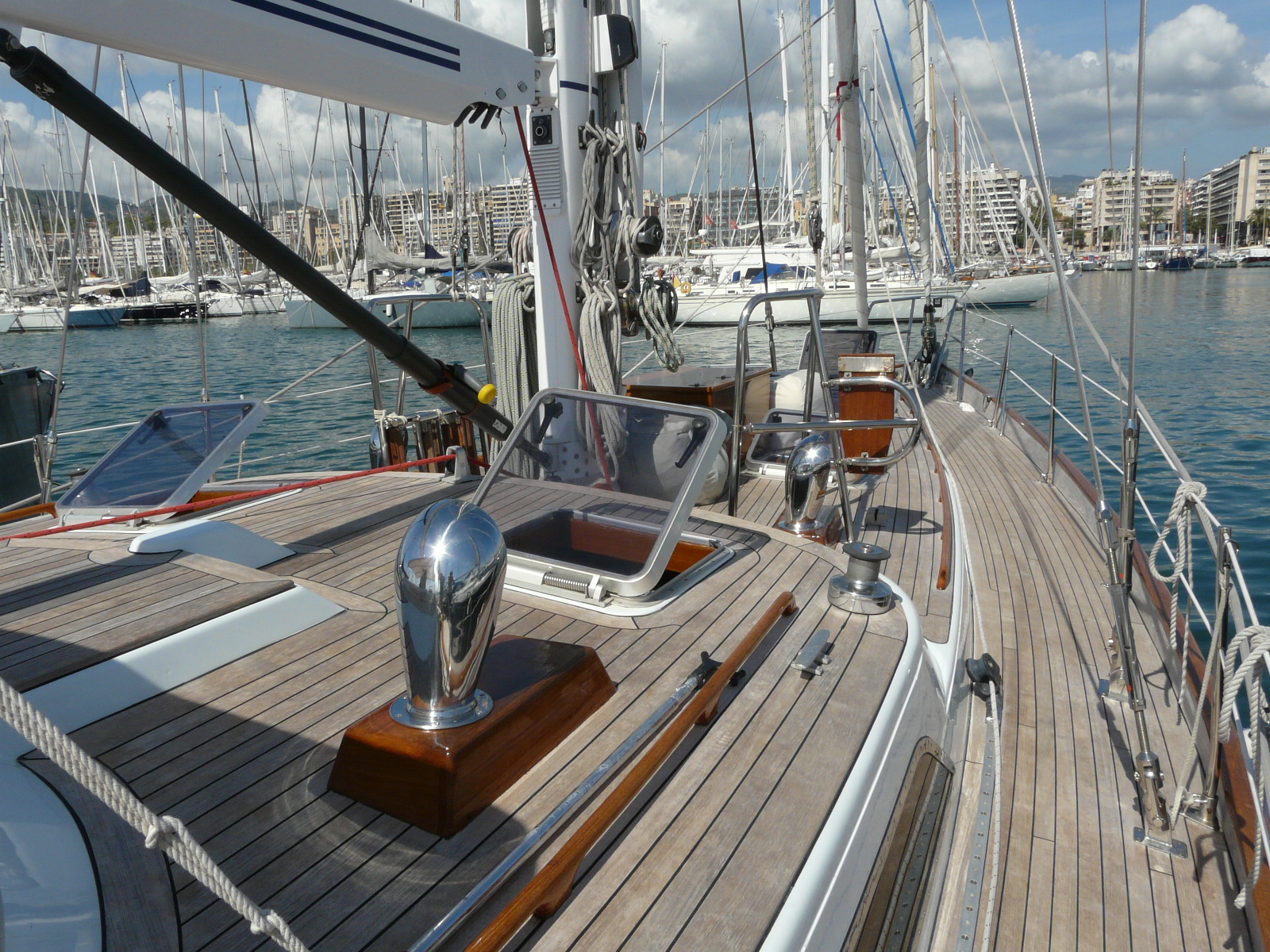 Designed to be sailed by just 2 to 3 crew, Palmares offers a blend of traditional styling and modern comfort. Her features include hydraulic furling headsails, a hydraulic mainsail, air conditioning, watermaker, and more, making long passages not only safe but very comfortable.