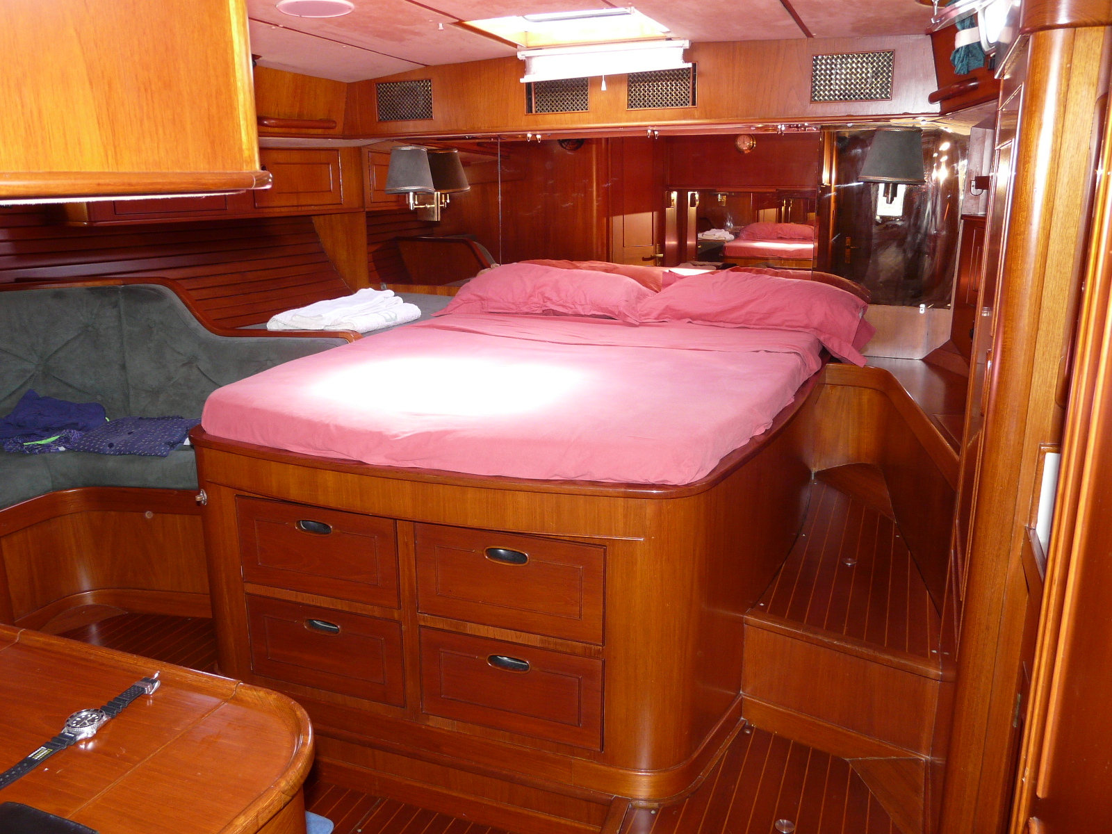 Owners cabin aft with centreline double bed and an additional pilot berth. Ensuite head facilities include a toilet, sink and separate shower.
