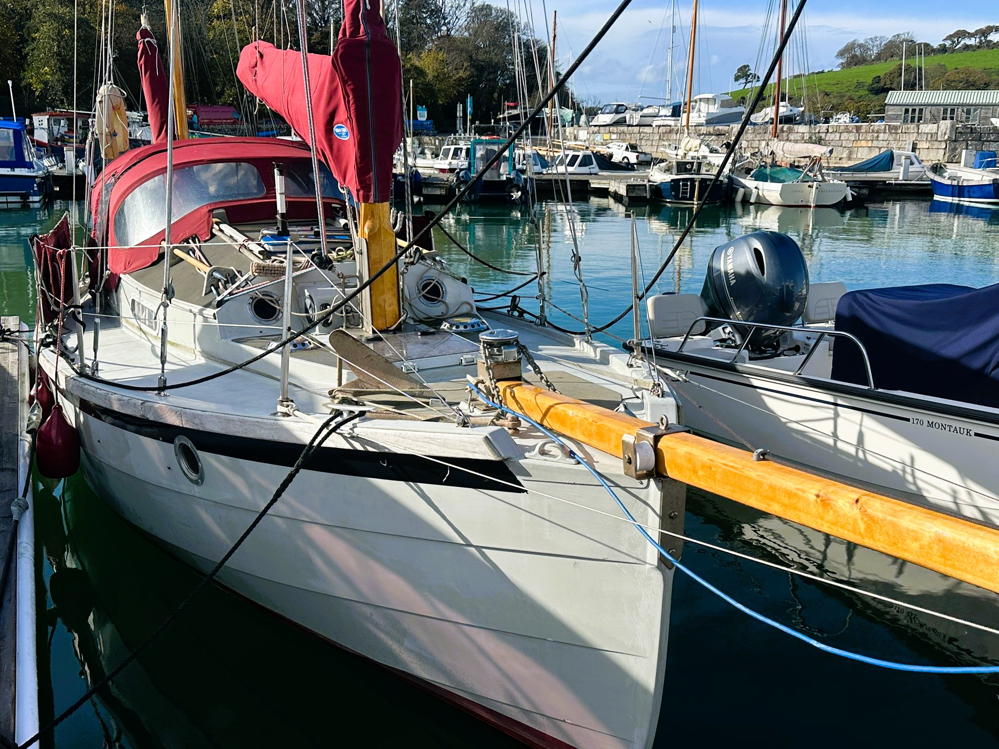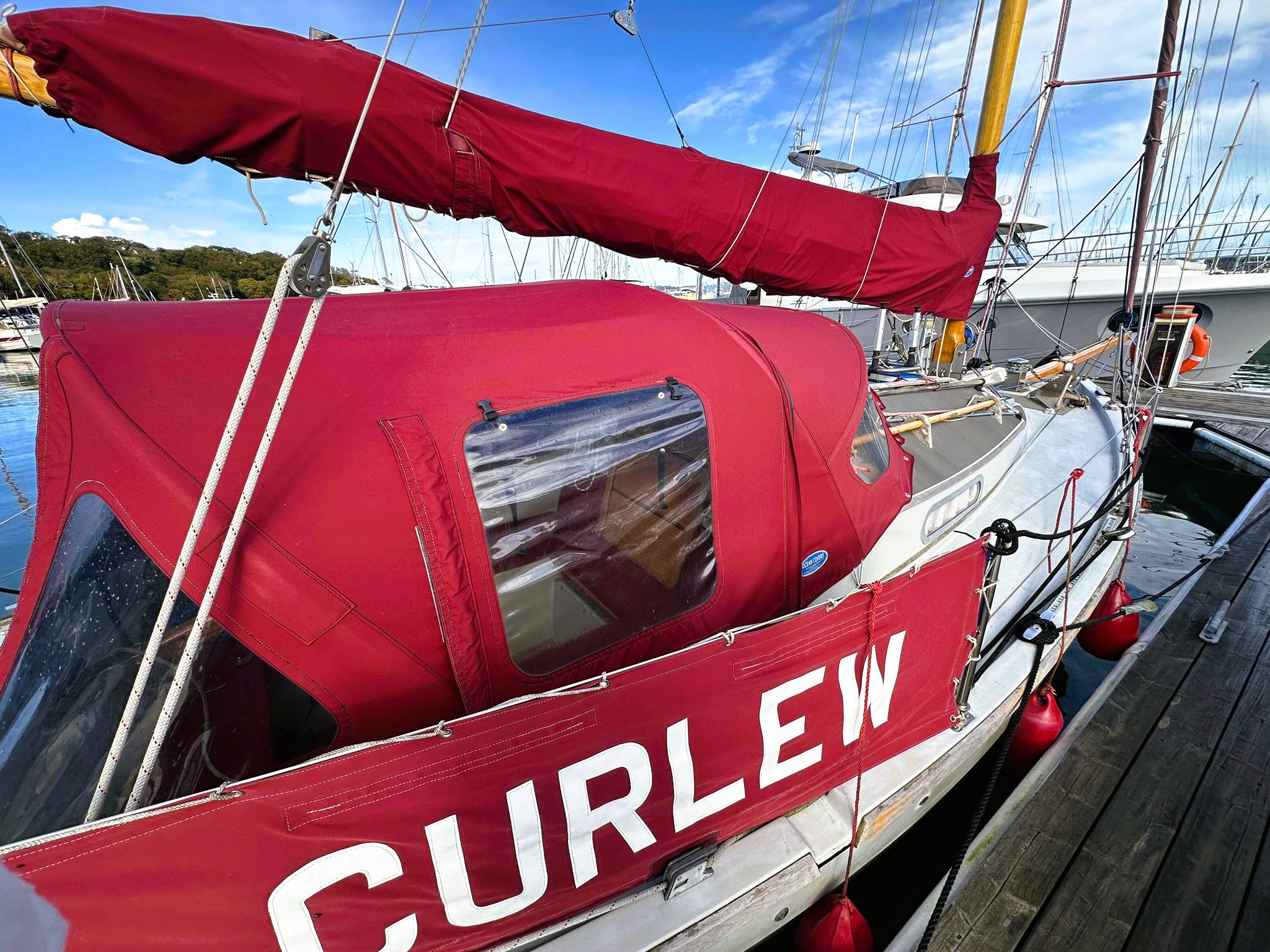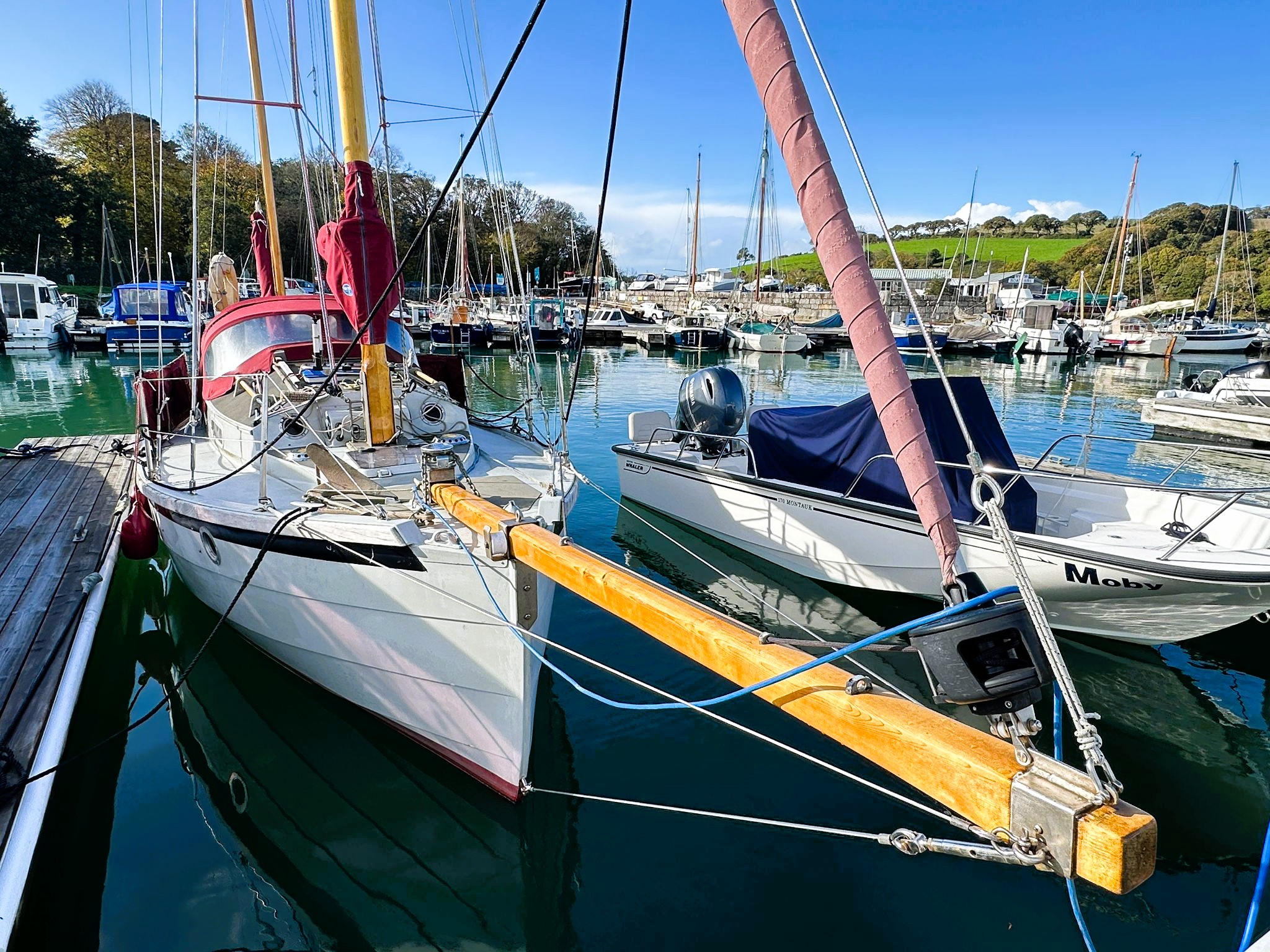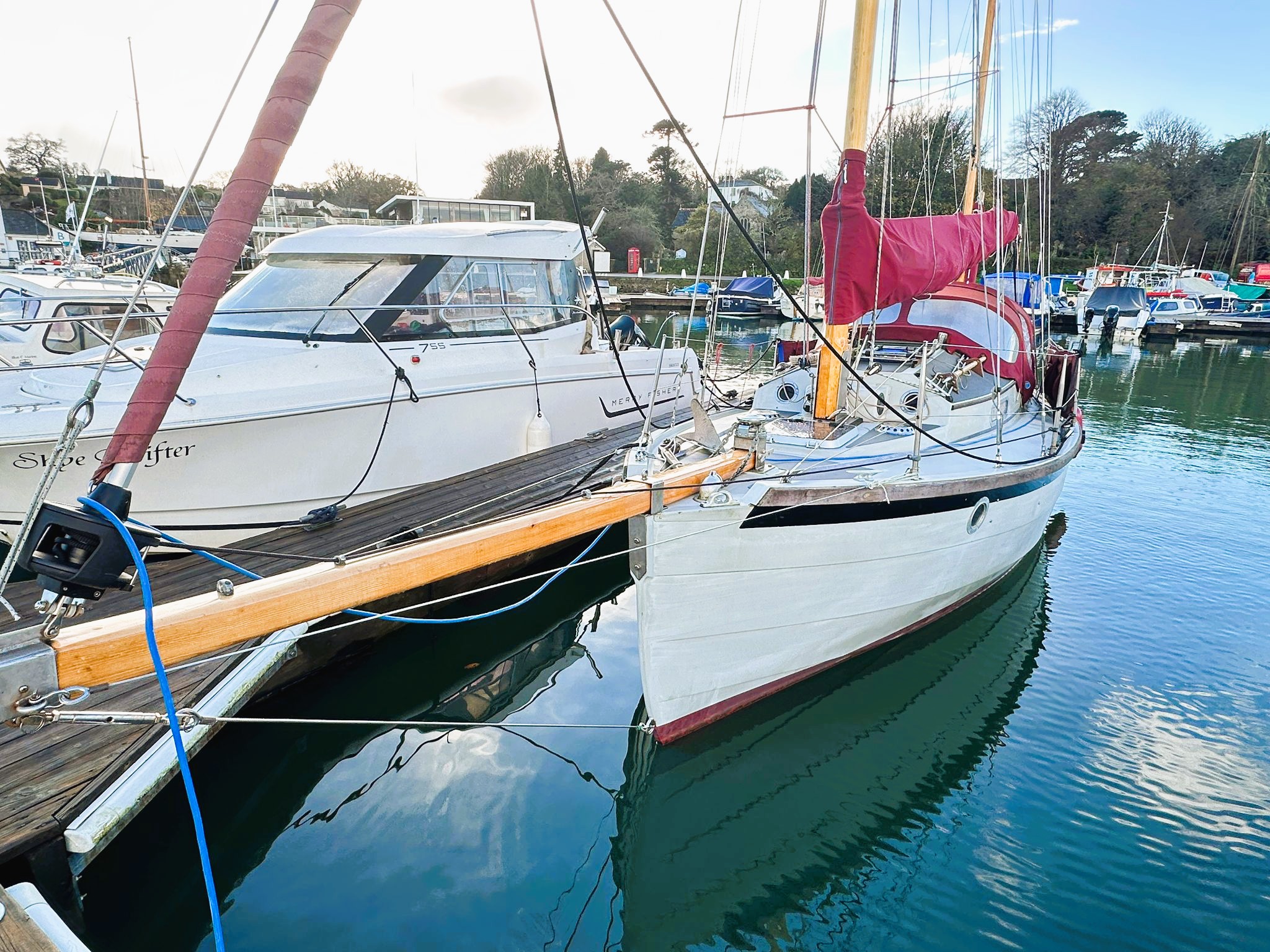 Located at Mylor Yacht Harbour, her sails and rigging were replaced in 2018 and 2020 and a New Yanmar 1GM diesel engine installed in 2017.
